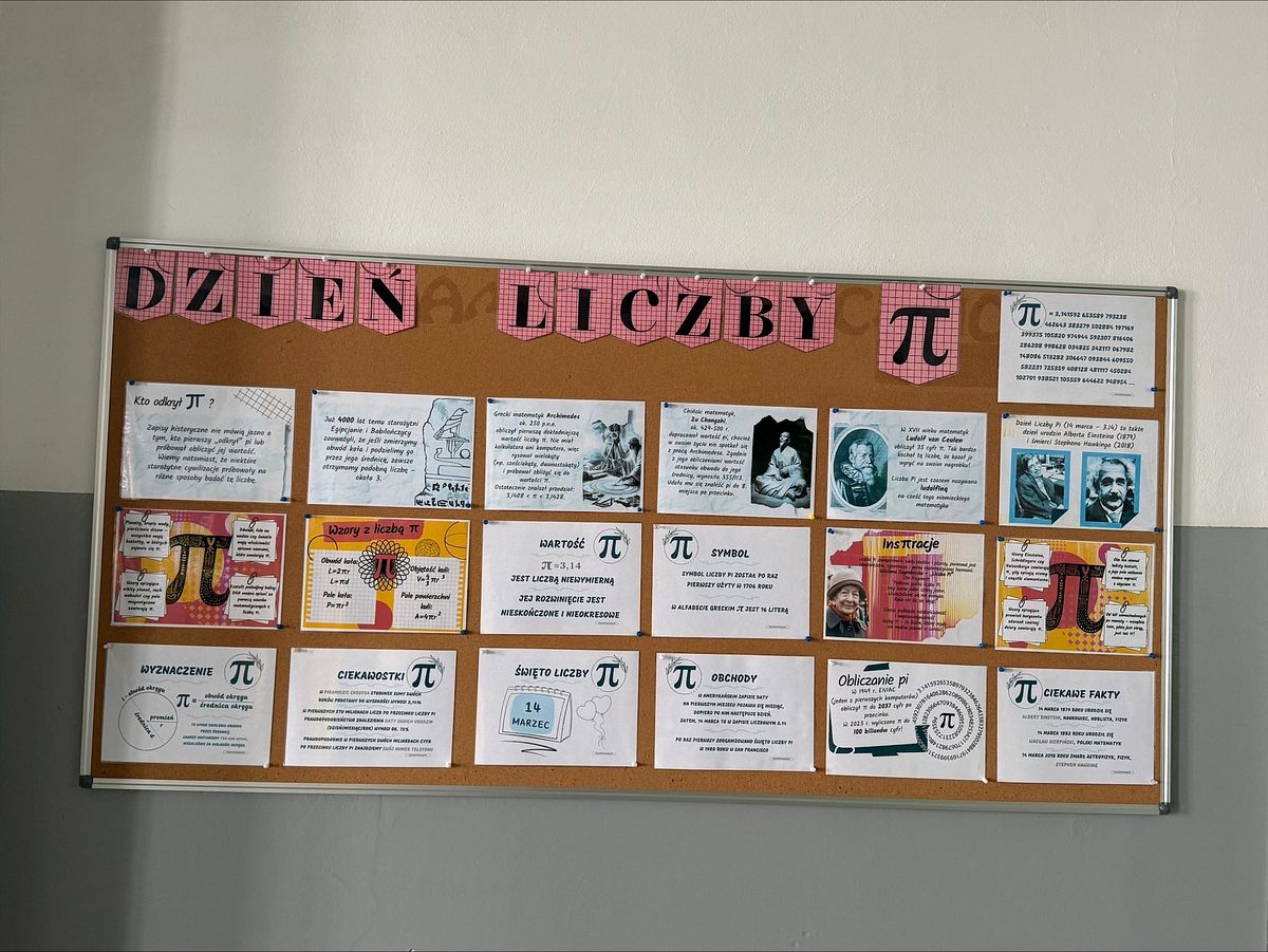 Przygotowaliśmy również gazetki ścienne, związane z odkryciem, opisaniem i wykorzystaniem liczby Pi w różnych dziedzinach nauki.
