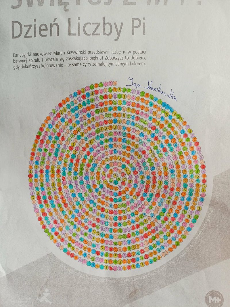W naszej szkole w piątek 13 marca nauczycielki matematyki zorganizowały i przeprowadziły, w klasach IV- VIII, lekcje matematyki z liczbą Pi w roli głównej. Uczniowie wykonywali zadania praktyczne wykorzystując swoją wiedzę matematyczną. Dzieci pracowały indywidualnie i grupowo, rozwiązywały grafy i krzyżówki, karty pracy i zagadki matematyczne. Święto liczby PI było okazją do przeprowadzenia lekcji matematyki w formie zabawowej, z wykorzystaniem wiedzy, twórczego myślenia i wyobraźni. Dzień był pracowity, ale najbardziej cieszą efekty naszej wspólnej pracy z uczniami.