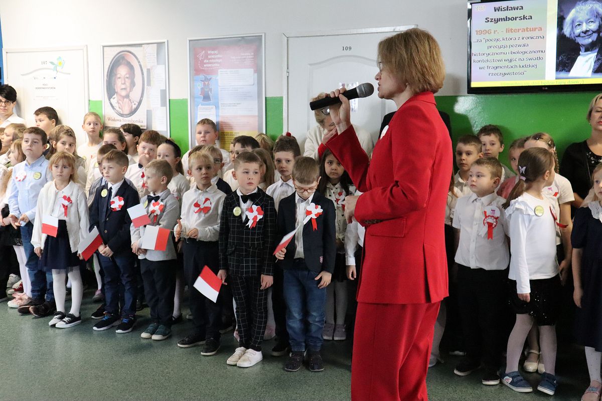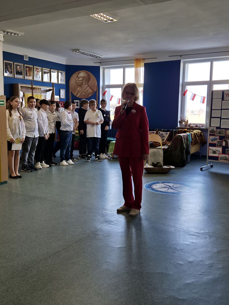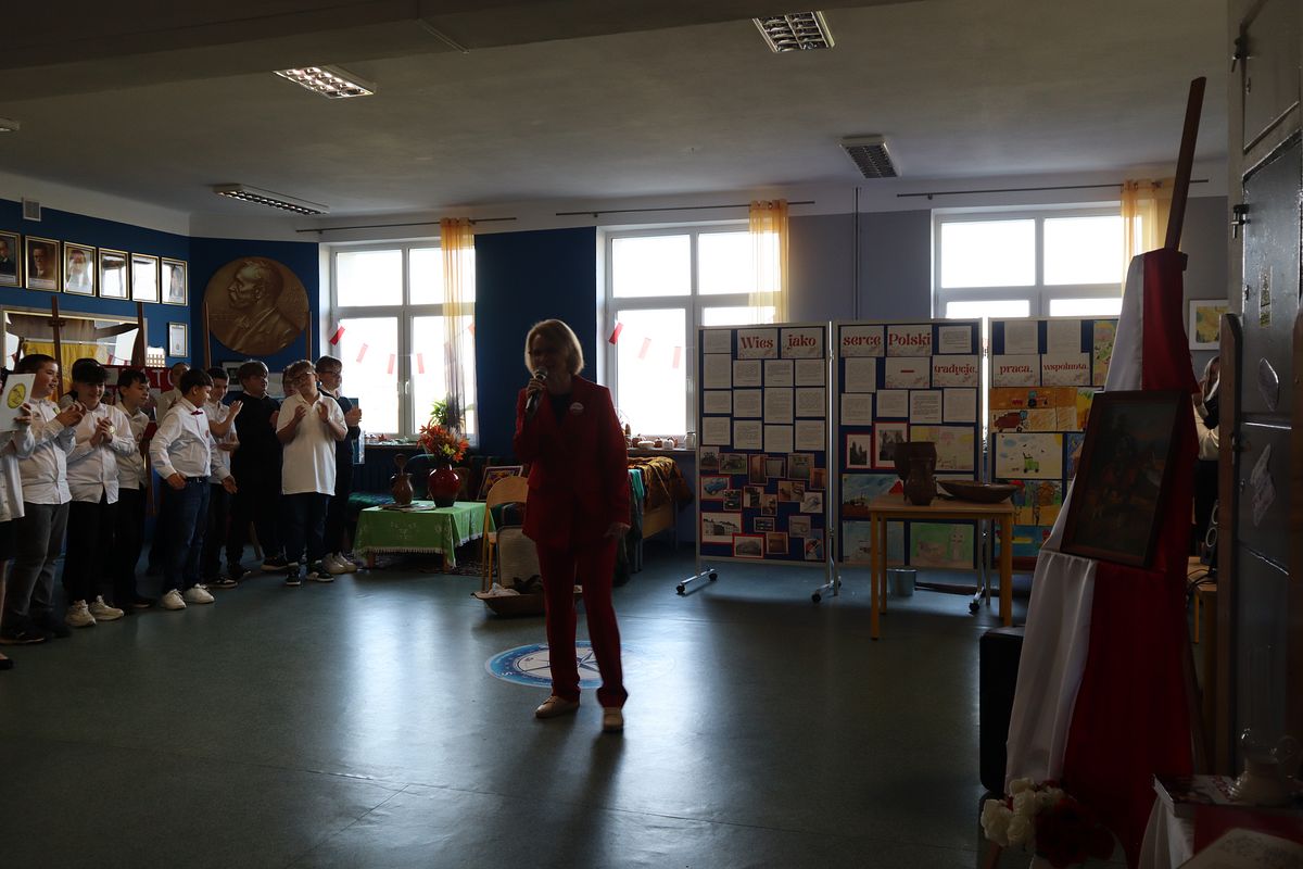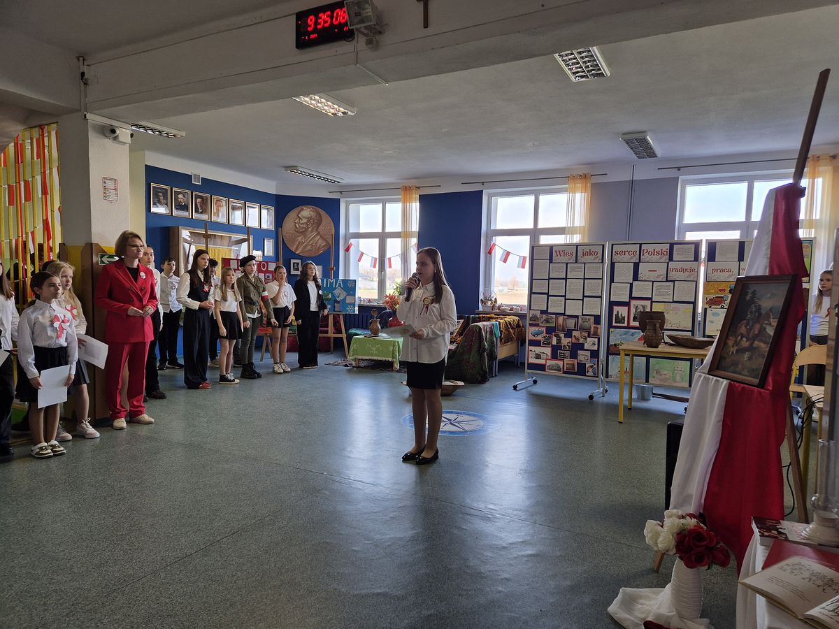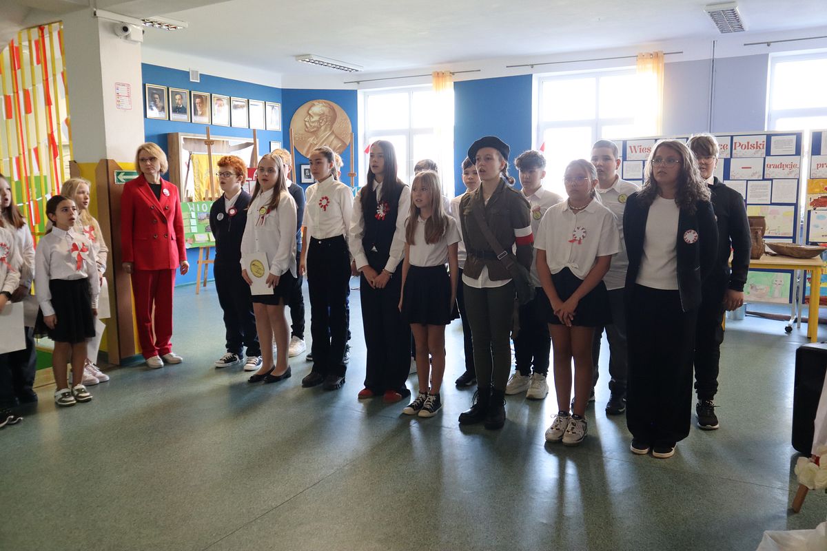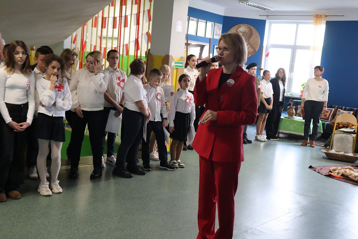 Dyrektor szkoły powitała wszystkich uczestników i zaprosiła do wspólnego odśpiewania hymnu państwowego w ramach akcji Szkoła do Hymnu. W swoim wystąpieniu podkreśliła znaczenie słowa Ojczyzna oraz rolę tradycji w budowaniu tożsamości narodowej.