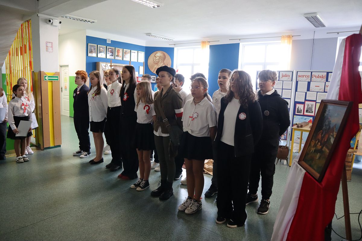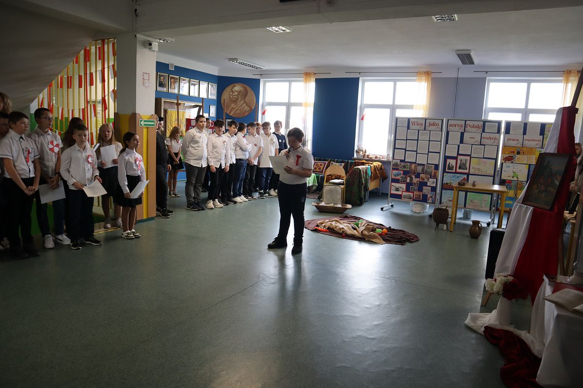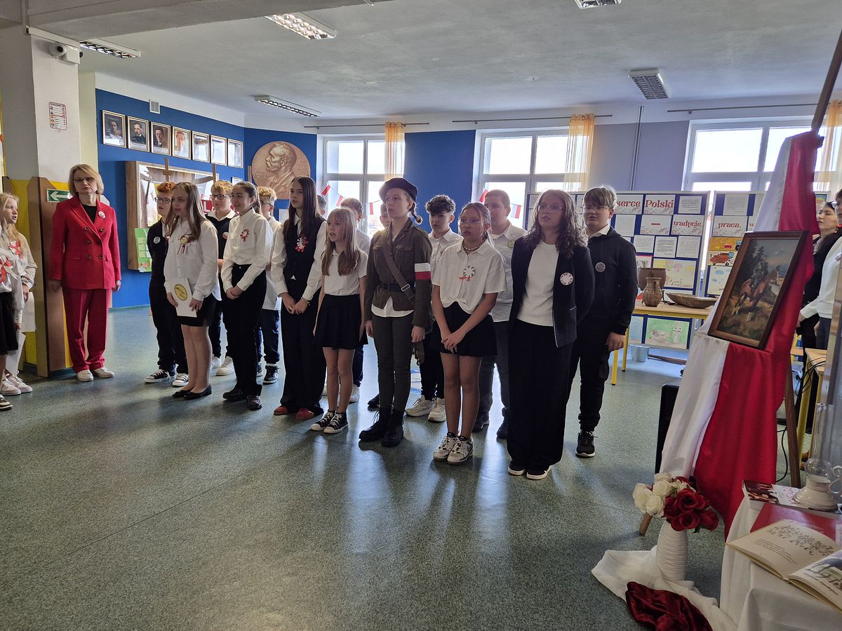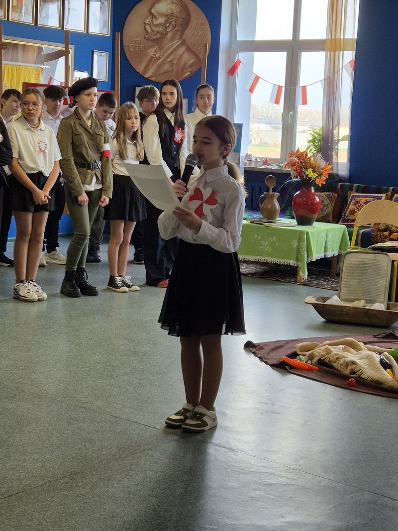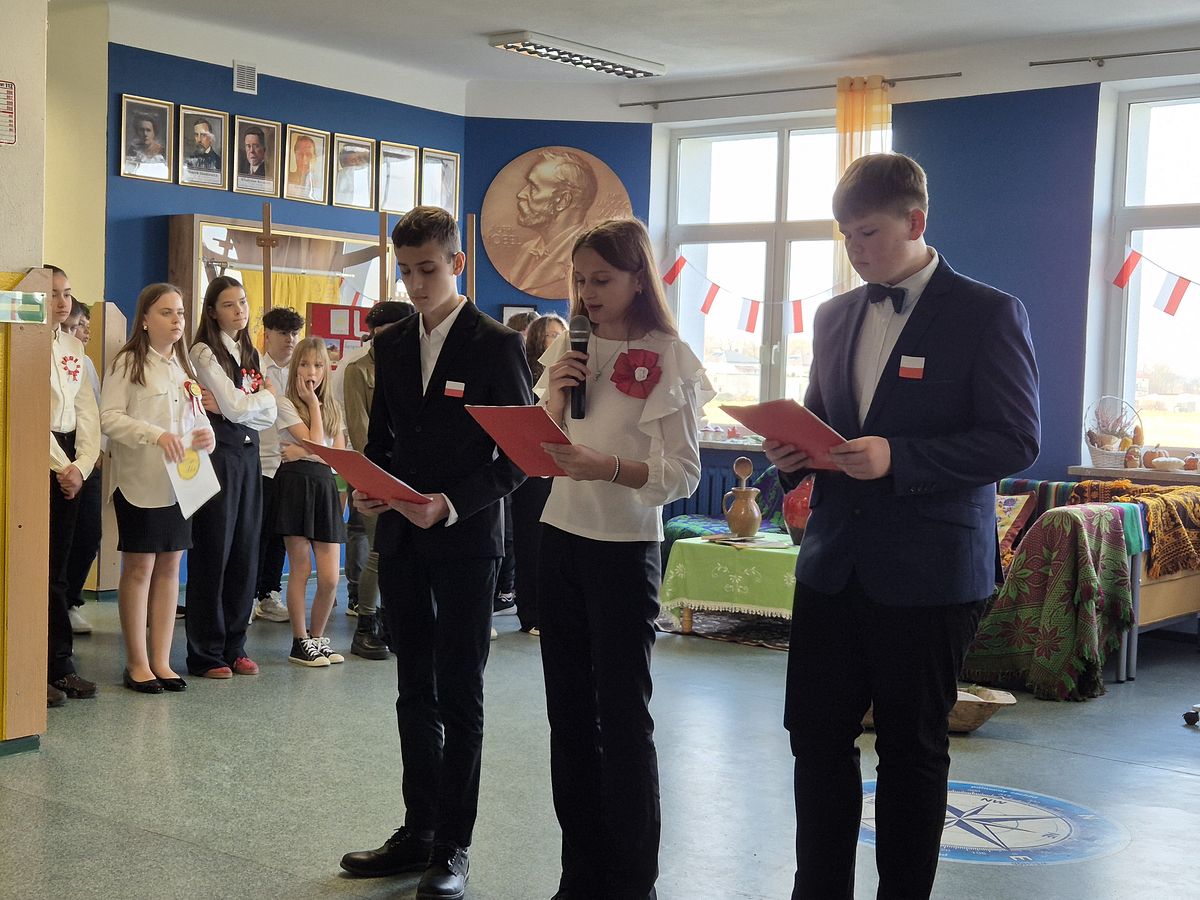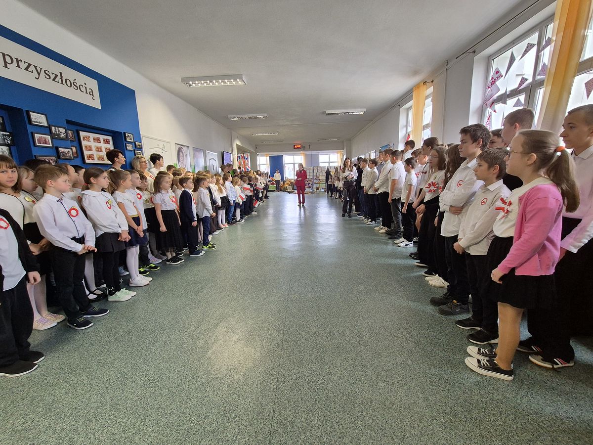 Dyrektor szkoły powitała wszystkich uczestników i zaprosiła do wspólnego odśpiewania hymnu państwowego w ramach akcji Szkoła do Hymnu. W swoim wystąpieniu podkreśliła znaczenie słowa Ojczyzna oraz rolę tradycji w budowaniu tożsamości narodowej.