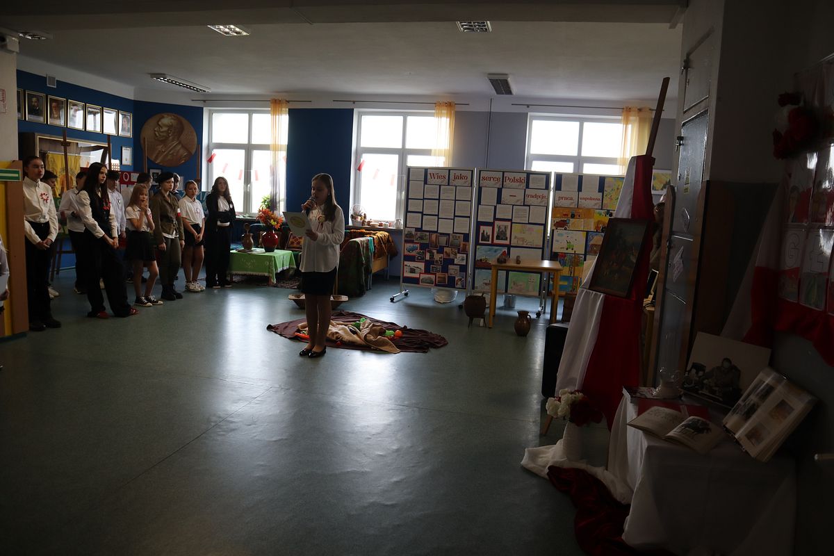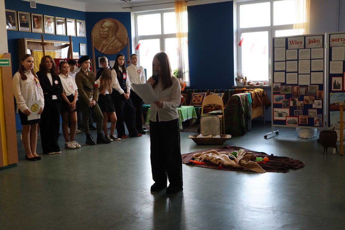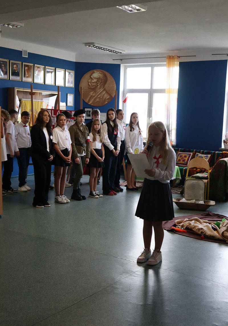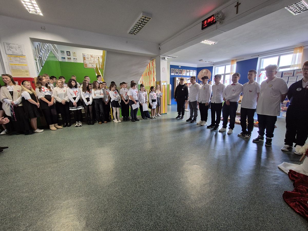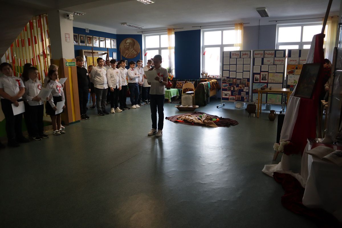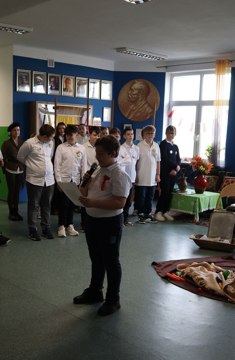 Dyrektor szkoły powitała wszystkich uczestników i zaprosiła do wspólnego odśpiewania hymnu państwowego w ramach akcji Szkoła do Hymnu. W swoim wystąpieniu podkreśliła znaczenie słowa Ojczyzna oraz rolę tradycji w budowaniu tożsamości narodowej.