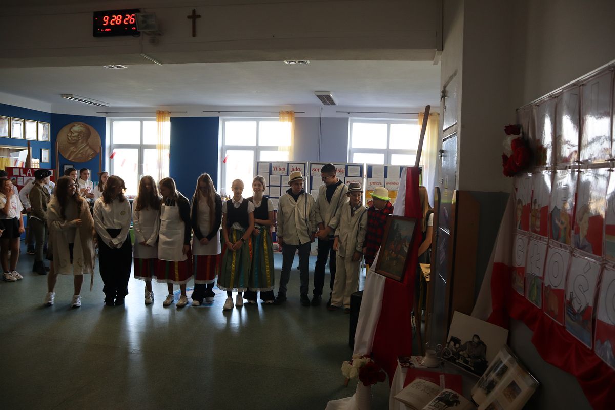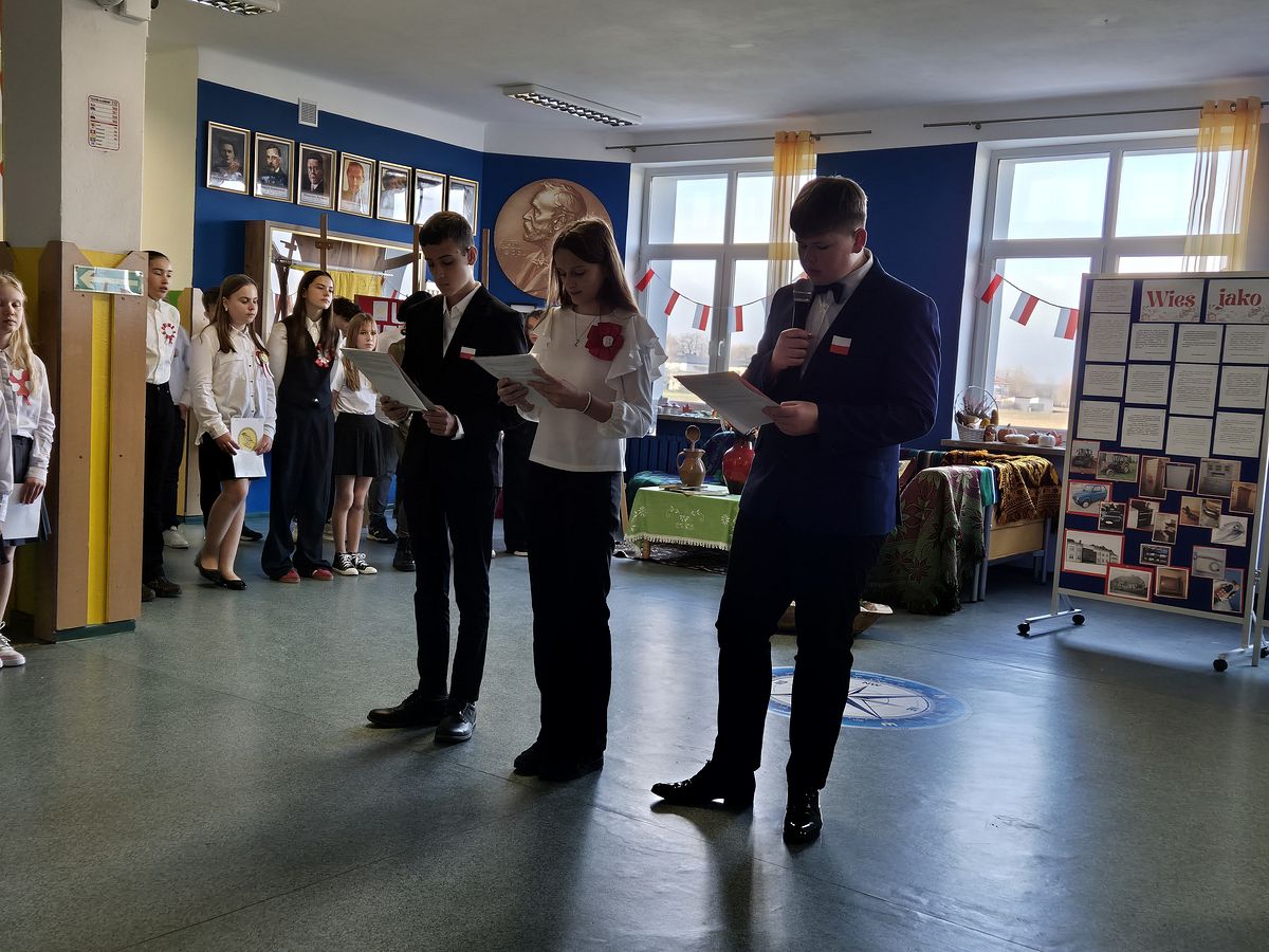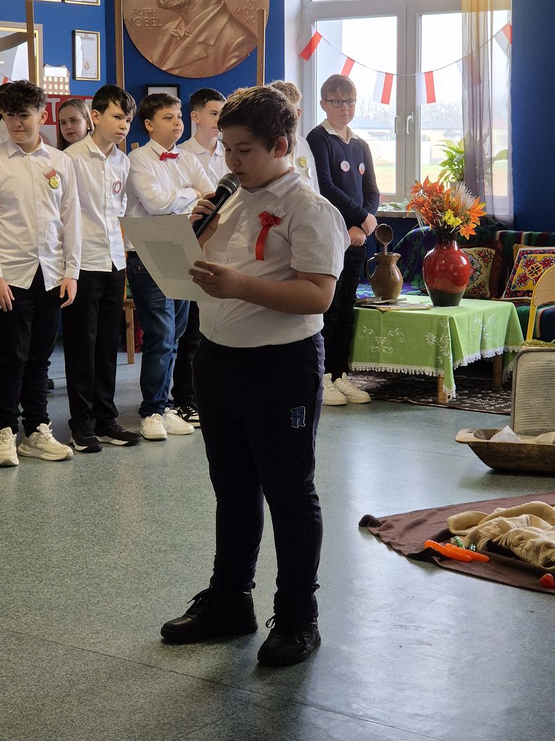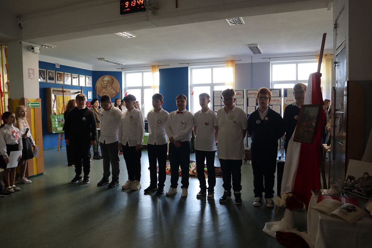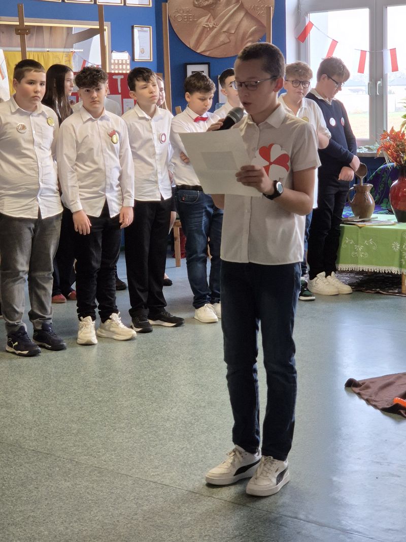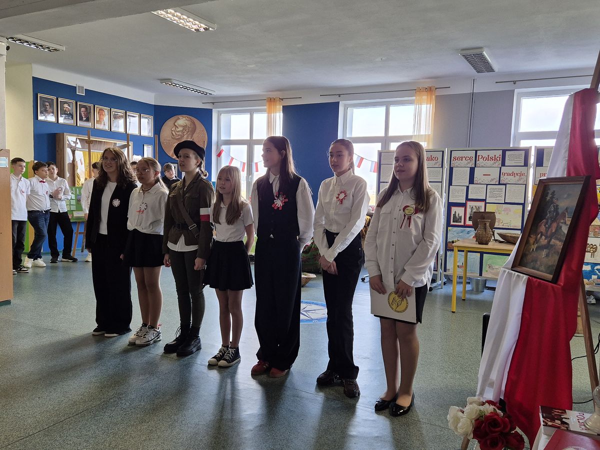 Dyrektor szkoły powitała wszystkich uczestników i zaprosiła do wspólnego odśpiewania hymnu państwowego w ramach akcji Szkoła do Hymnu. W swoim wystąpieniu podkreśliła znaczenie słowa Ojczyzna oraz rolę tradycji w budowaniu tożsamości narodowej.