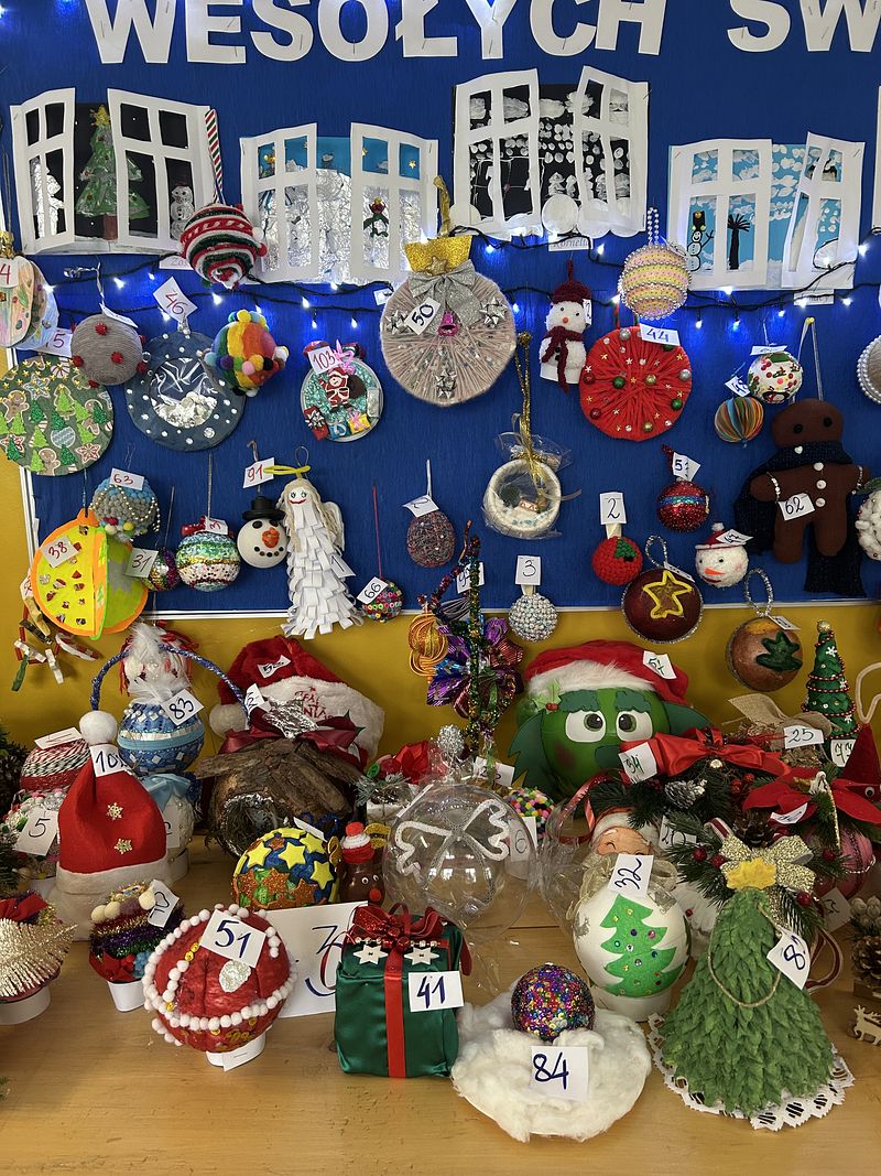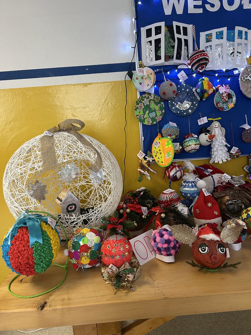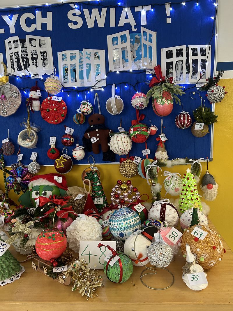 W konkursie wzięło udział 107 uczestników – dzieci z oddziałów przedszkolnych oraz uczniowie klas I–VIII. Prace zachwycały pomysłowością, starannością wykonania oraz bogactwem zastosowanych technik plastycznych. Wykonane bombki stworzyły wyjątkową świąteczną dekorację szkoły, wprowadzając wszystkich w radosny, bożonarodzeniowy nastrój.