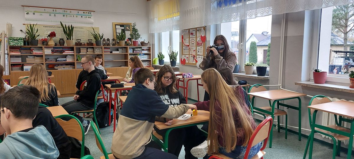 W ramach projektu CEO „Przeciwdziałanie fake newsom” uczennica klasy 7a Aleksandra Jankowska przeprowadziła wywiad z Panią Justyną Bućko, nauczycielką z naszej szkoły przy użuciu mikroportu z akcesoriami Saramonic Blink 500 Pro B2 zakupionego w ramach programu Labolatoria Przyszłości.