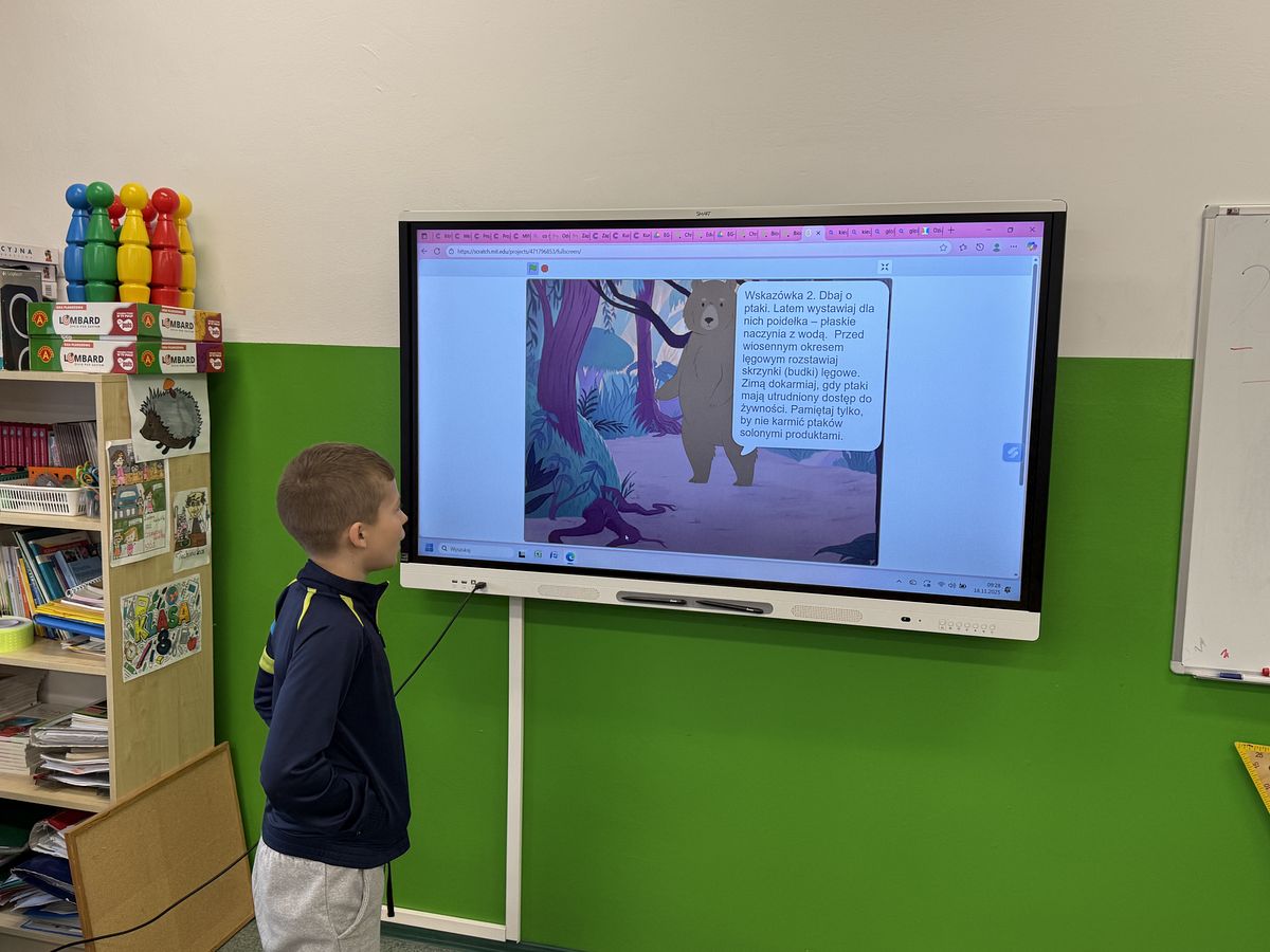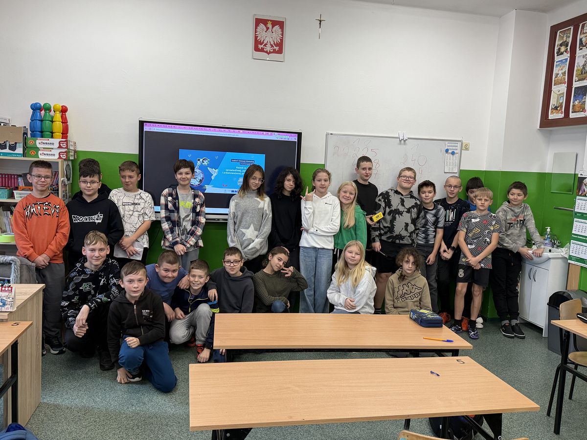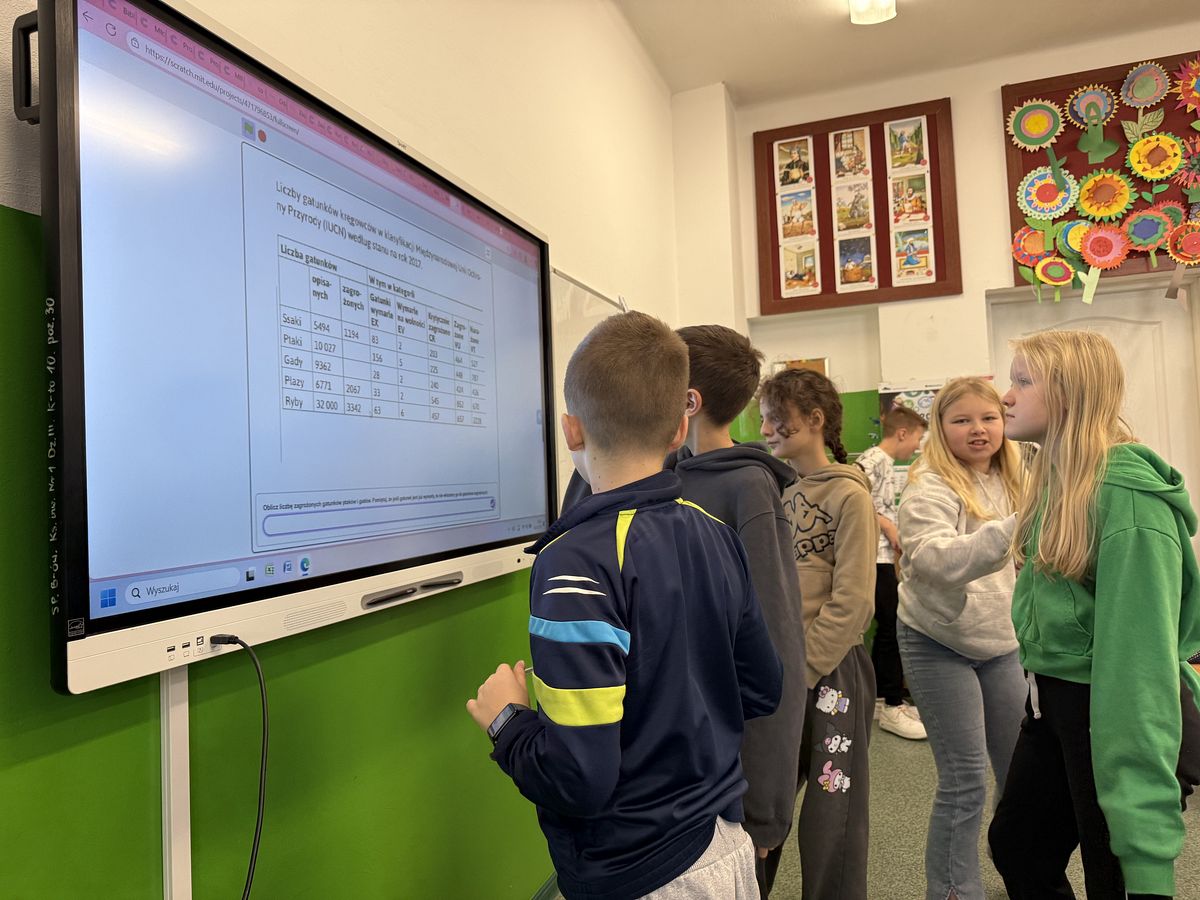 Następnie, pracując w grupach, uczestniczyli w grze edukacyjnej stworzonej w Scratchu. Rozwiązując zadania z dodawania, odejmowania i mnożenia pisemnego, odkrywali wskazówki dotyczące ochrony różnorodności biologicznej.