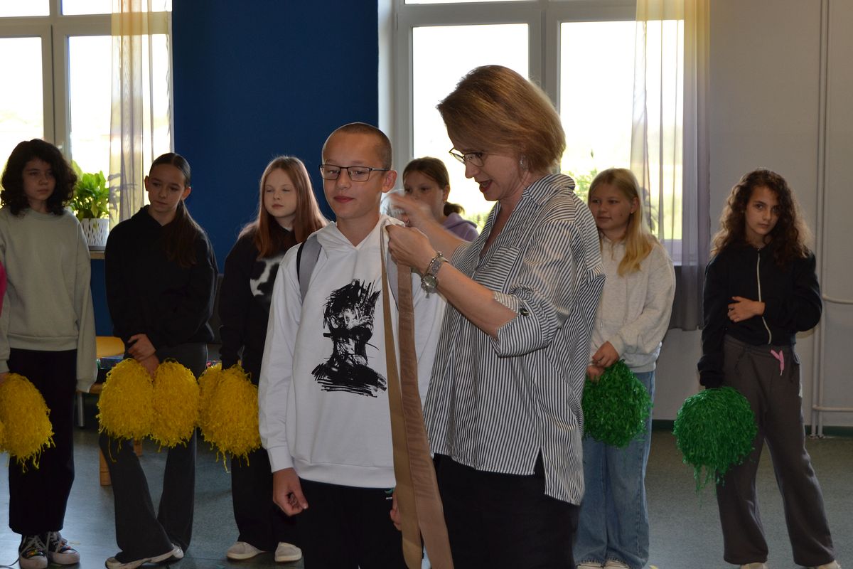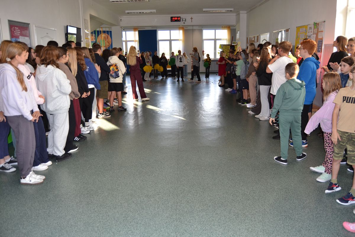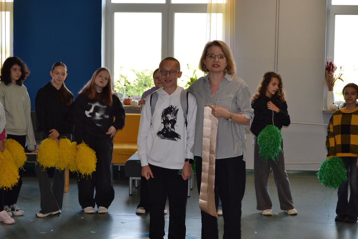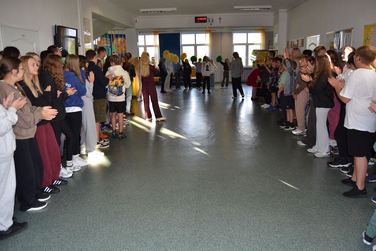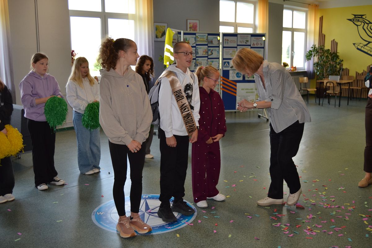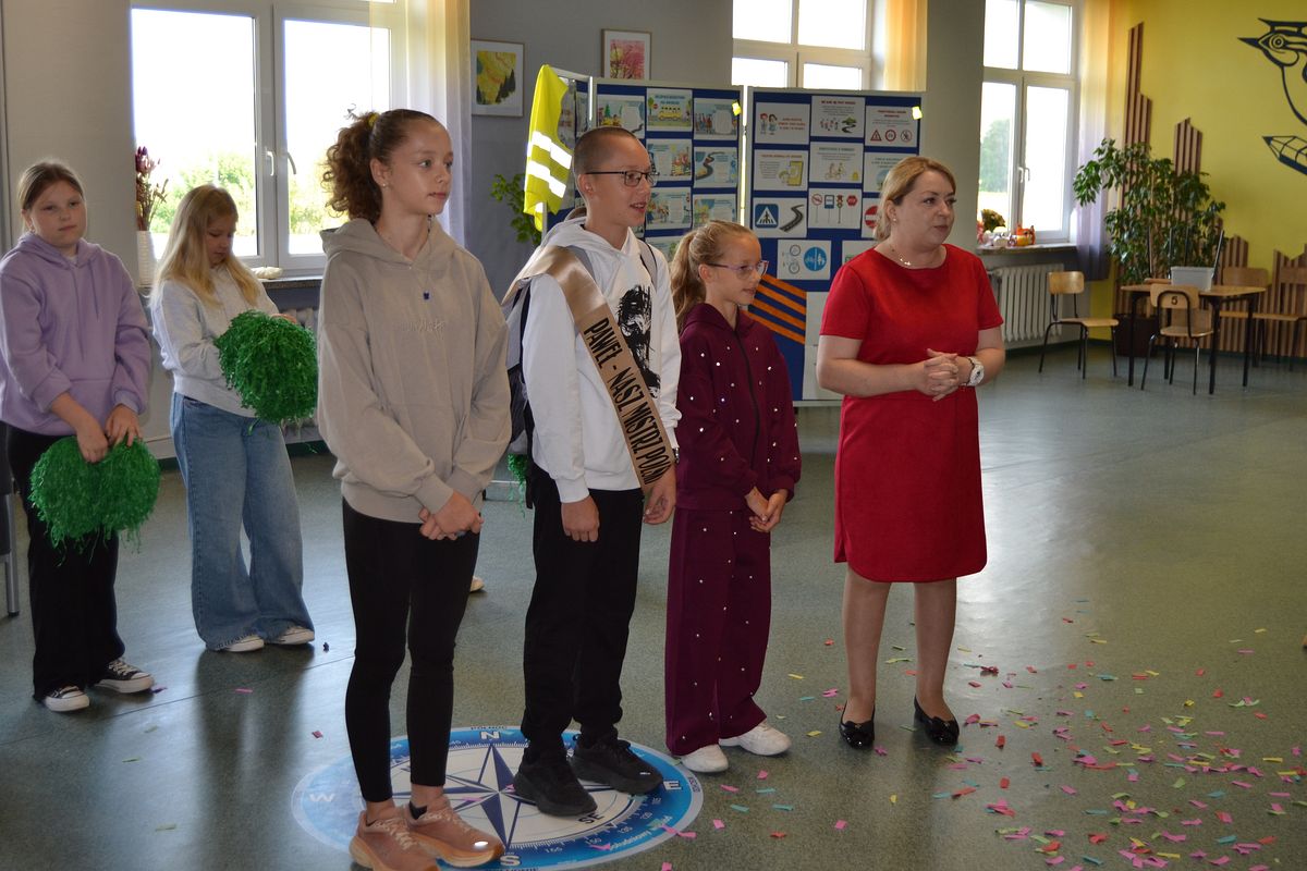 Kilka dni po niezwykłym triumfie sportowym Pawła, w piątkowy poranek wszyscy uczniowie i nauczyciele zebrali się w głównym holu szkolnym, by powitać gromkimi brawami i wiwatowaniem mistrza Polski. Pani dyrektor pogratulowała Pawłowi złotego medalu i podkreśliła, że jest on wynikiem talentu, pracy i determinacji w dążeniu do celu. Złota szarfa , która ozdobiła ramię naszego ucznia dumnie obwieszczała, że jest on NASZYM MISTRZEM POLSKI. Wzruszenie i radość towarzyszyły wszystkim dzieciom i dorosłym oklaskującym złotego medalistę olimpiady lekkoatletycznej.