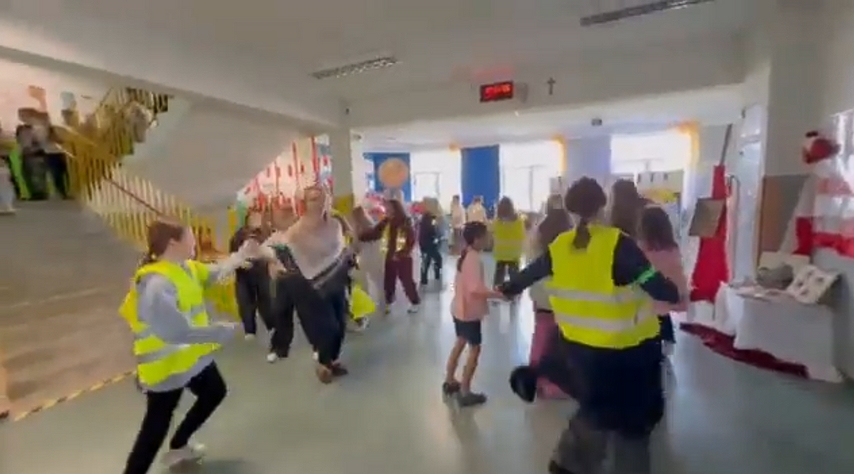 W ramach Ogólnopolskiego Konkursu „Odblaskowa szkoła”2025 nasza szkoła podejmowała różne działania, by promować noszenie kamizelek i opasek odblaskowych. Jedną z zaproponowanych aktywności było zatańczenie popularnego wśród młodzieży tańca. Na jednej z przerw chętni uczniowie wraz z panią Dyrektor zatańczyli belgijkę. Okazało się, że odblaski znakomicie sprawdziły się podczas takiej aktywności i przyciągały wzrok. Kolejny raz pokazaliśmy, że noszenie elementów odblaskowych realnie wpływa na widoczność i bezpieczeństwo noszących je osób.