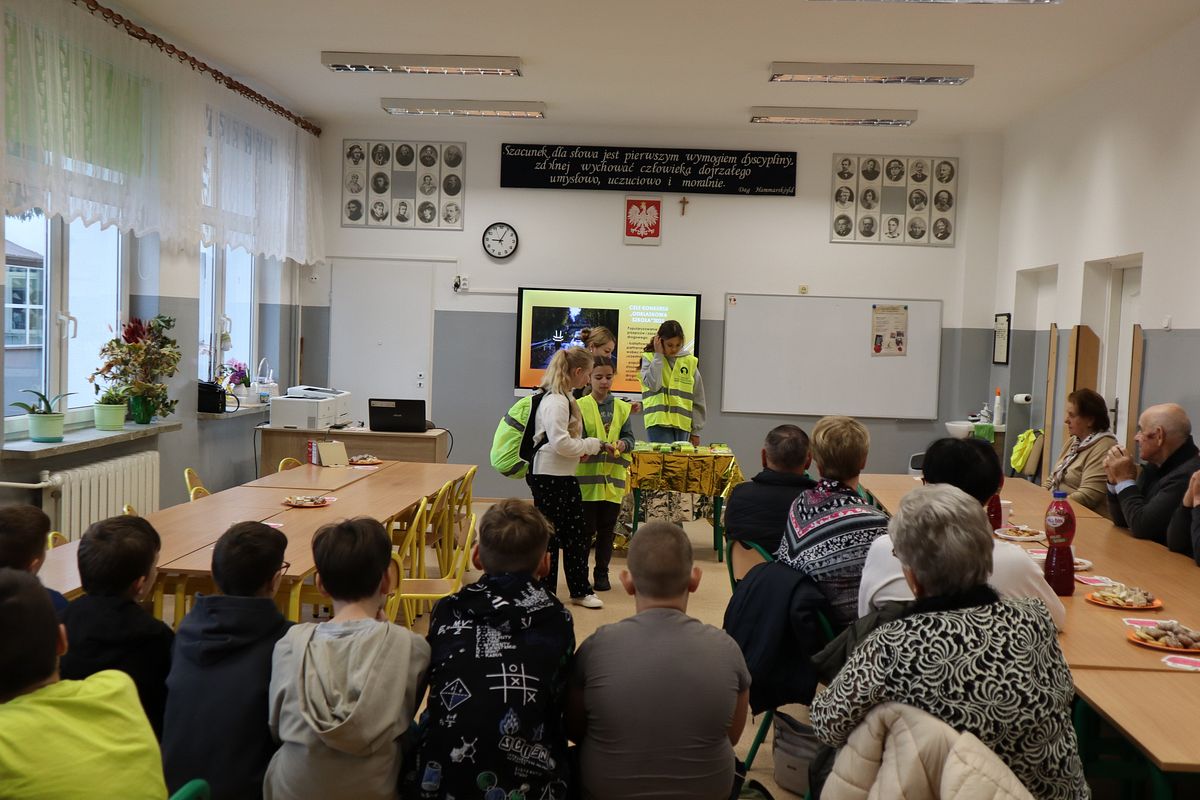 W ramach Ogólnopolskiego Konkursu „Odblaskowa szkoła” 2025 uczniowie klasy V podzielili się wiedzą o bezpieczeństwie ze swoimi babciami i dziadkami.