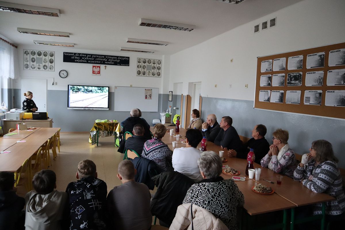 Zaproszonym seniorom zostały przekazane odblaskowe naklejki. Podczas spotkania dyskutowano o bezpieczeństwie i odpowiedzialności jaka spoczywa na każdym uczestniku ruchu drogowego.