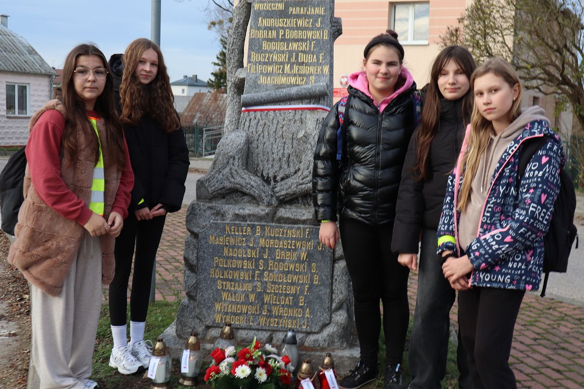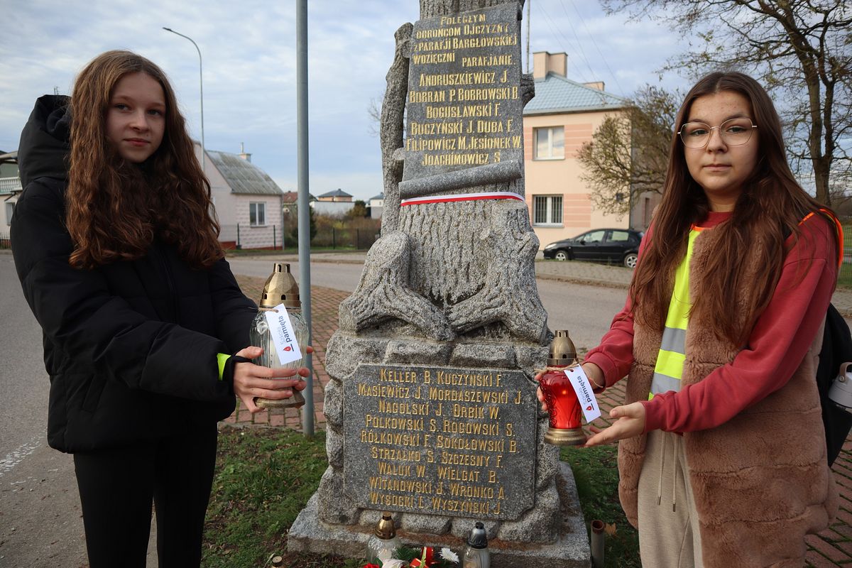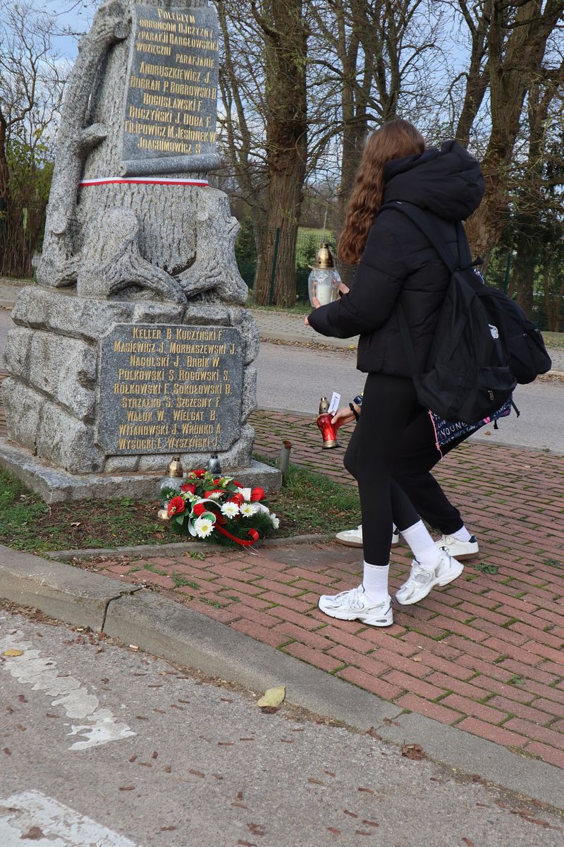 Wolontariusze z Szkolnego Koła Caritas podczas warsztatów artystycznych wykonali wiązankę kwiatów, która została złożona przy pomniku ku czci bargłowian poległych w walkach wyzwoleńczych w latach 1918- 1920. Uczennice klasy VIIa, w imieniu całej społeczności szkolnej i Samorządu Uczniowskiego, zapaliły również znicze, które symbolizowały pamięć o męstwie i patriotyzmie bargłowian.