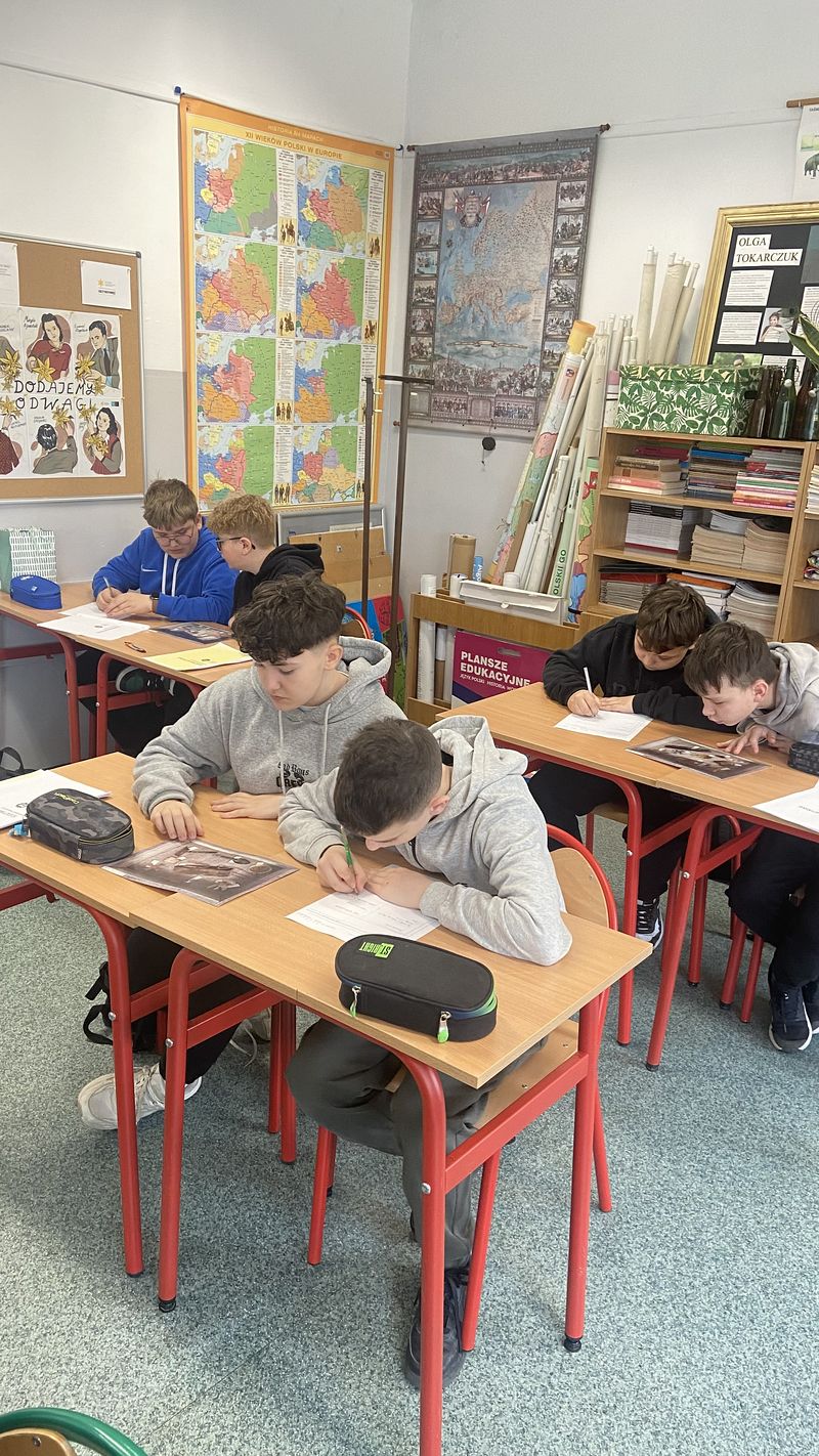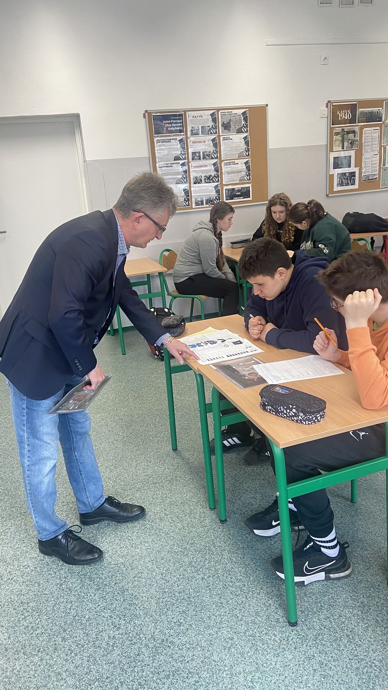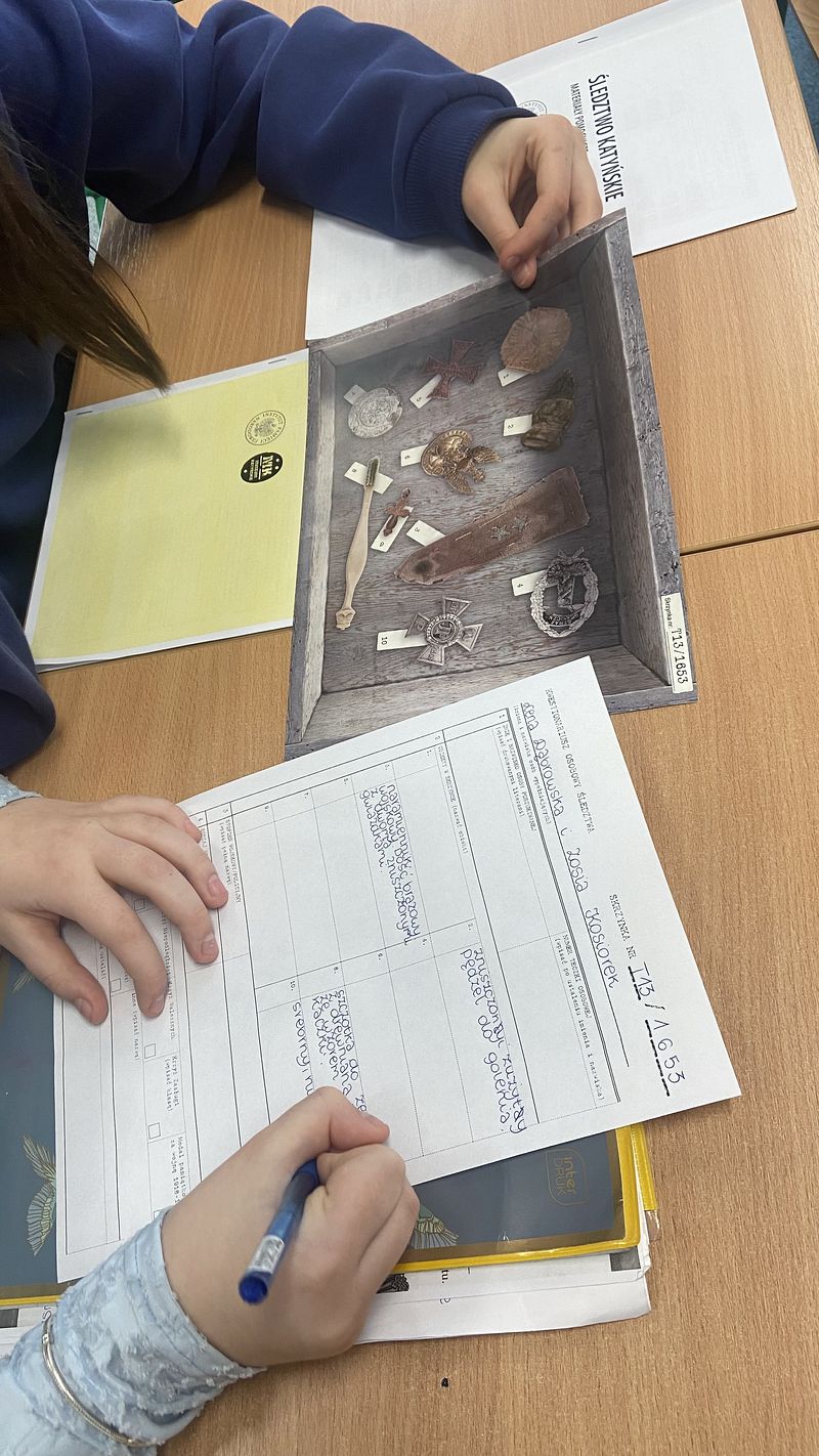15 kwietnia 2026 r. odbyły się w naszej szkole warsztaty edukacyjne dla uczniów klas VI - VIII pt. „Śledztwo Katyńskie”. Zajęcia w angażujący sposób przybliżyły uczniom temat zbrodni katyńskiej oraz pracy historyków i badaczy, którzy rekonstruują wydarzenia z przeszłości. Warsztat miał formę śledztwa, uczniowie pracowali z materiałami źródłowymi, analizowali dokumenty oraz wspólnie próbowali ustalić przebieg wydarzeń. Dzięki temu poznali nie tylko fakty historyczne, ale także metody pracy badawczej.