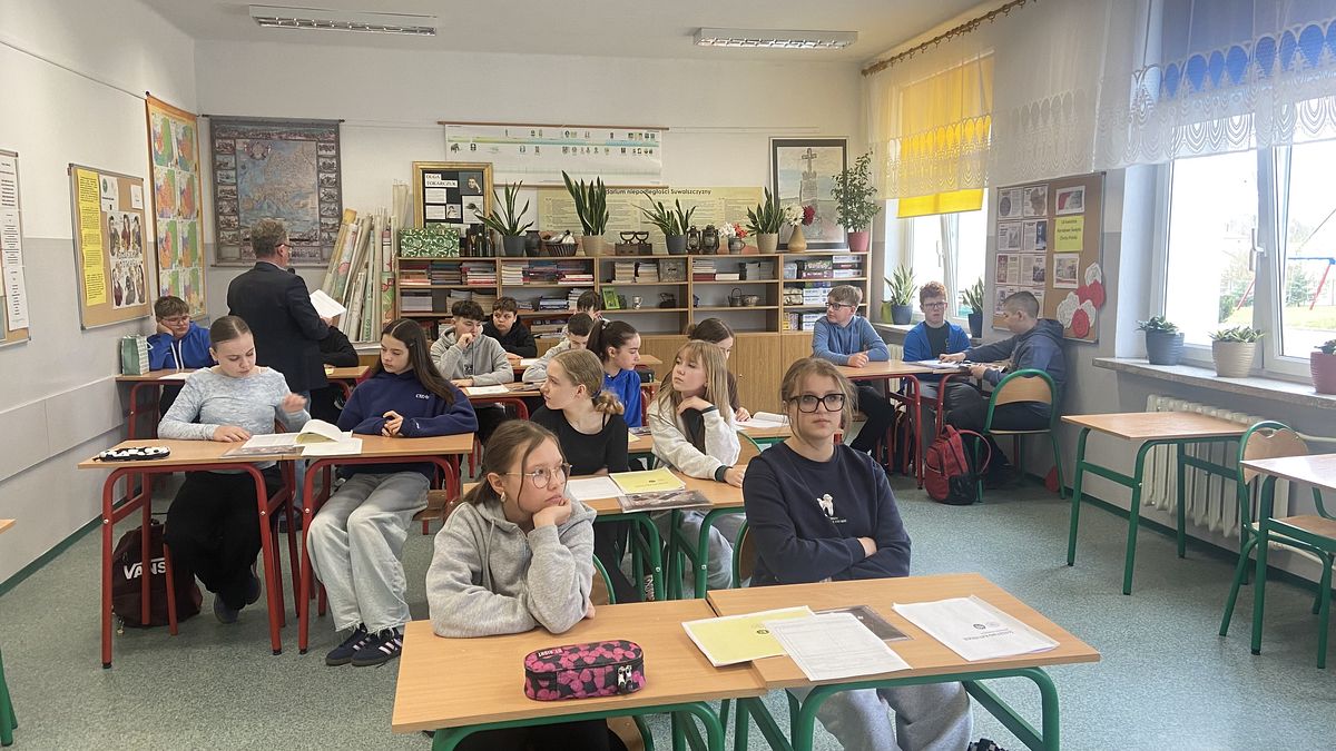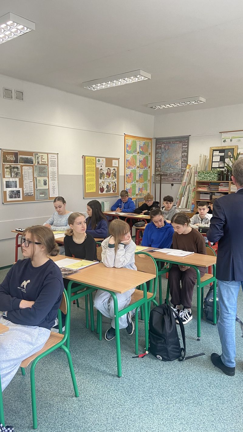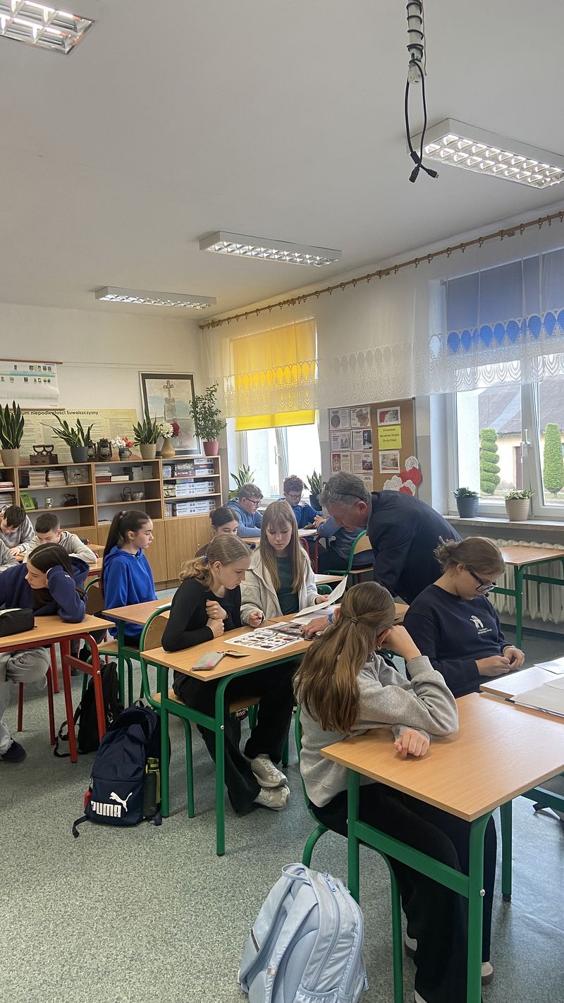 15 kwietnia 2026 r. odbyły się w naszej szkole warsztaty edukacyjne dla uczniów klas VI - VIII pt. „Śledztwo Katyńskie”. Zajęcia w angażujący sposób przybliżyły uczniom temat zbrodni katyńskiej oraz pracy historyków i badaczy, którzy rekonstruują wydarzenia z przeszłości. Warsztat miał formę śledztwa, uczniowie pracowali z materiałami źródłowymi, analizowali dokumenty oraz wspólnie próbowali ustalić przebieg wydarzeń. Dzięki temu poznali nie tylko fakty historyczne, ale także metody pracy badawczej.