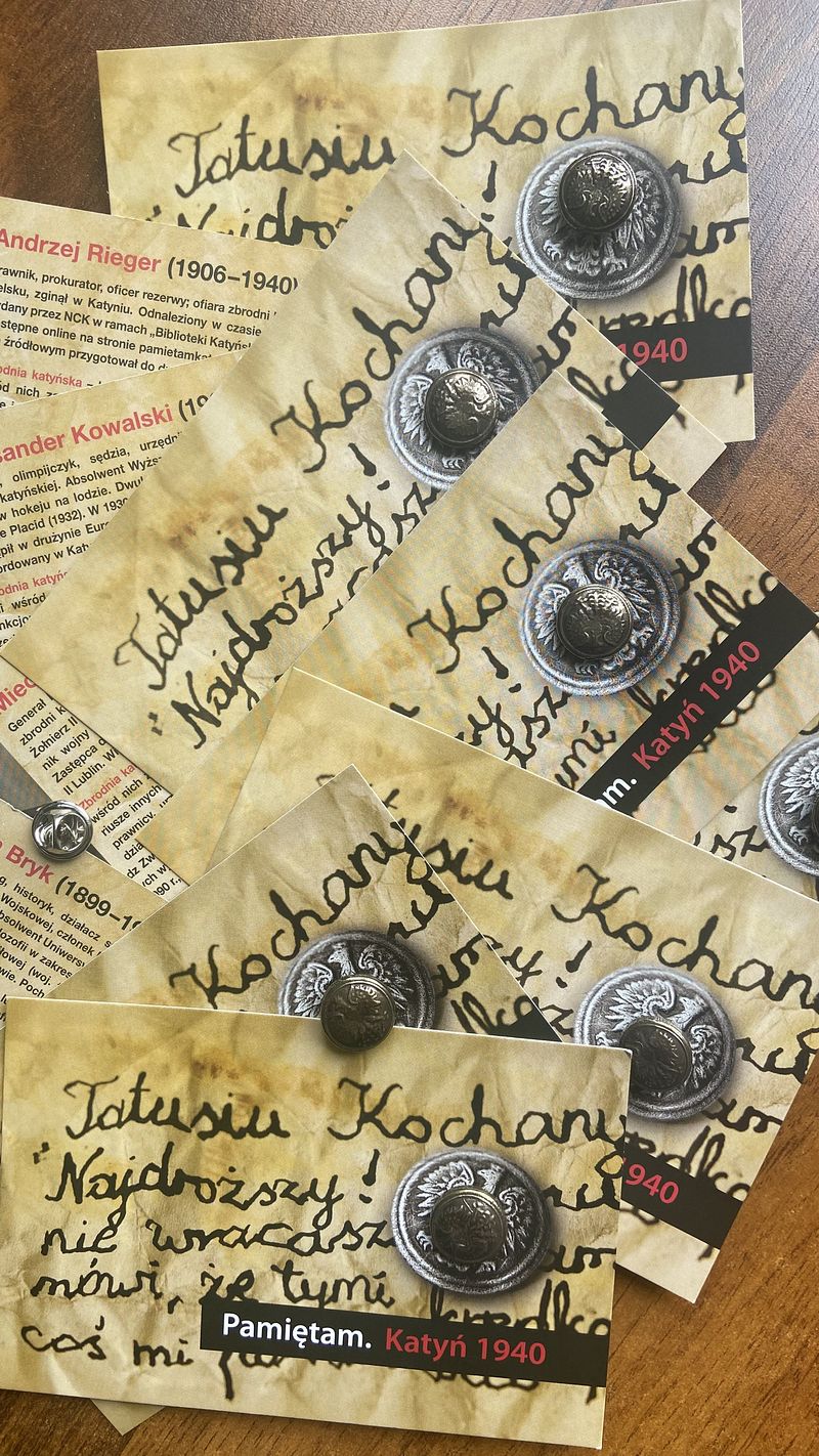 Warsztaty poprowadzili edukatorzy z Oddziału Instytutu Pileckiego w Augustowie w ramach społeczno-edukacyjnej kampanii „Pamiętam. Katyń 1940”, której celem jest upamiętnienie polskich oficerów zamordowanych przez NKWD w 1940 roku. Symbolem akcji jest replika guzika z munduru oficerskiego, odnalezionego w dołach śmierci w Katyniu. Uczniowie biorący udział w warsztatach otrzymali przypinki z tym symbolem. Bardzo dziękujemy Pracownikom Instytutu za wyjątkową lekcję historii.