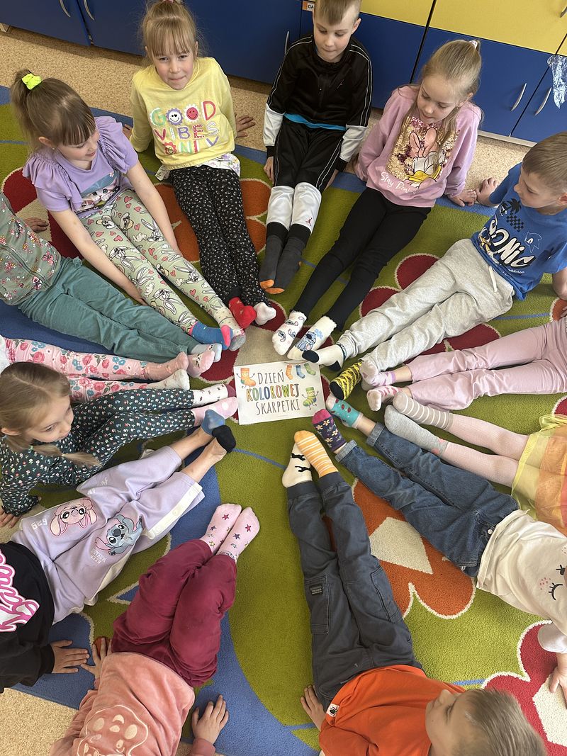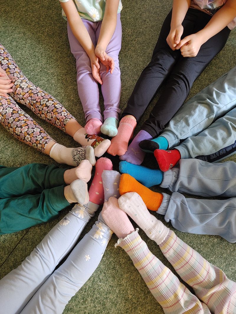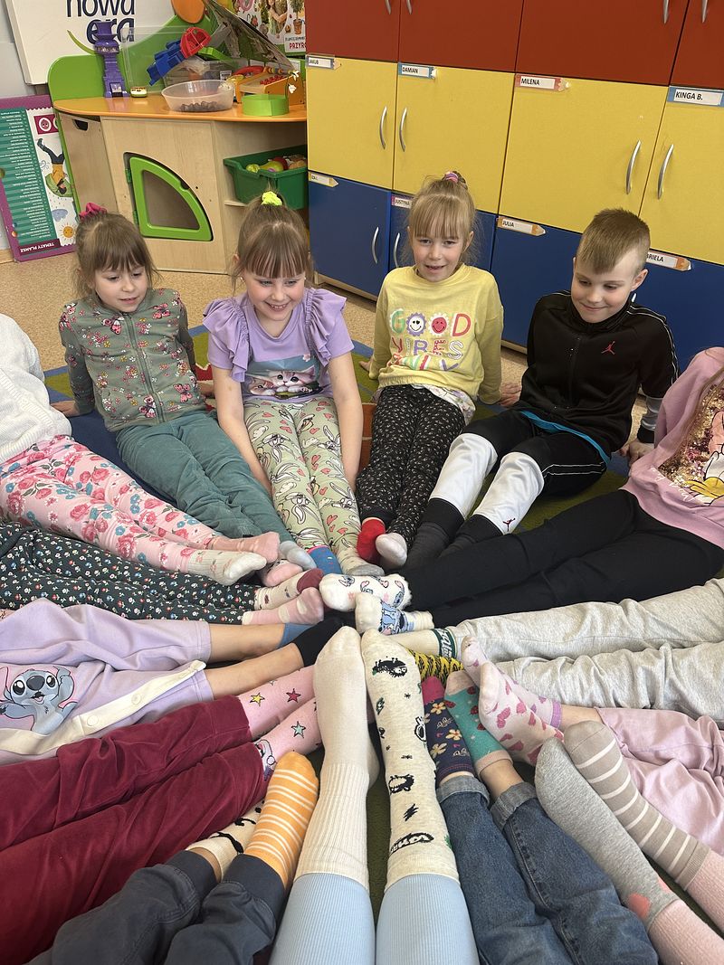 W tym roku pierwszy dzień wiosny przedszkolaki obchodziły w sposób wyjątkowy. Nie tylko poznawały zwiastuny nowej pory roku i poszukiwały ich podczas spaceru, zakładały hodowlę fasolki, czy przygotowywały kolorowe opaski. Dzieci dowiedziały się, że 21 marca świętujemy nie tylko nadejście wiosny. Jest to również Światowy Dzień Osób z Zespołem Downa, zwany również Dniem Kolorowej Skarpetki.