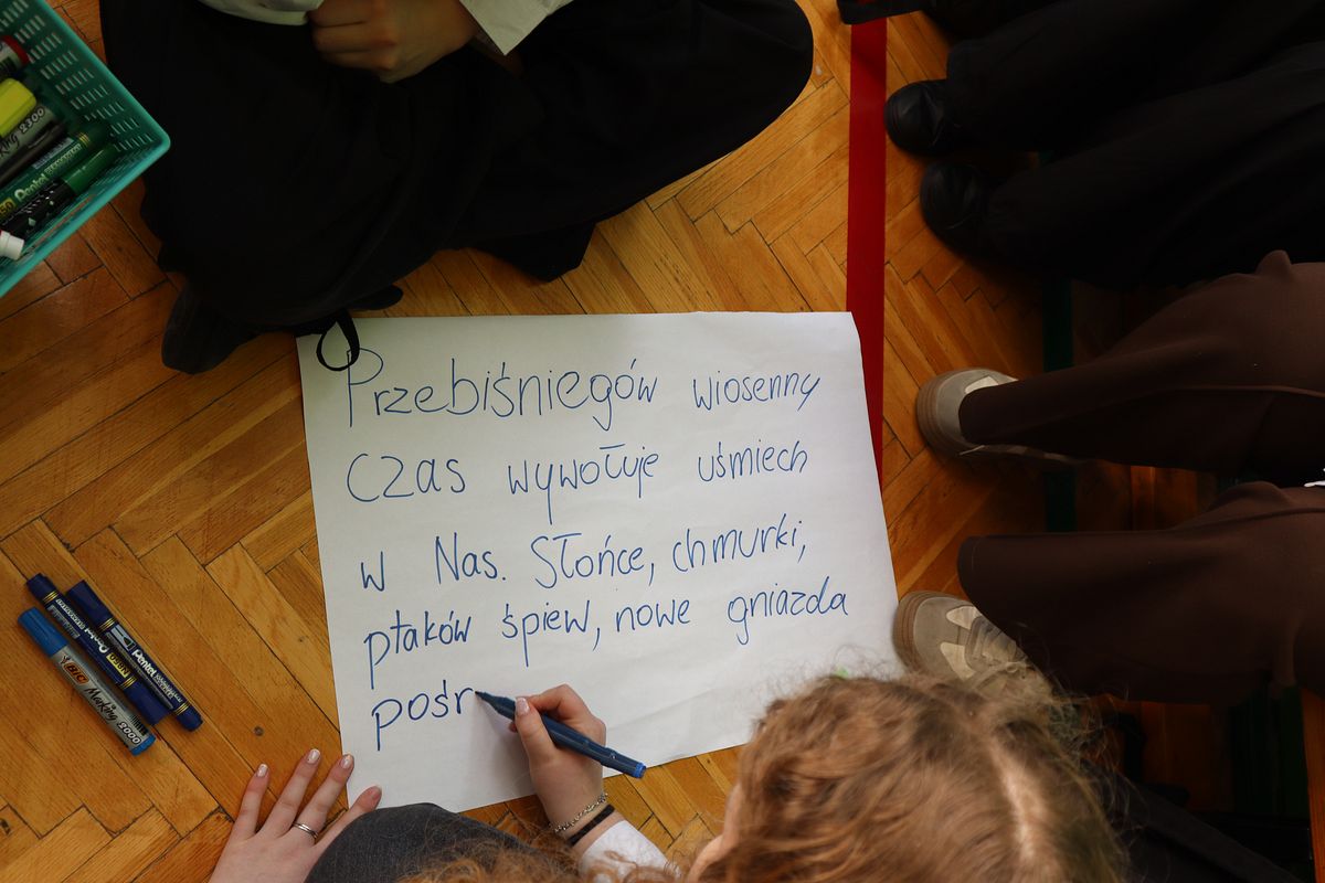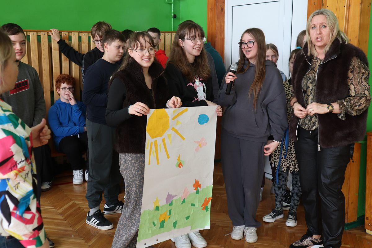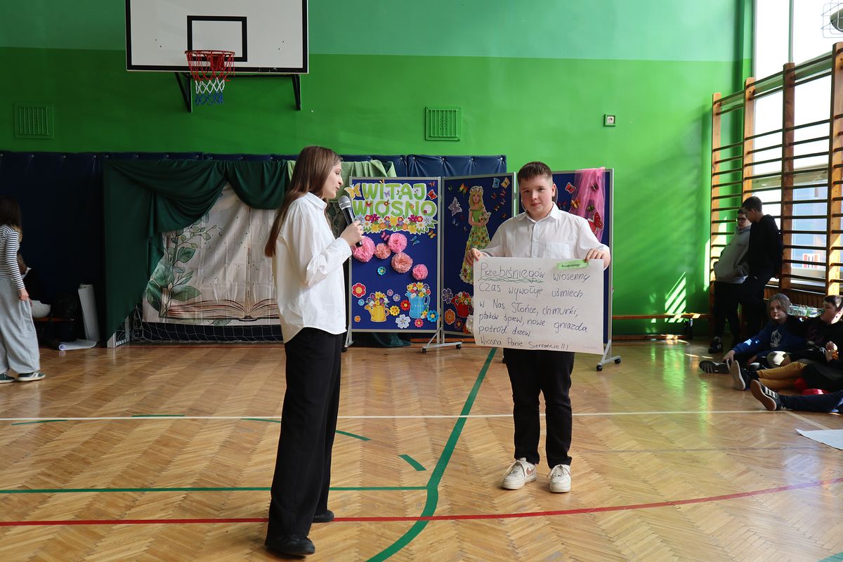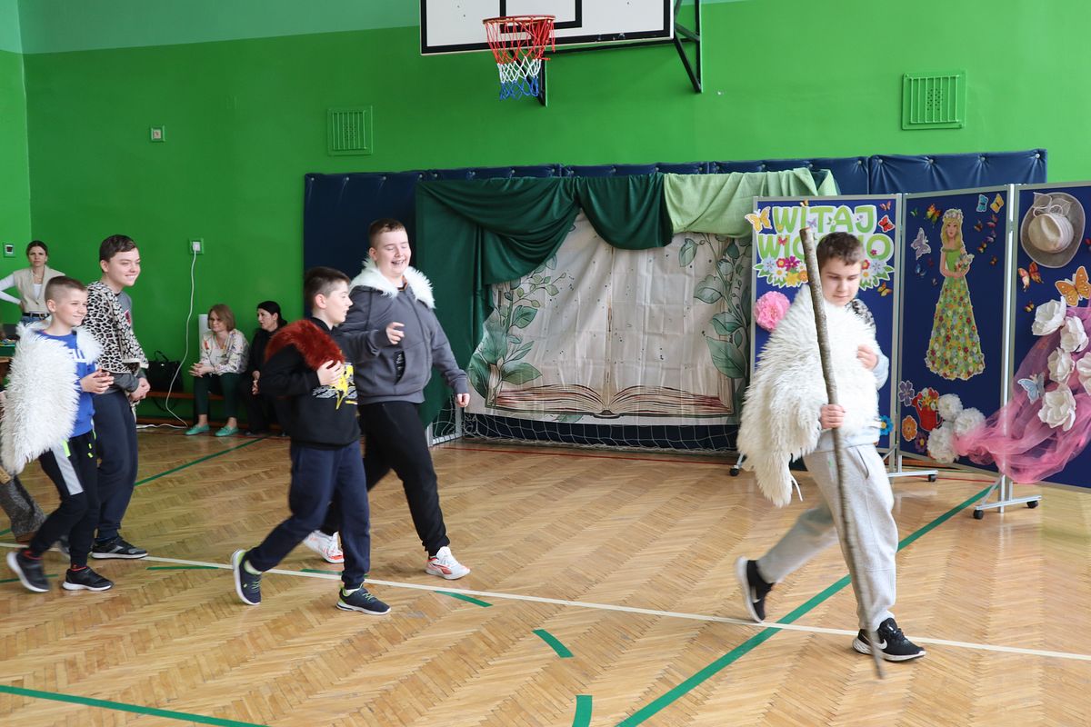 Starsi uczniowie naszej szkoły z radością powitali kalendarzową wiosnę, która rozpoczyna się 21 marca . Piątkowy dzień obfitował w wiele ciekawych aktywności, które pobudzały kreatywność i kooperację dzieci. Każdy oddział zaprezentował przygotowane stroje i przebrania, które wcześniej zostały wylosowane przez gospodarzy klas. Następnie dzieci uczestniczyły w „Wiosennej burzy mózgów”, czyli rundach zadaniowych, które uaktywniały ich umiejętności z różnych dziedzin. Powstały prace plastyczne przedstawiające wiosenne krajobrazy. Następnie rozbrzmiały poetyckie strofy, których autorami byli nasi uczniowie. Wszystkim spodobała się zabawa integracyjna, która sprawdzała umiejętność uważnego słuchania i odpowiedniego reagowania na czytane polecenia. W trakcie wykonywania zadań towarzyszyła nam spokojna, relaksacyjna muzyka sprzyjająca wysiłkowi umysłowemu i fizycznemu, która również nawiązywała do pory roku, którą wspólnie witaliśmy.