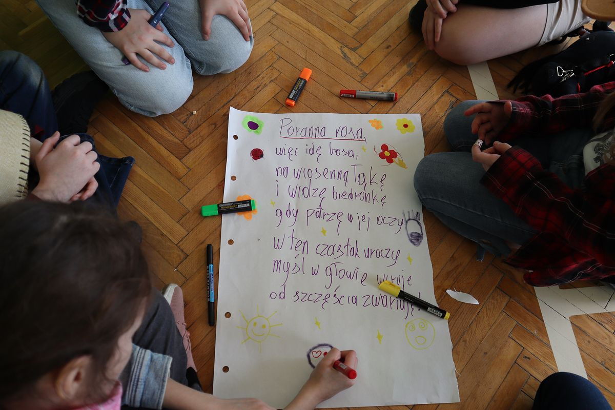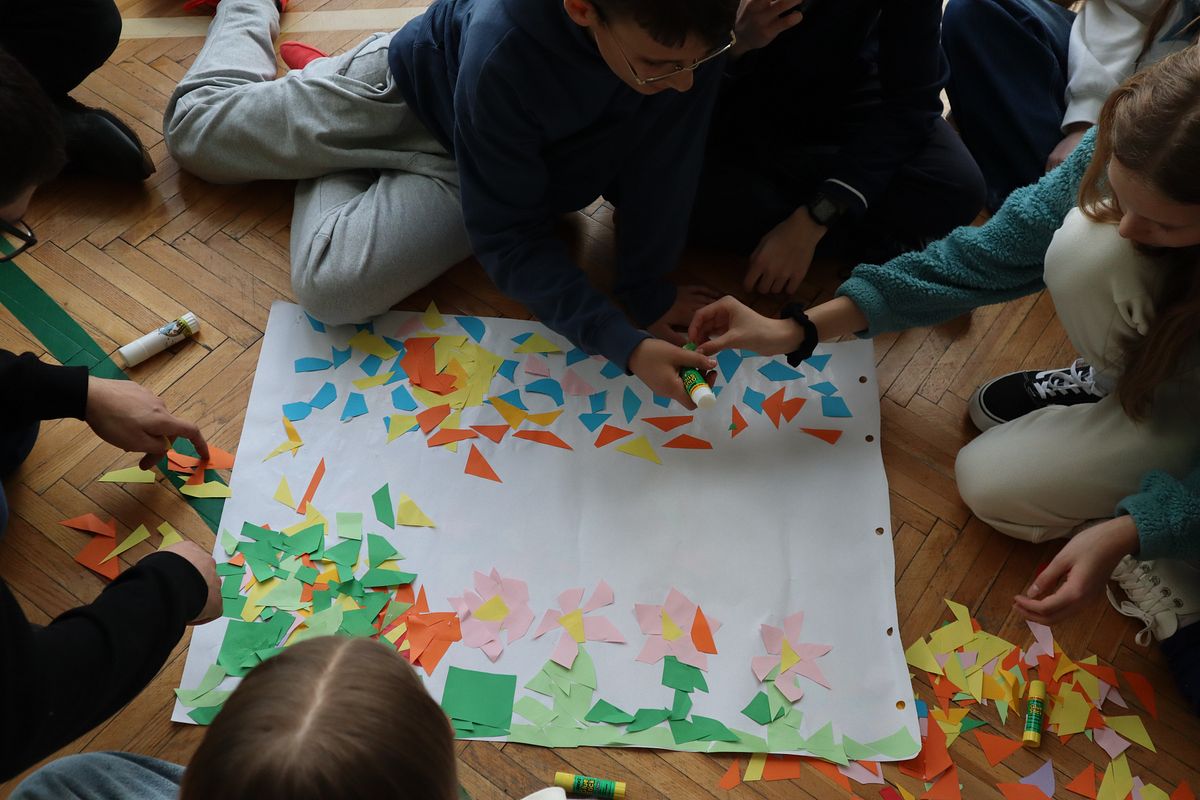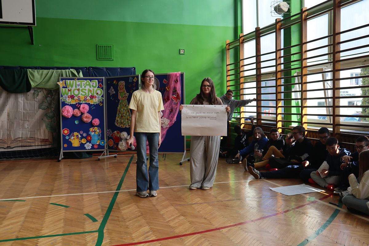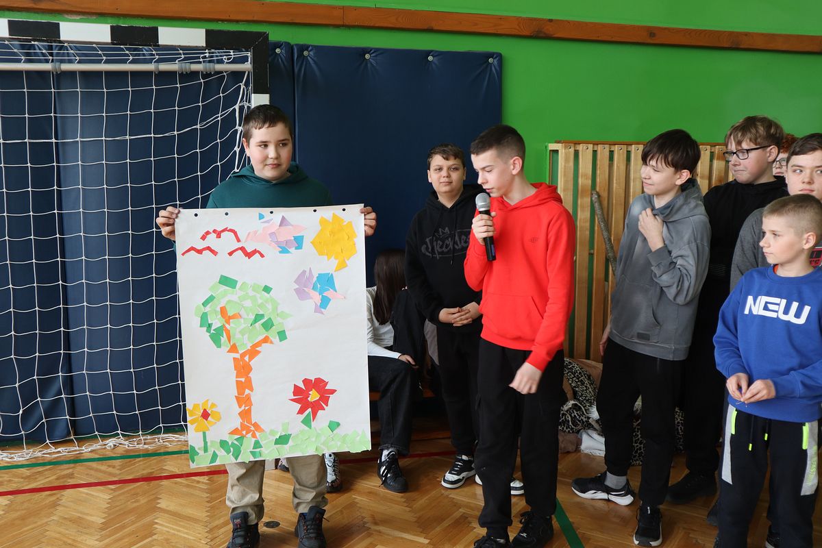 Starsi uczniowie naszej szkoły z radością powitali kalendarzową wiosnę, która rozpoczyna się 21 marca . Piątkowy dzień obfitował w wiele ciekawych aktywności, które pobudzały kreatywność i kooperację dzieci. Każdy oddział zaprezentował przygotowane stroje i przebrania, które wcześniej zostały wylosowane przez gospodarzy klas. Następnie dzieci uczestniczyły w „Wiosennej burzy mózgów”, czyli rundach zadaniowych, które uaktywniały ich umiejętności z różnych dziedzin. Powstały prace plastyczne przedstawiające wiosenne krajobrazy. Następnie rozbrzmiały poetyckie strofy, których autorami byli nasi uczniowie. Wszystkim spodobała się zabawa integracyjna, która sprawdzała umiejętność uważnego słuchania i odpowiedniego reagowania na czytane polecenia. W trakcie wykonywania zadań towarzyszyła nam spokojna, relaksacyjna muzyka sprzyjająca wysiłkowi umysłowemu i fizycznemu, która również nawiązywała do pory roku, którą wspólnie witaliśmy.