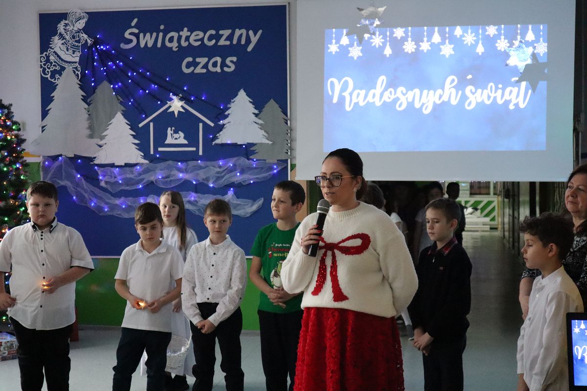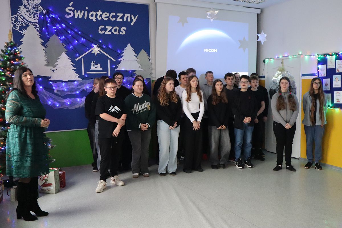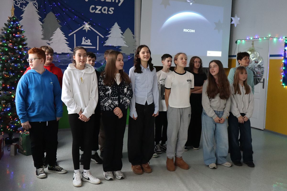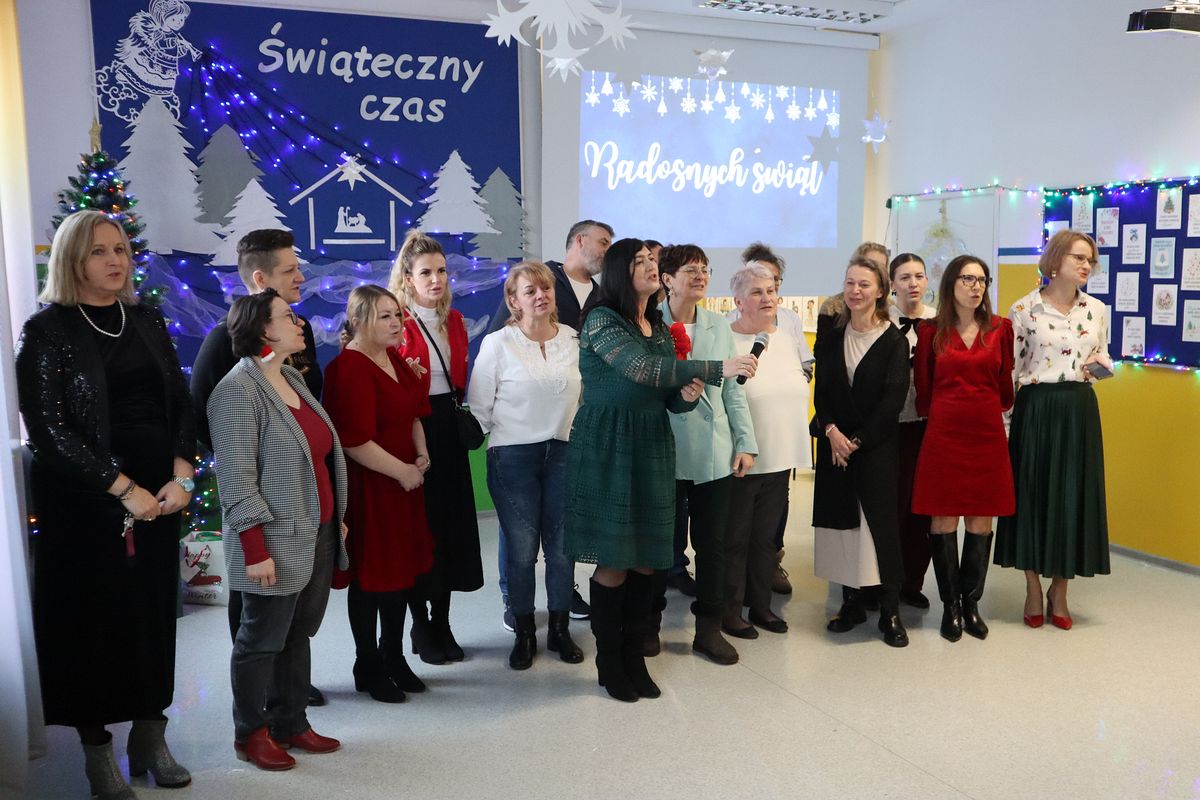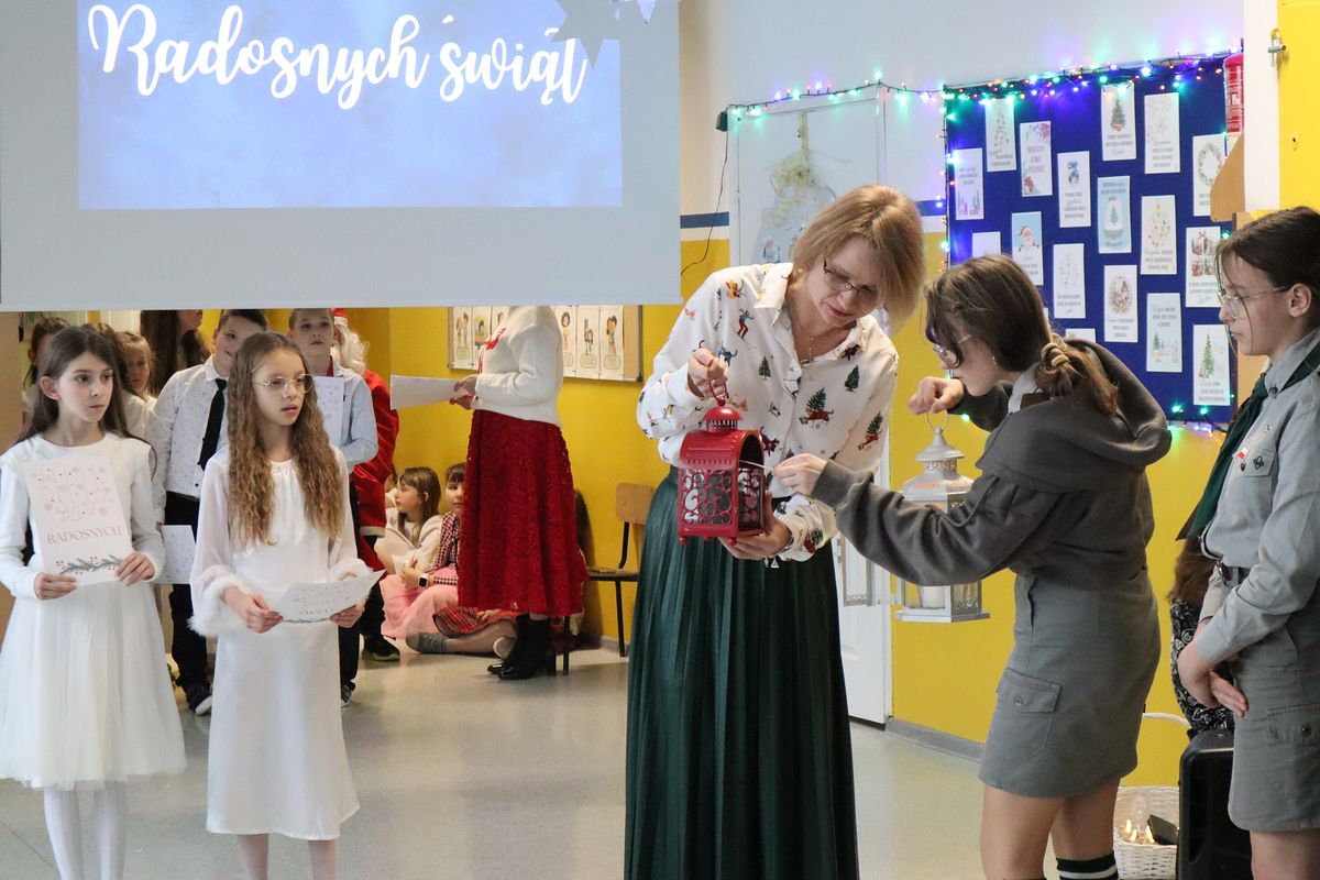 Cała społeczność szkolna złożyła sobie świąteczne życzenia. Wspólne śpiewanie kolęd zakończył spontaniczny występ rady pedagogicznej naszej szkoły. Odbyło się również symboliczne przekazanie Światełka Betlejemskiego. To był dobry wspólny czas w wyjątkowej atmosferze.