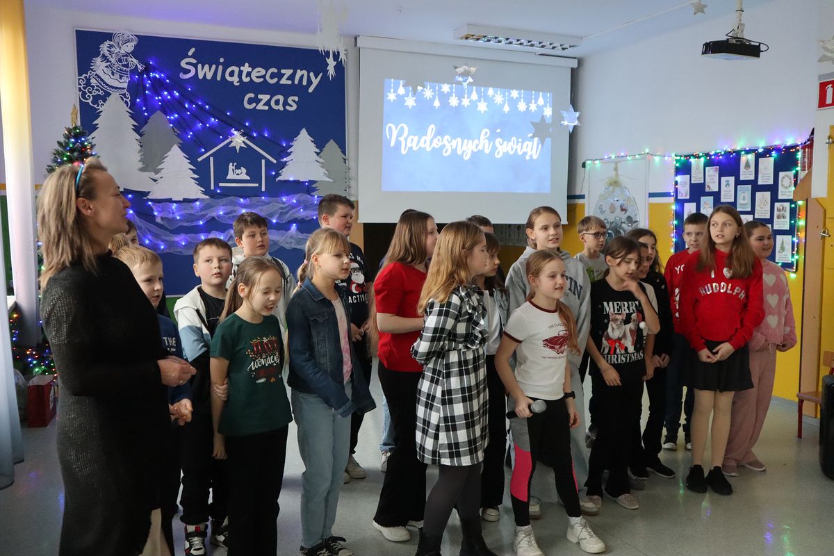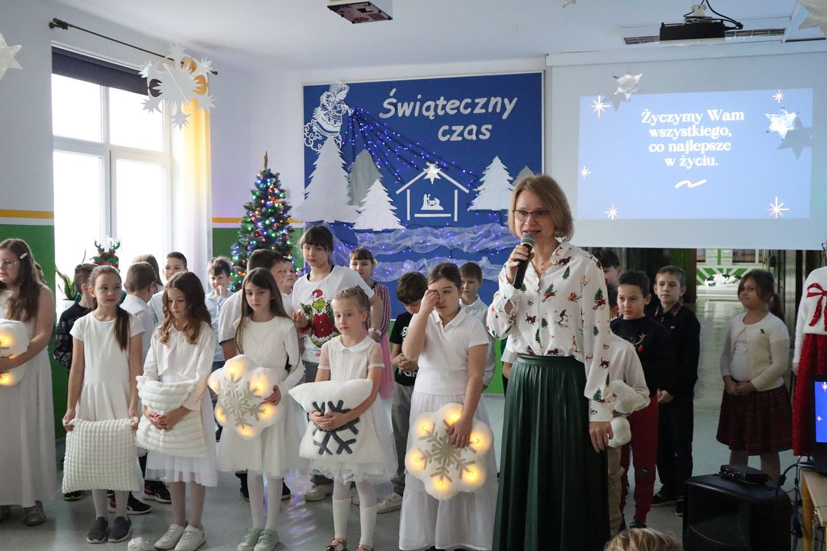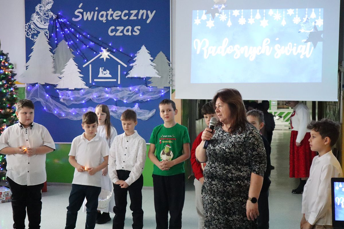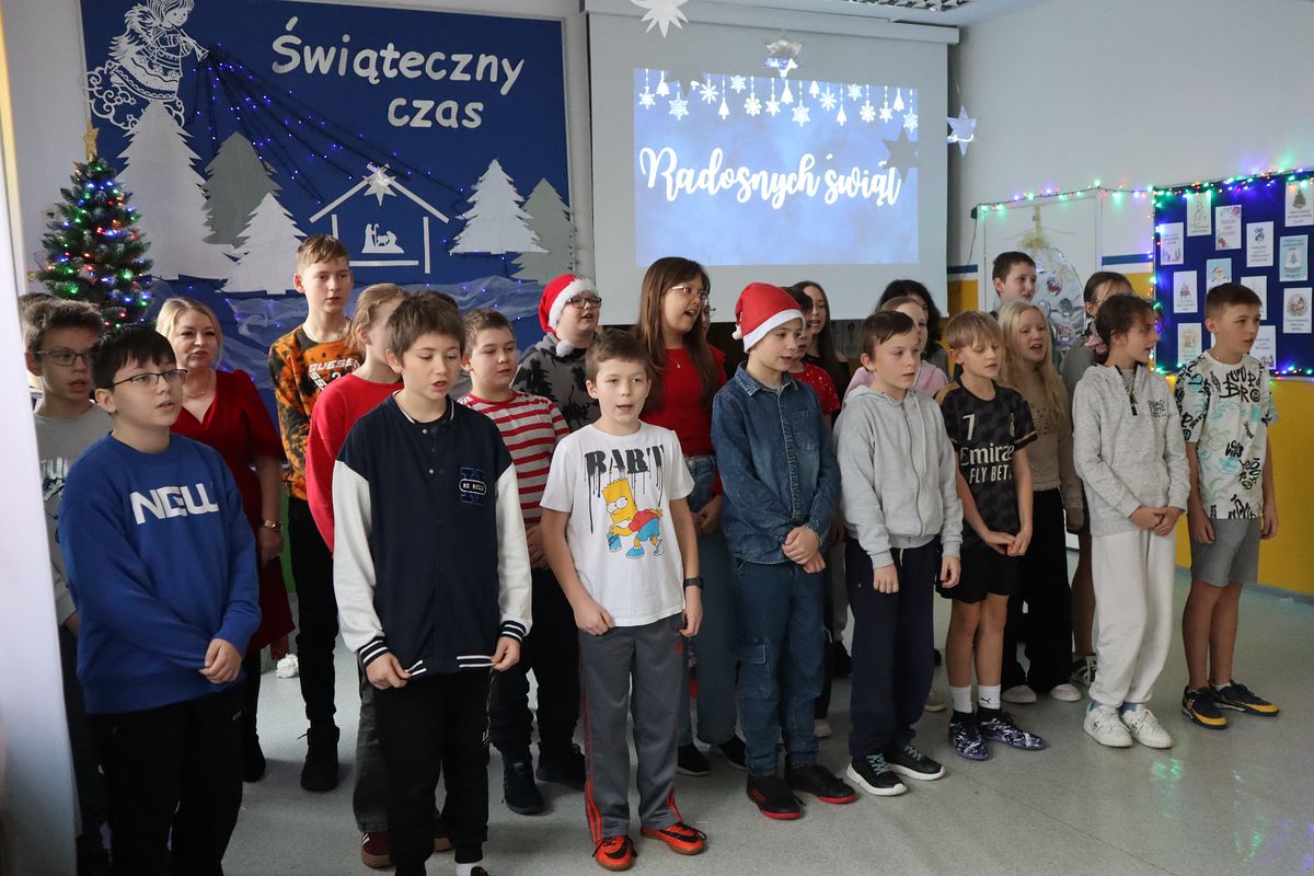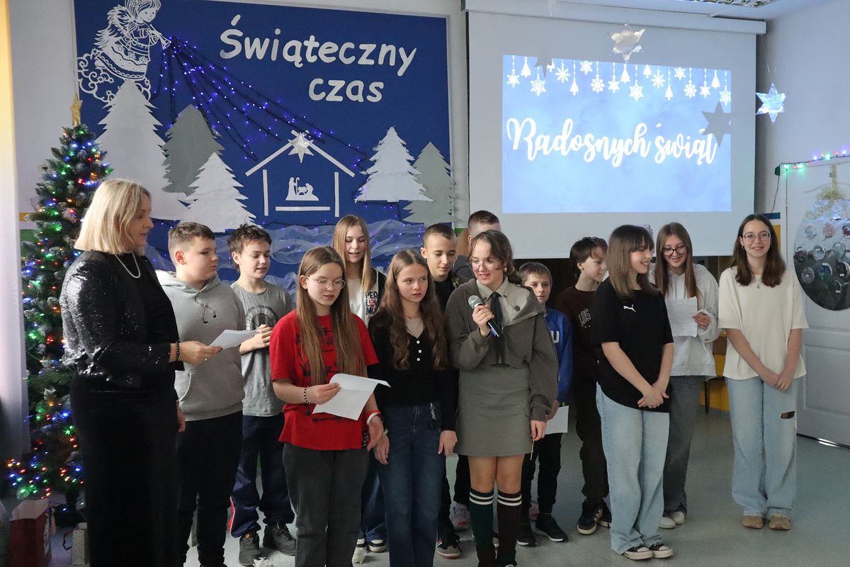 Cała społeczność szkolna złożyła sobie świąteczne życzenia. Wspólne śpiewanie kolęd zakończył spontaniczny występ rady pedagogicznej naszej szkoły. Odbyło się również symboliczne przekazanie Światełka Betlejemskiego. To był dobry wspólny czas w wyjątkowej atmosferze.