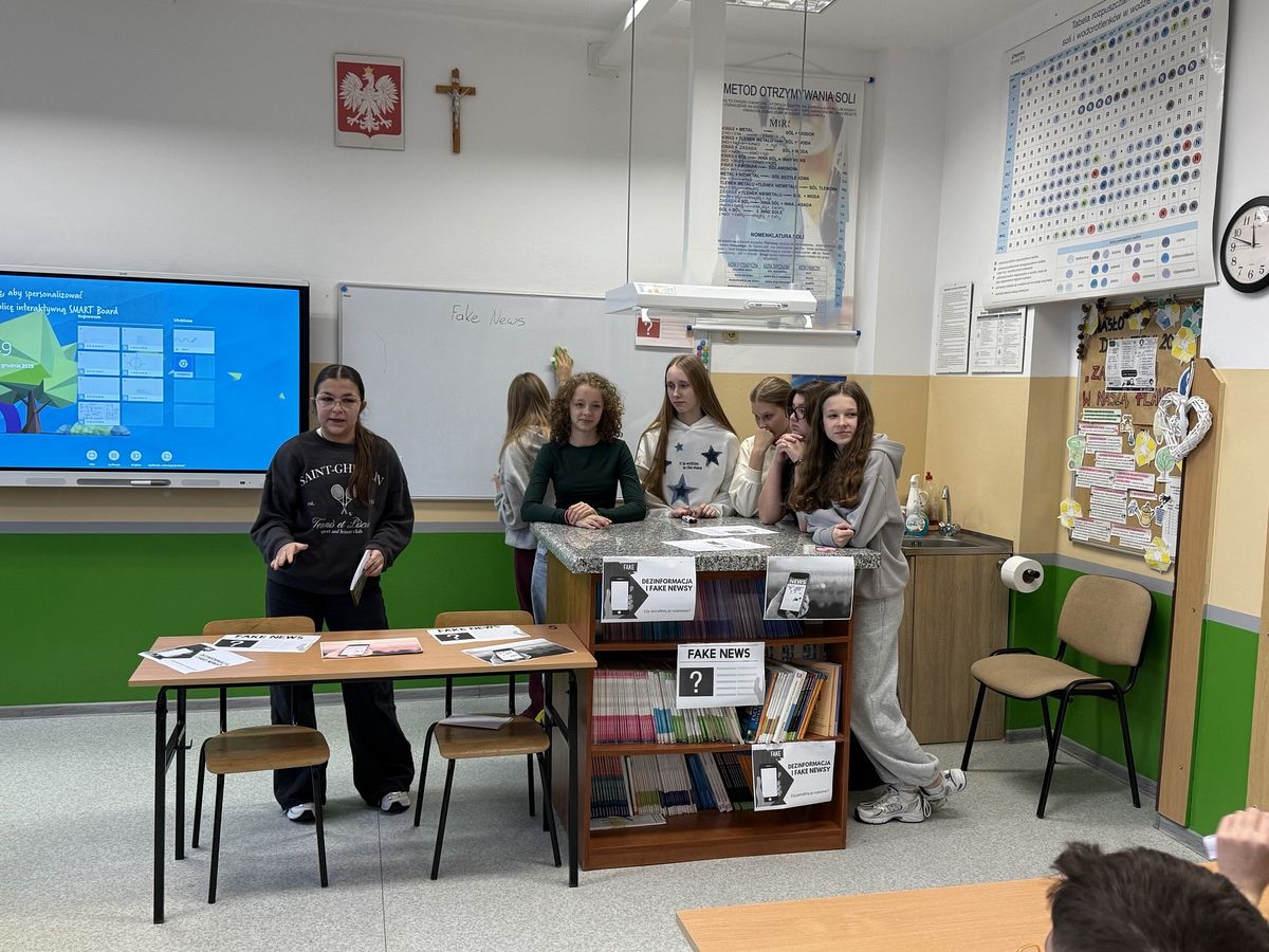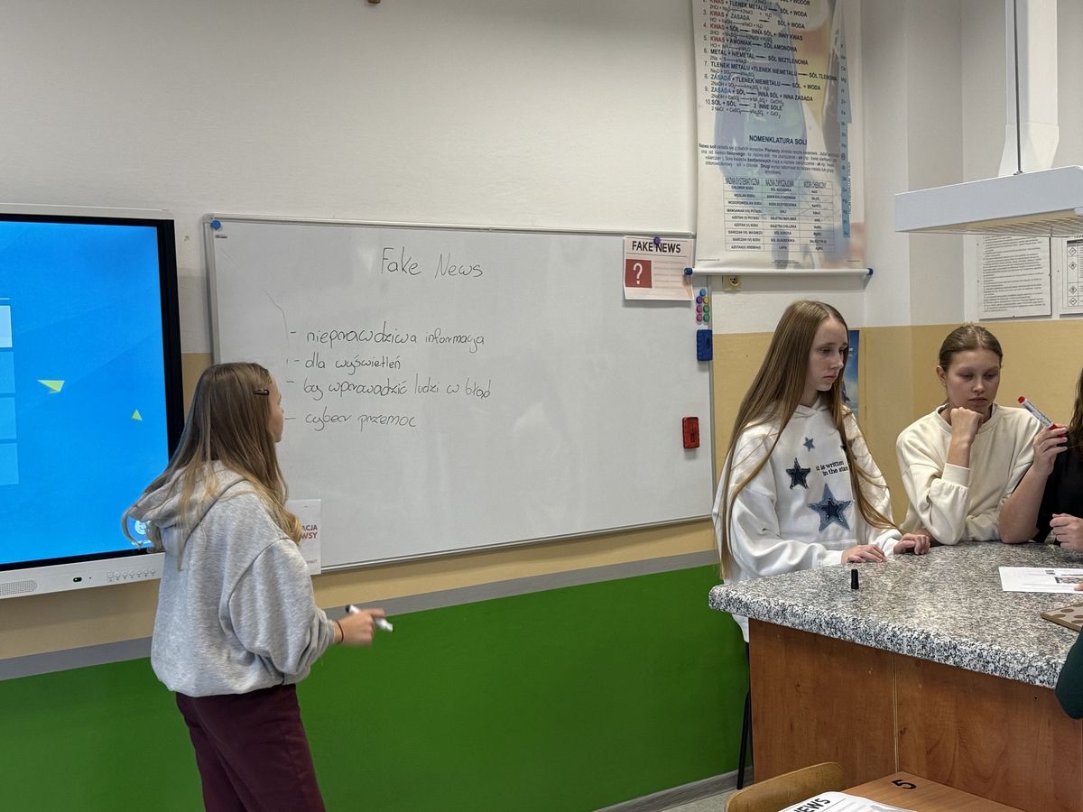 Podczas godziny wychowawczej uczennice klasy 7a: Aleksandra Jankowska i Paulina Skowrońska, przy wsparciu Oliwii Skibickiej, Martyny Andrzejczyk, Pauli Grycz oraz Leny Rozmysłowicz, przeprowadziły lekcję pt. „Prawda czy fałsz – na tropie fake newsów”. Zajęcia zostały oparte na scenariuszu Centrum Edukacji Obywatelskiej i zrealizowane w ramach Festiwalu CEO „Młodzi w Akcji”.