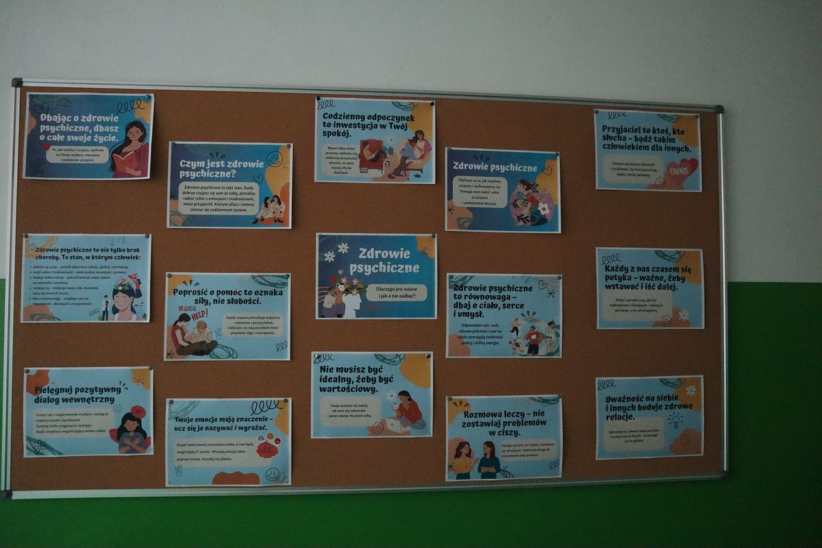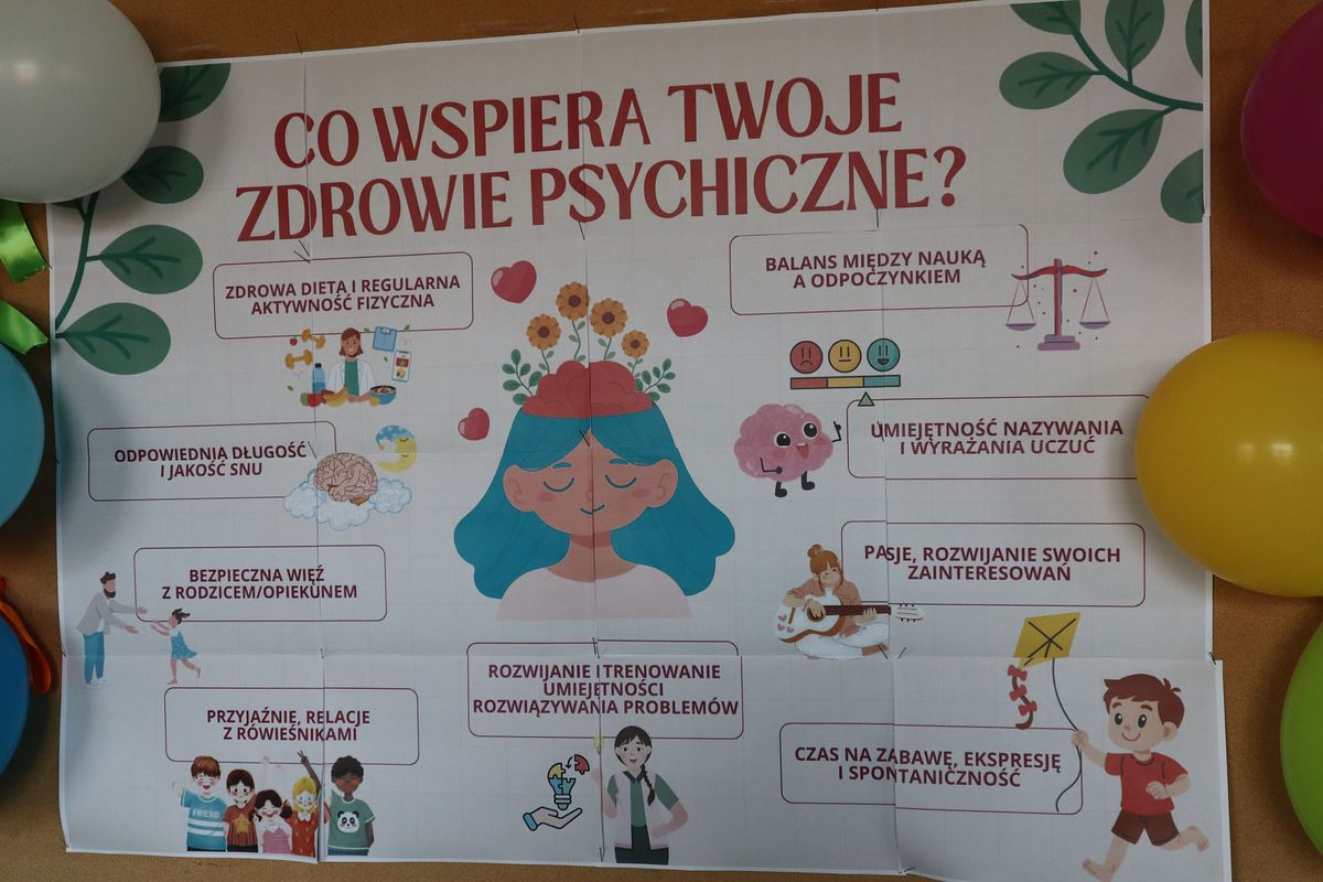 W ramach celebrowania tego dnia zorganizowano wiele ciekawych inicjatyw. Na korytarzach szkolnych przygotowane zostały gazetki informacyjne na temat profilaktyki zdrowia psychicznego oraz wiadomości wraz z numerami telefonów zaufania, gdzie osoby potrzebujące wsparcia mogą szukać pomocy. Ponadto panie psycholog i pedagog prowadziły w klasach zajęcia poruszające tematykę dobrostanu psychicznego dzieci i młodzieży. Hitem tego dnia był kiermasz ciast oraz kącik relaksu, w którym uczniowie mogli odpocząć od szkolnego zgiełku oraz wypić aromatyczną herbatę. Przeprowadzono również akcję „naklejkową”- każdy mógł wylosować naklejkę z pozytywną afirmacją i nakleić ją wybranej osobie lub też pozostawić dla siebie.