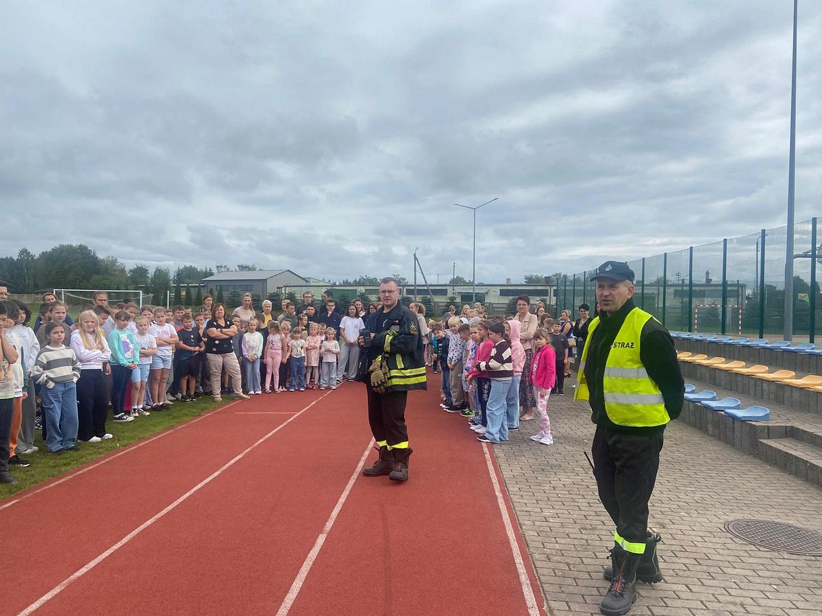 22 września 2025r. o godz. 10.00 w szkole rozległy się dźwięki syreny alarmowej, oznaczające sygnał do ewakuacji w naszej placówce. Uczniowie, nauczyciele i pracownicy obsługi, zachowując środki bezpieczeństwa, szybko, sprawnie i bez paniki opuścili budynek szkoły. Po opuszczeniu obiektu wszyscy udali się na boisko szkole – wyznaczone miejsce zbiórki. Nad sprawnym przebiegiem ewakuacji czuwali strażacy z Ochotniczej Straży Pożarnej w Bargłowie Kościelnym.