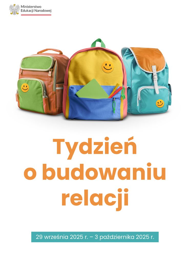W dniach 29 września – 3 października 2025 r. nasza szkoła włącza się w inicjatywę Ministerstwa Edukacji Narodowej – Tydzień o Budowaniu Relacji oraz Tydzień Przeciwdziałania Przemocy Rówieśniczej. To ogólnopolska akcja, której celem jest wzmacnianie więzi między dziećmi, uczenie współpracy, szacunku oraz przeciwdziałania przemocy rówieśniczej.