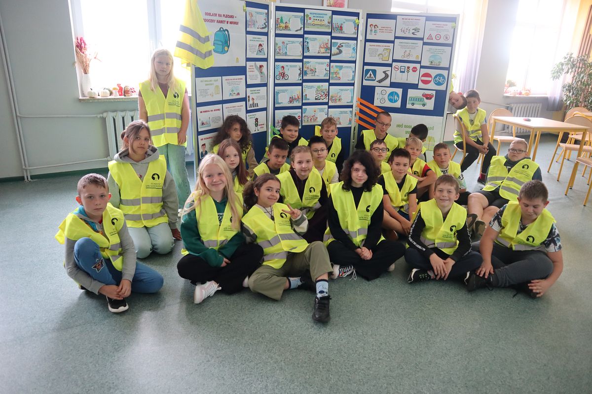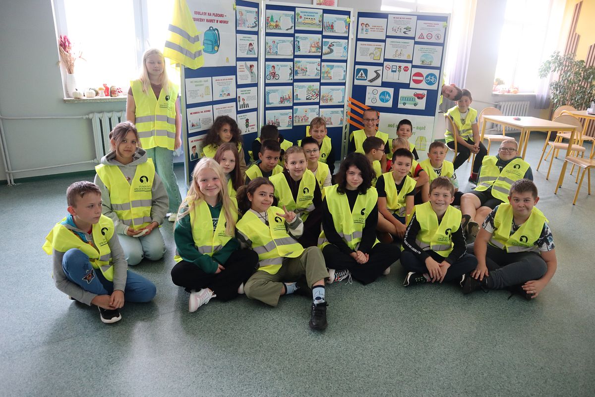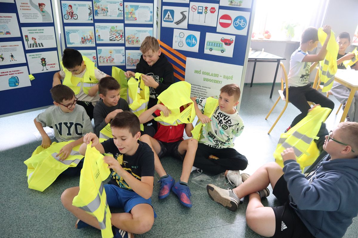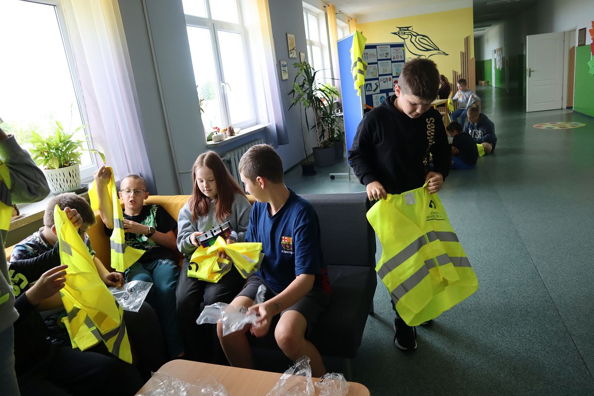 W naszej szkole przygotowaliśmy gazetkę poświęconą bezpieczeństwu w ruchu drogowym i znaczeniu odblasków. Uczniowie klasy piątej otrzymali kamizelki odblaskowe i uczestniczyli w lekcji techniki poświęconej utrwaleniu podstawowych wiadomości z zakresu ruchu pieszych, rowerzystów i kierujących hulajnogami. Dzieci bardzo chętnie angażowały się w zajęcia, prezentowały swoja wiedzę, podawały przykłady jej wykorzystania. Ważne jest, aby utrwalona wiedza została we właściwy sposób wykorzystana w życiu codziennym, w drodze do i ze szkoły.