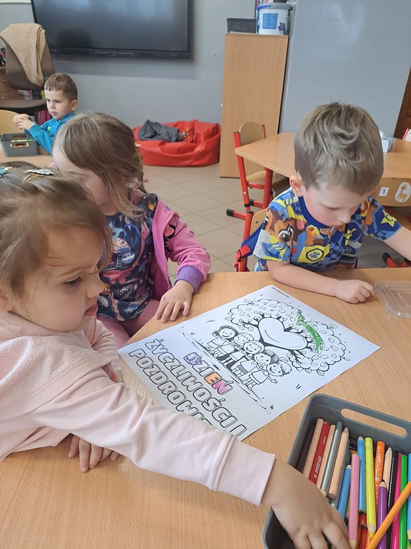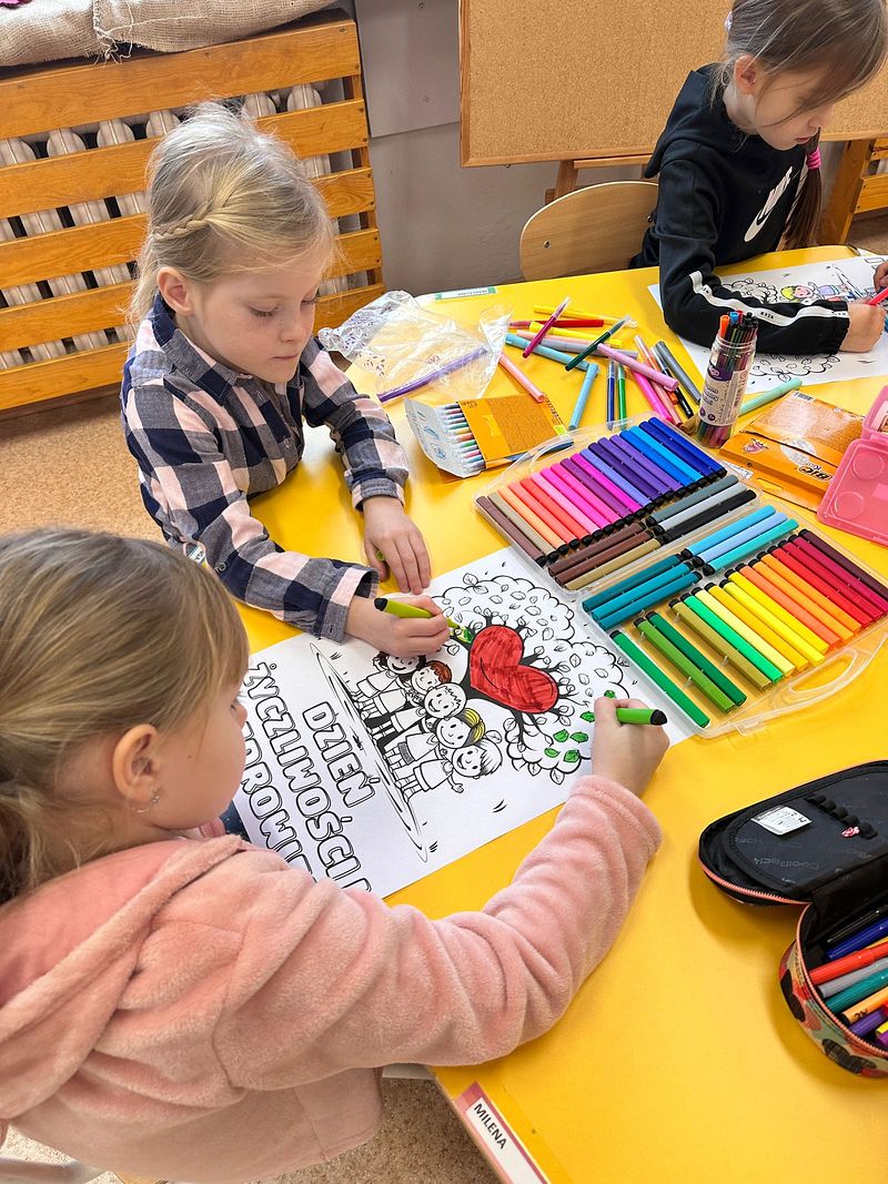 **Kolory Życzliwości: Uczniowie klas I-III oraz przedszkolaki pokolorowały tematyczne kolorowanki.
