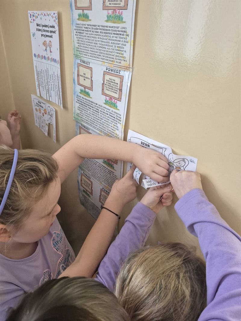 **Bileciki Życzliwości: Po szkole rozwieszone zostały dobre słowa dla bliźniego. Te małe wiadomości z pozytywnym przesłaniem wywołały wiele radości i zaskoczenia!