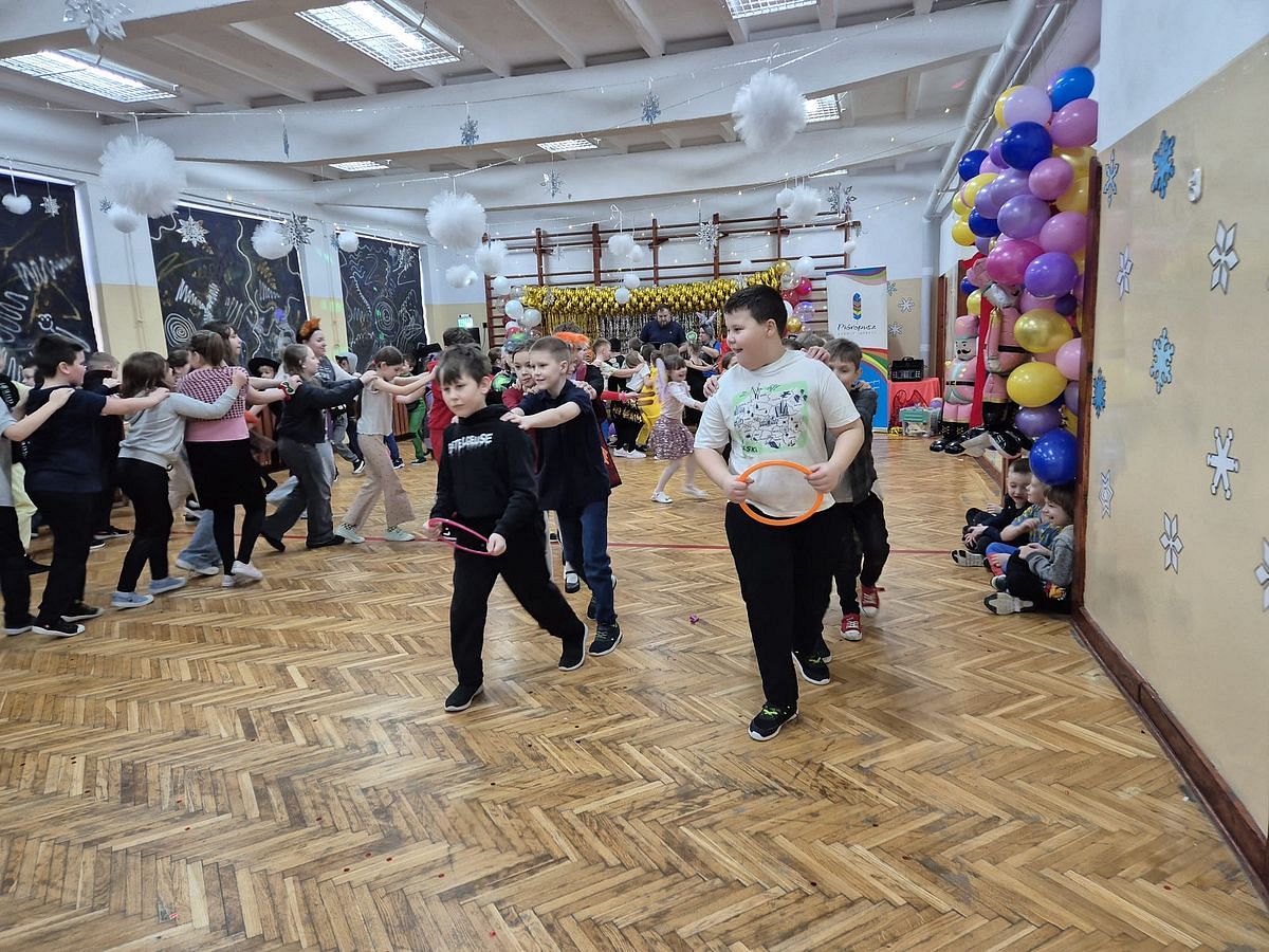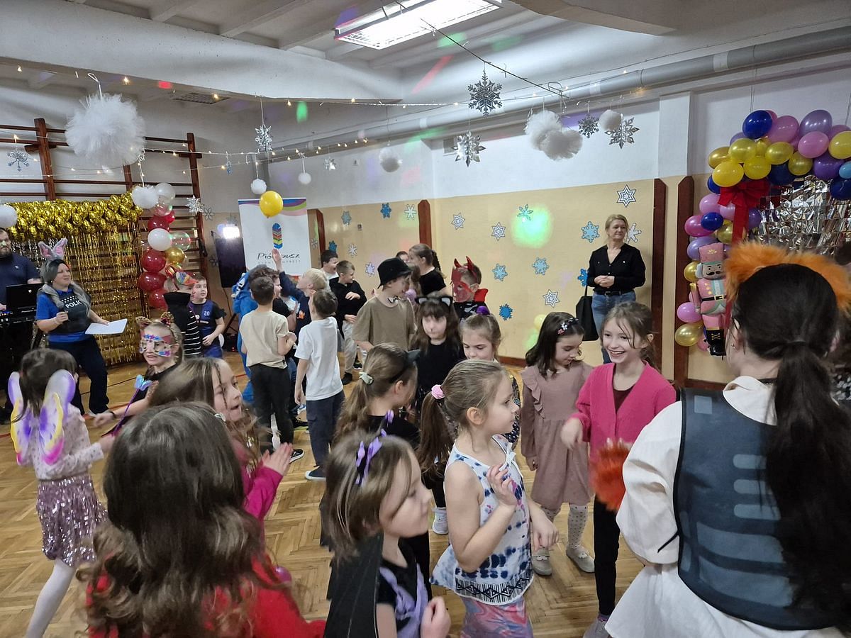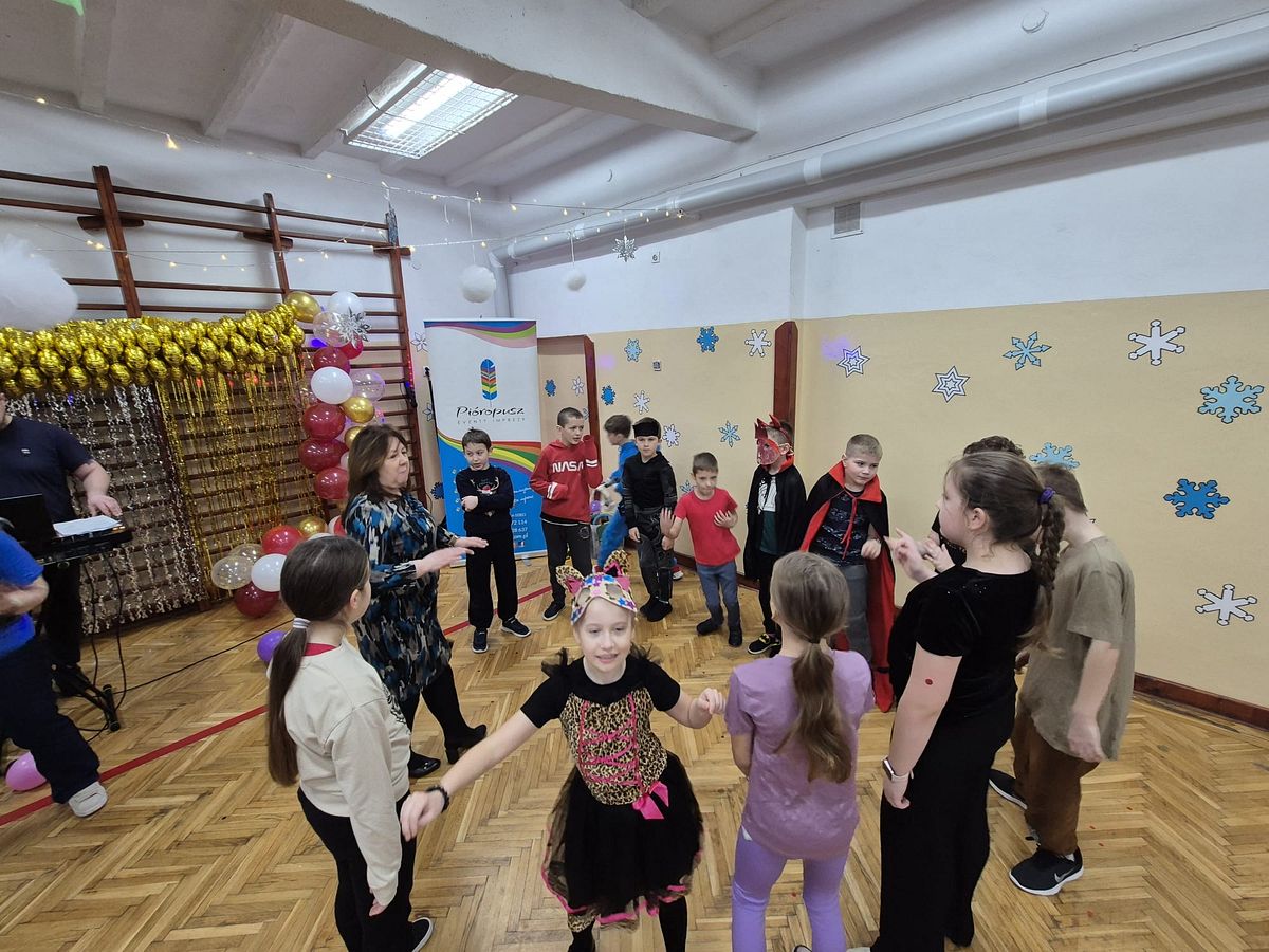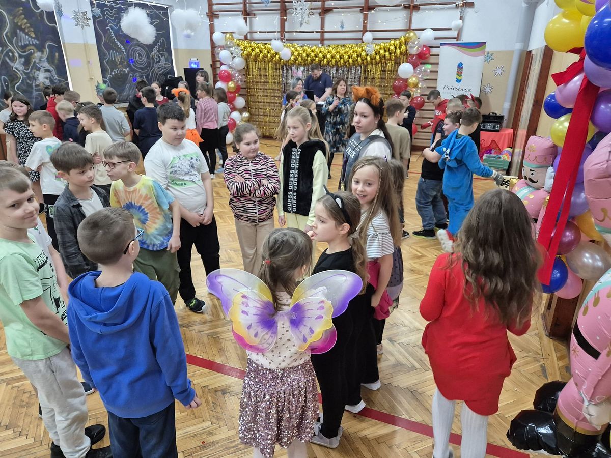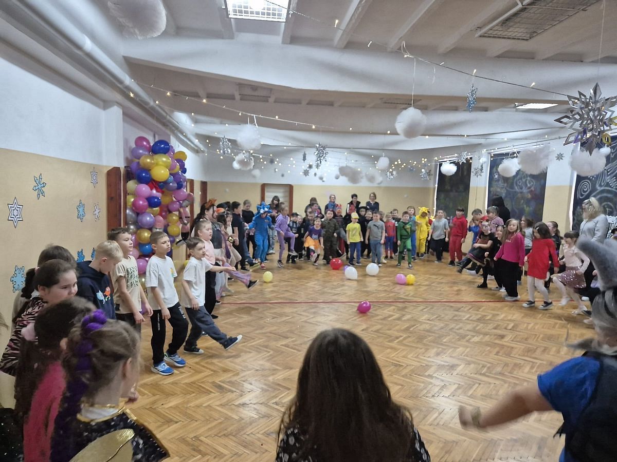 Dnia 15 stycznia w naszej szkole odbył się wesoły bal karnawałowy dla uczniów klas I–III. Sala gimnastyczna została pięknie udekorowana kolorowymi balonami, girlandami i śnieżynkami co wprowadziło wszystkich w radosny, karnawałowy nastrój.