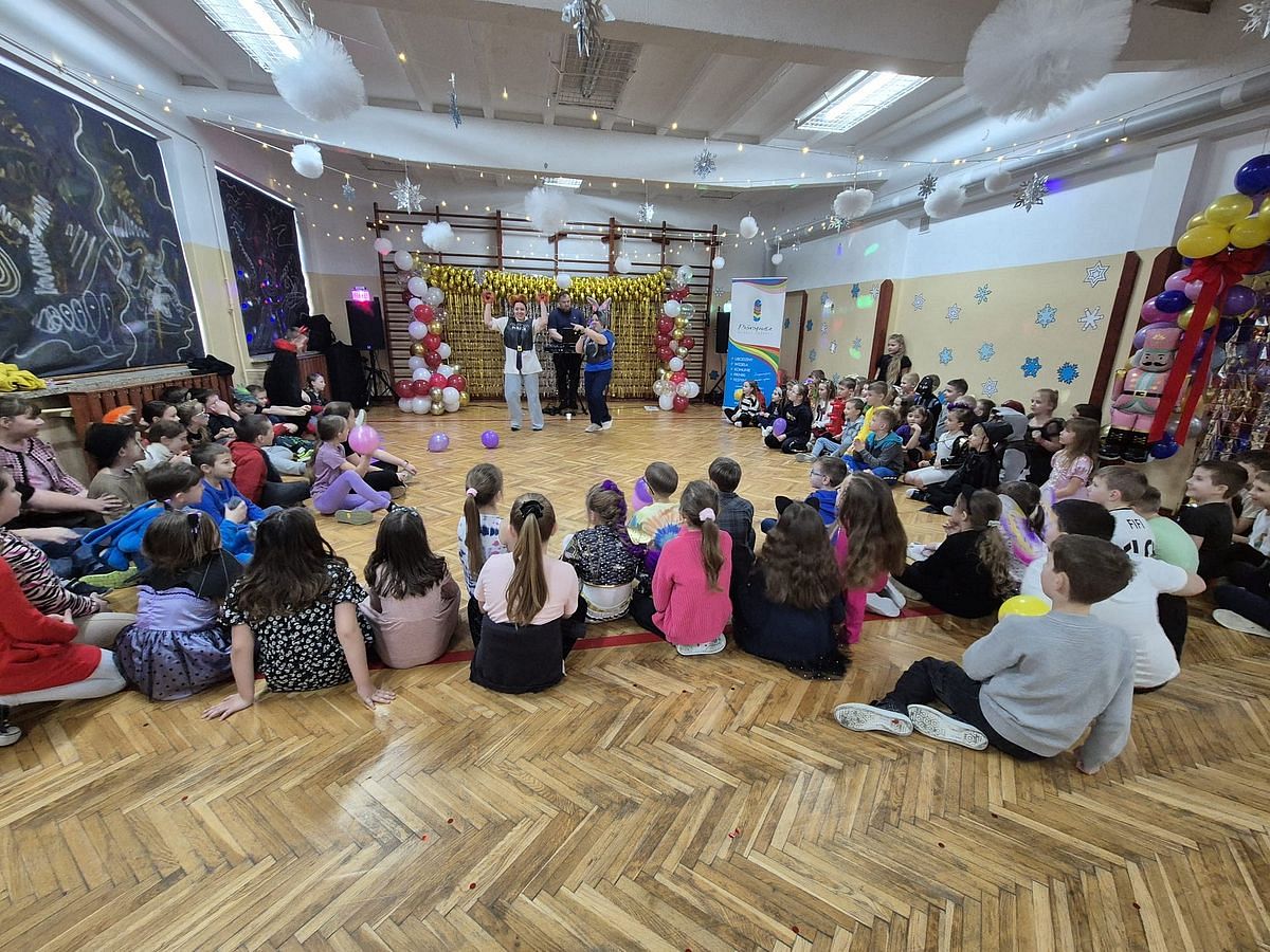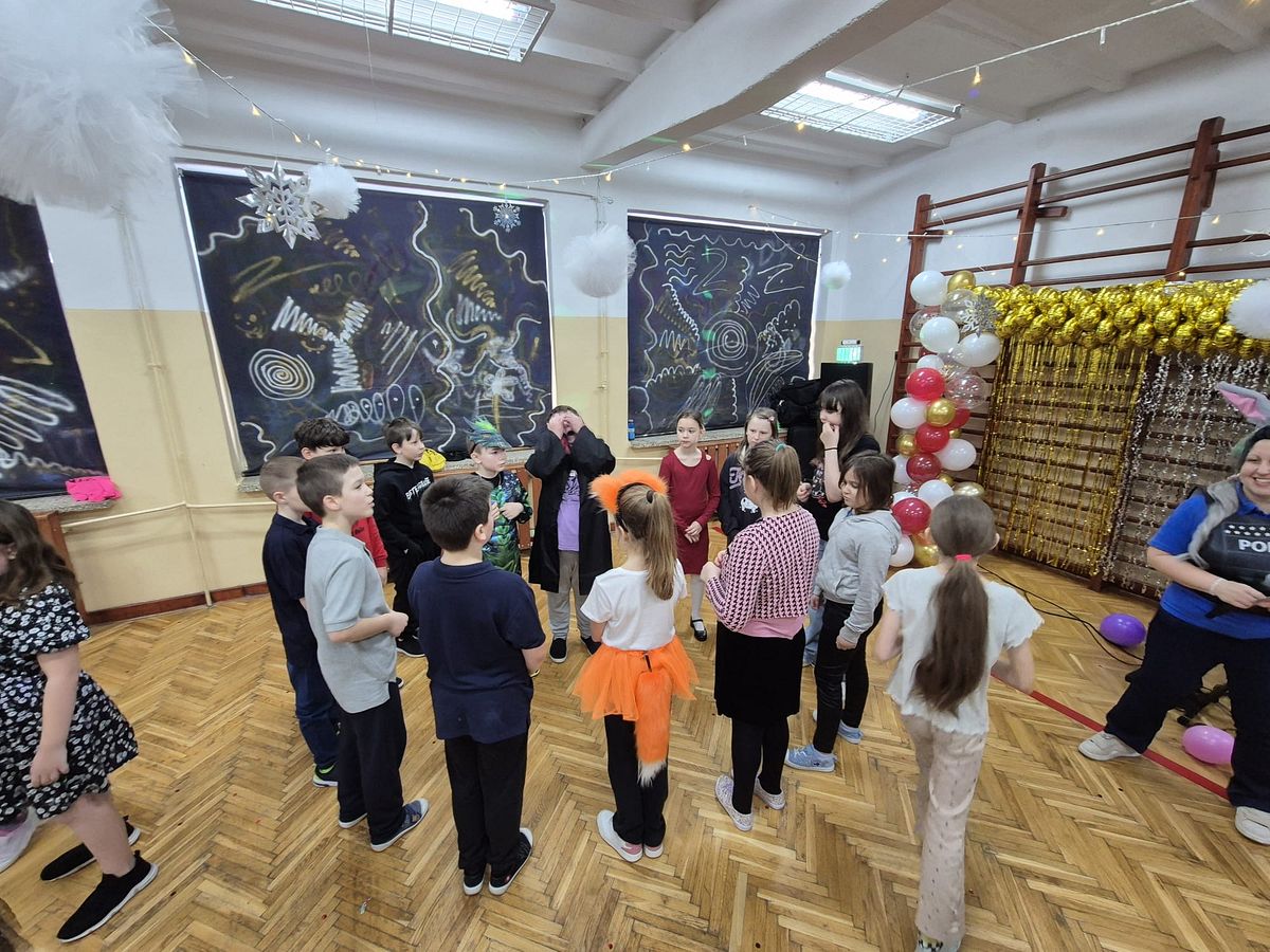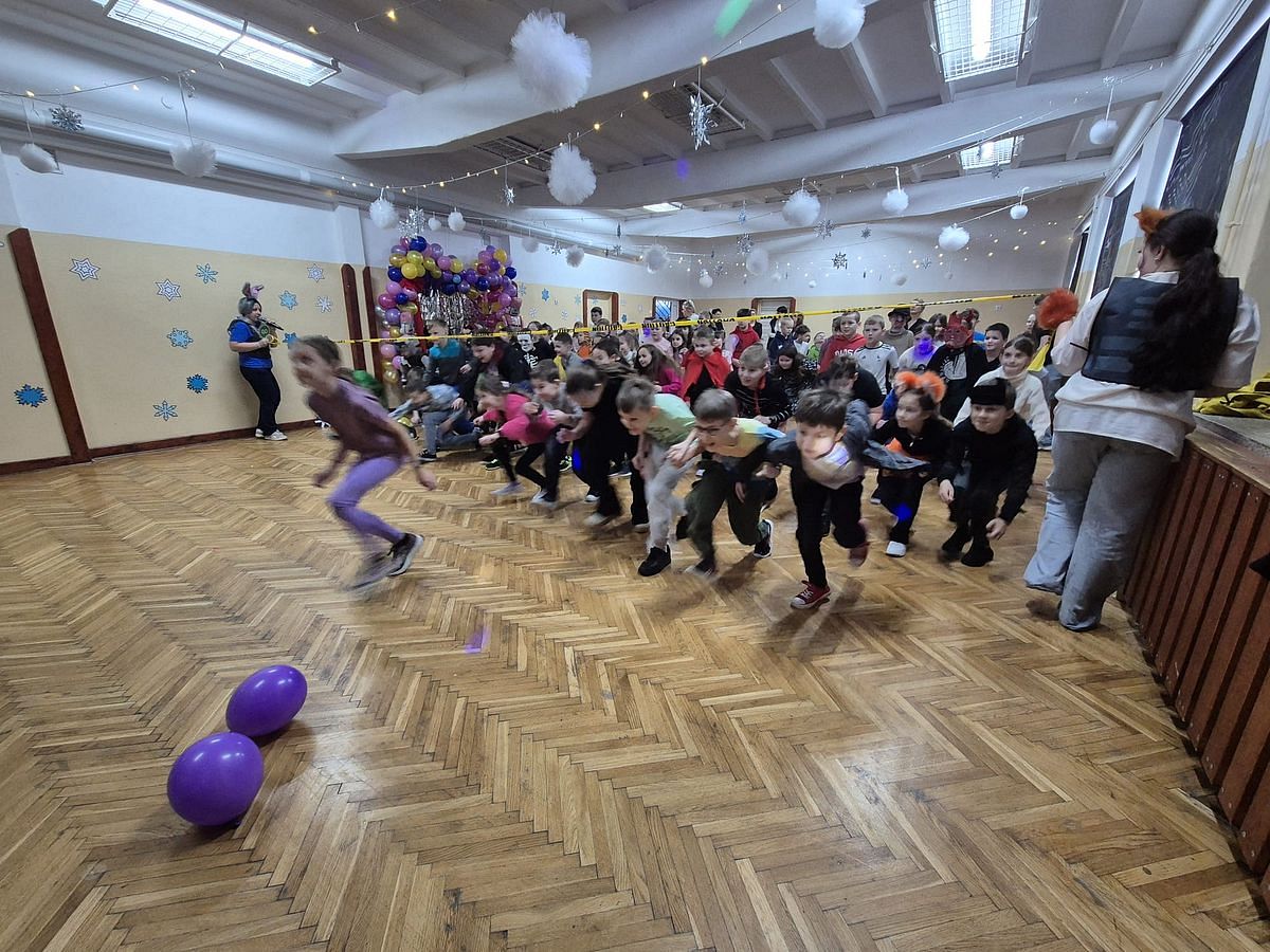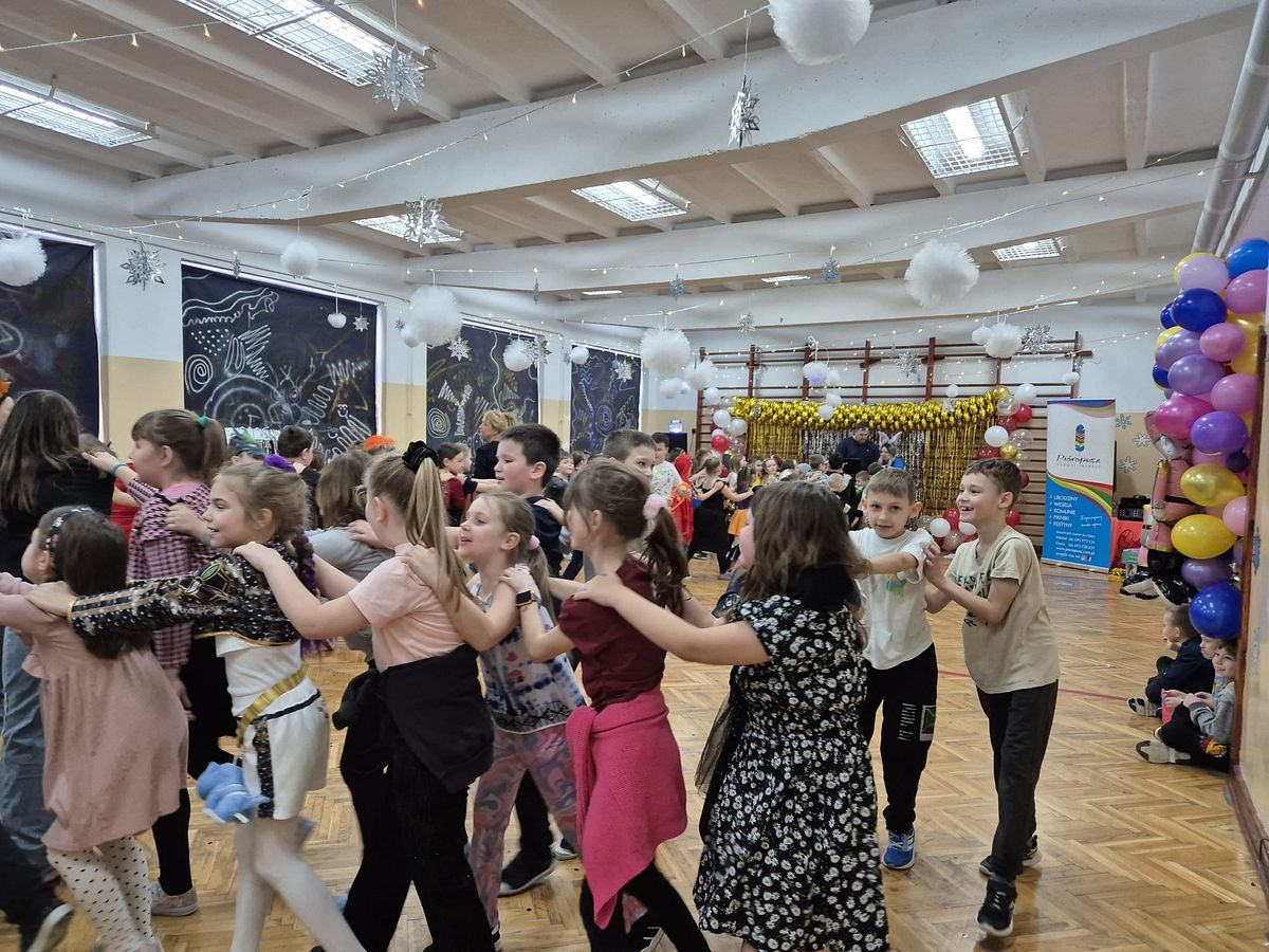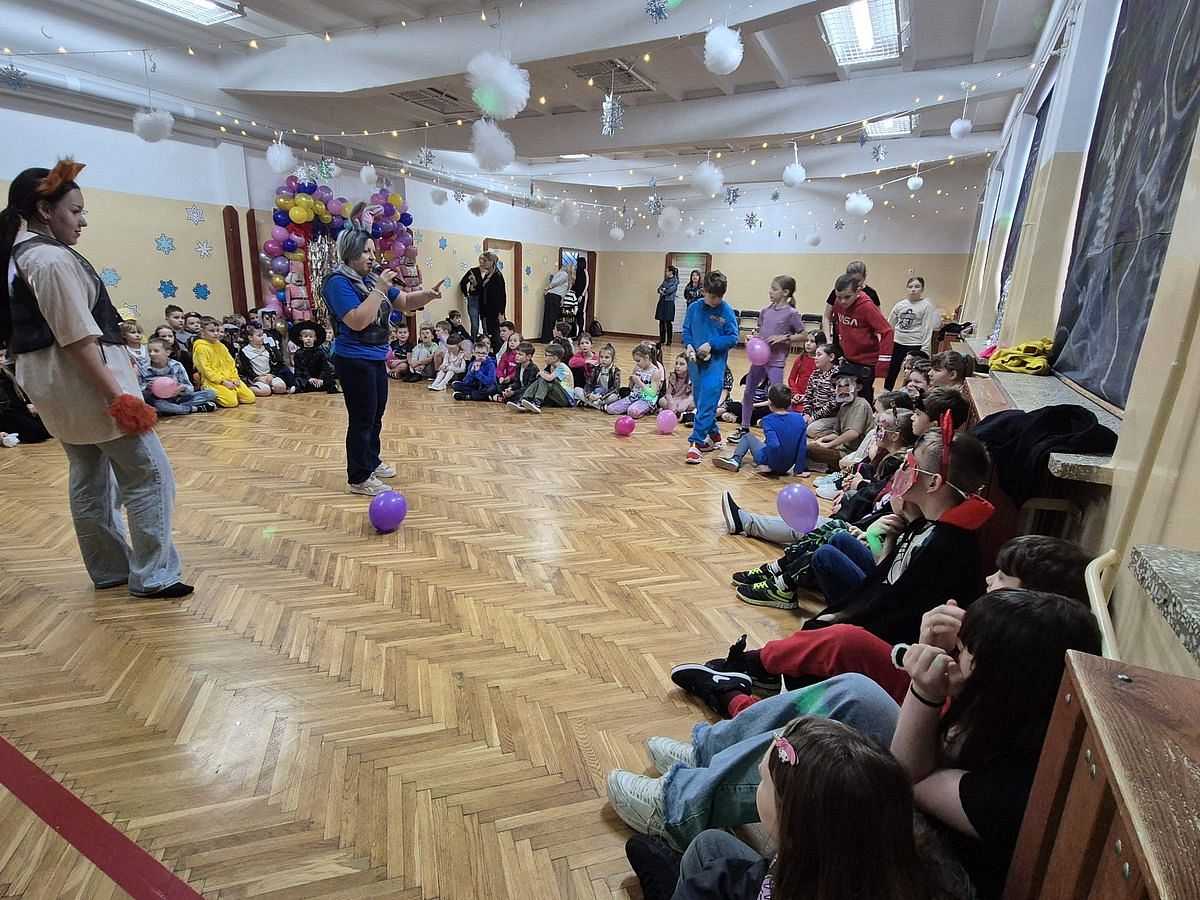 Dnia 15 stycznia w naszej szkole odbył się wesoły bal karnawałowy dla uczniów klas I–III. Sala gimnastyczna została pięknie udekorowana kolorowymi balonami, girlandami i śnieżynkami co wprowadziło wszystkich w radosny, karnawałowy nastrój.