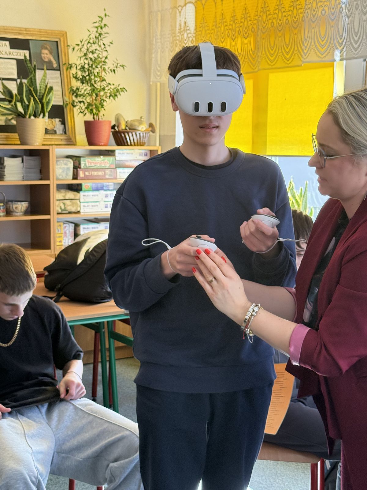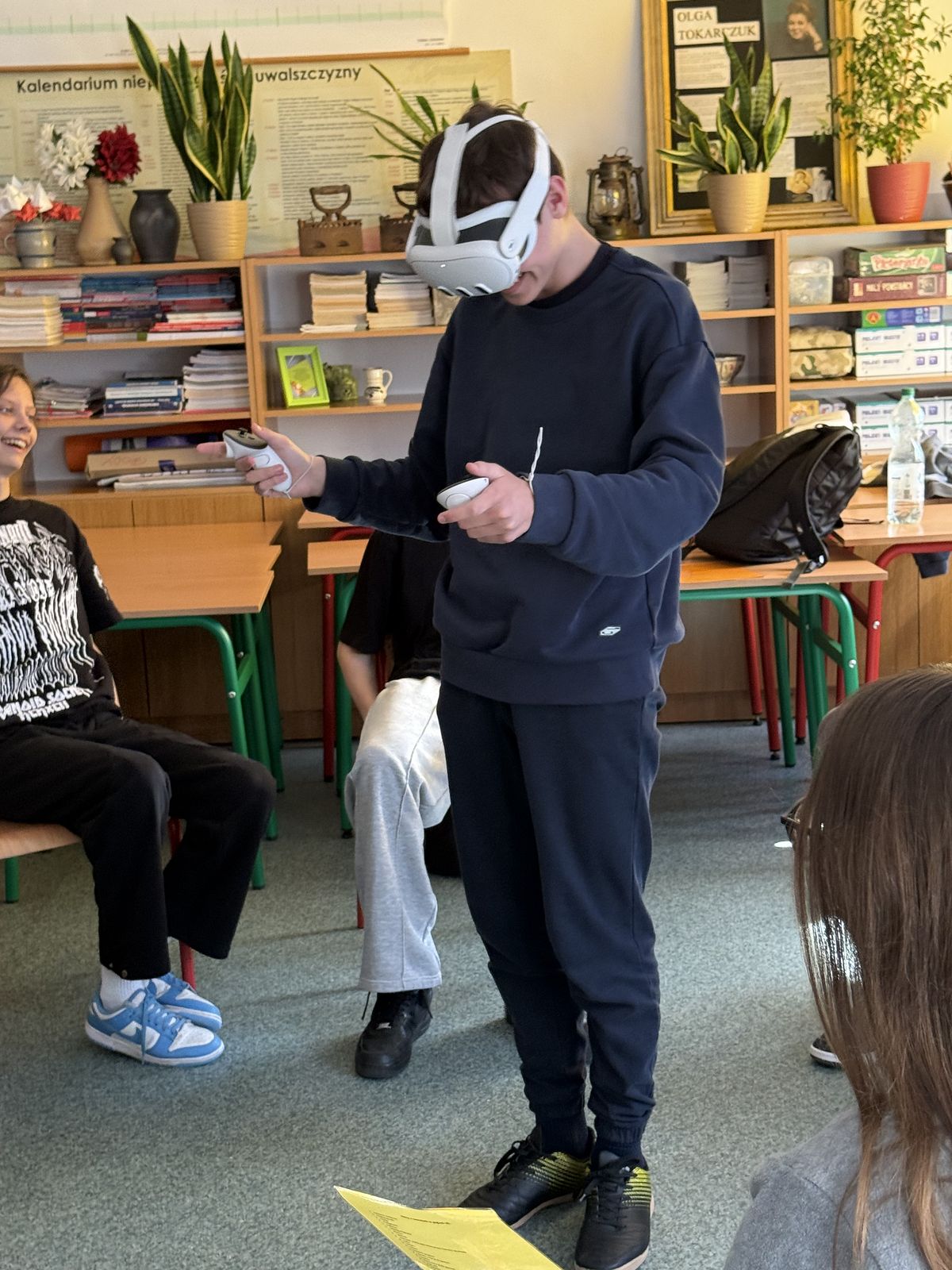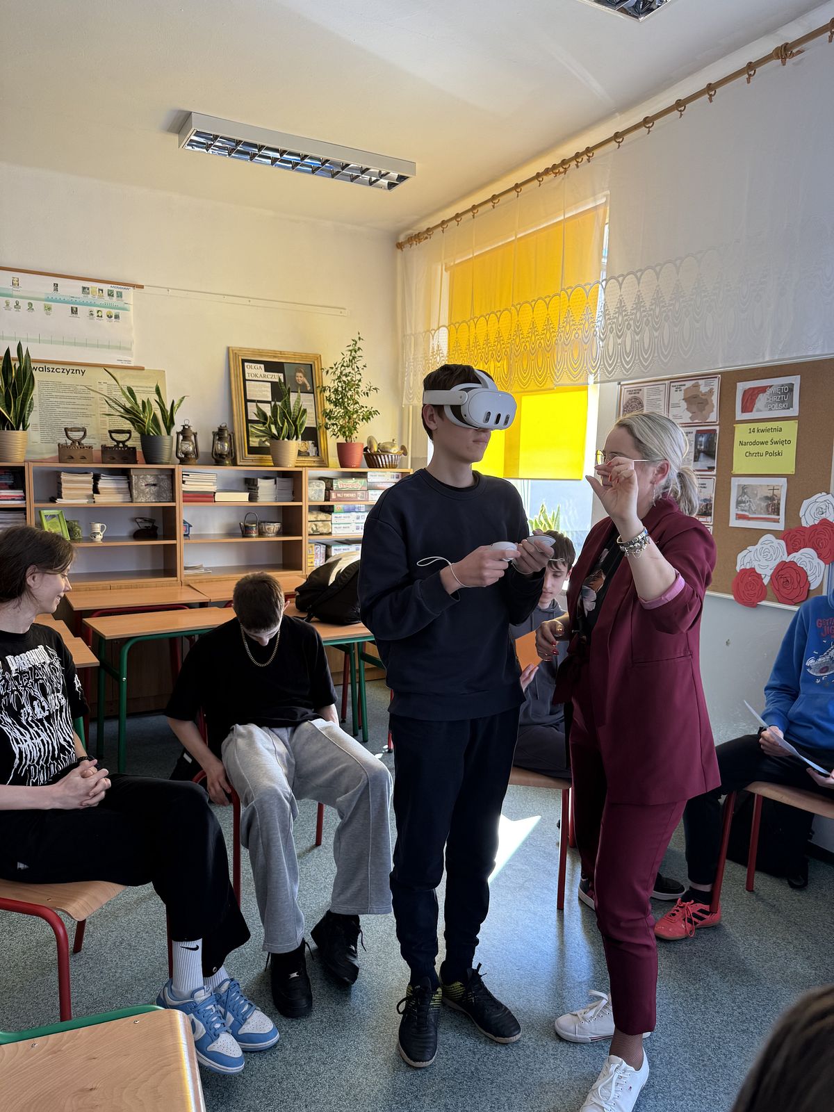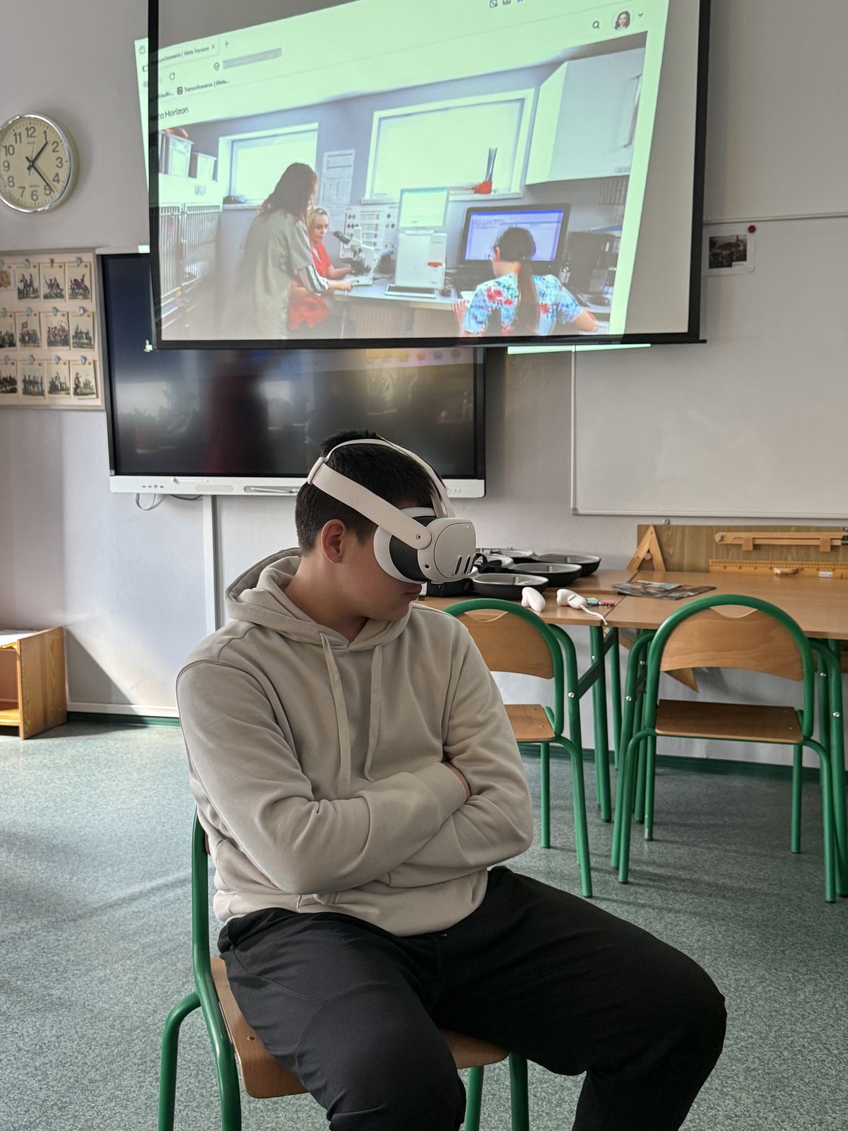 Wybór zawodu i szkoły ponadpodstawowej to nie łatwa decyzja. Klasa VIII w ramach doradztwa zawodowego spotyka się z przedstawicielami szkół, pracuje nad poznaniem siebie i swoich kompetencji edukacyjno - zawodowych, poznaje świat zawodów. "Widzę siebie w tym zawodzie" - to temat spotkania uczniów klasy VIII z doradcami zawodowymi z Powiatowego Urzędu Pracy w Augustowie. Można było w wirtualnej rzeczywistości poznać tajniki zawodu kosmetyczki, mechanika, operatora dźwigu i wielu innych. To nowoczesna i atrakcyjna forma przedstawienia zawodów. Było ciekawie i zabawnie.