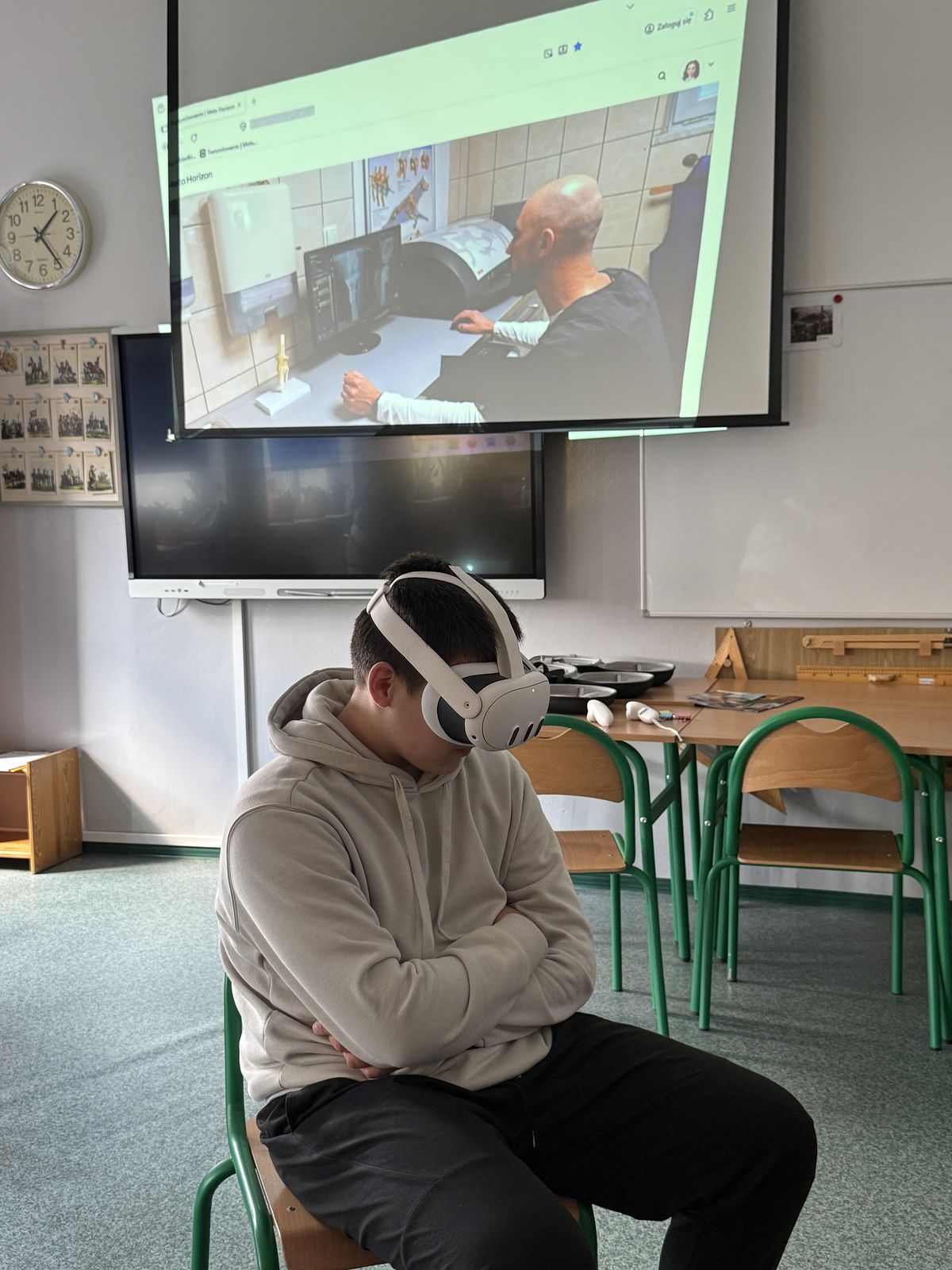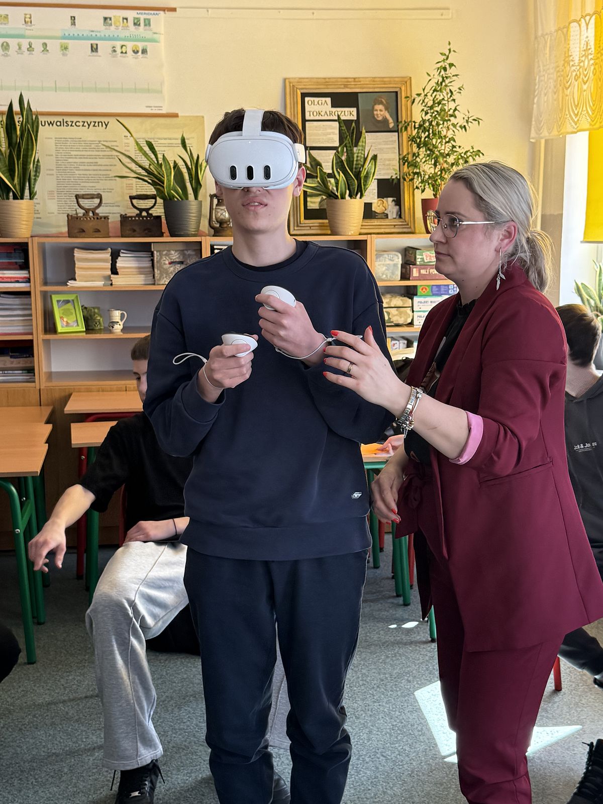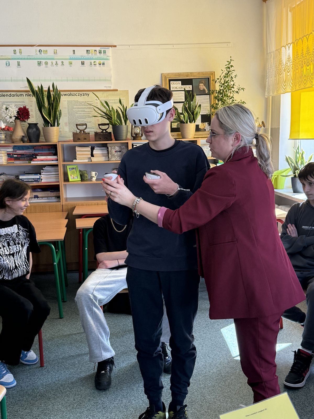 Wybór zawodu i szkoły ponadpodstawowej to nie łatwa decyzja. Klasa VIII w ramach doradztwa zawodowego spotyka się z przedstawicielami szkół, pracuje nad poznaniem siebie i swoich kompetencji edukacyjno - zawodowych, poznaje świat zawodów. "Widzę siebie w tym zawodzie" - to temat spotkania uczniów klasy VIII z doradcami zawodowymi z Powiatowego Urzędu Pracy w Augustowie. Można było w wirtualnej rzeczywistości poznać tajniki zawodu kosmetyczki, mechanika, operatora dźwigu i wielu innych. To nowoczesna i atrakcyjna forma przedstawienia zawodów. Było ciekawie i zabawnie.