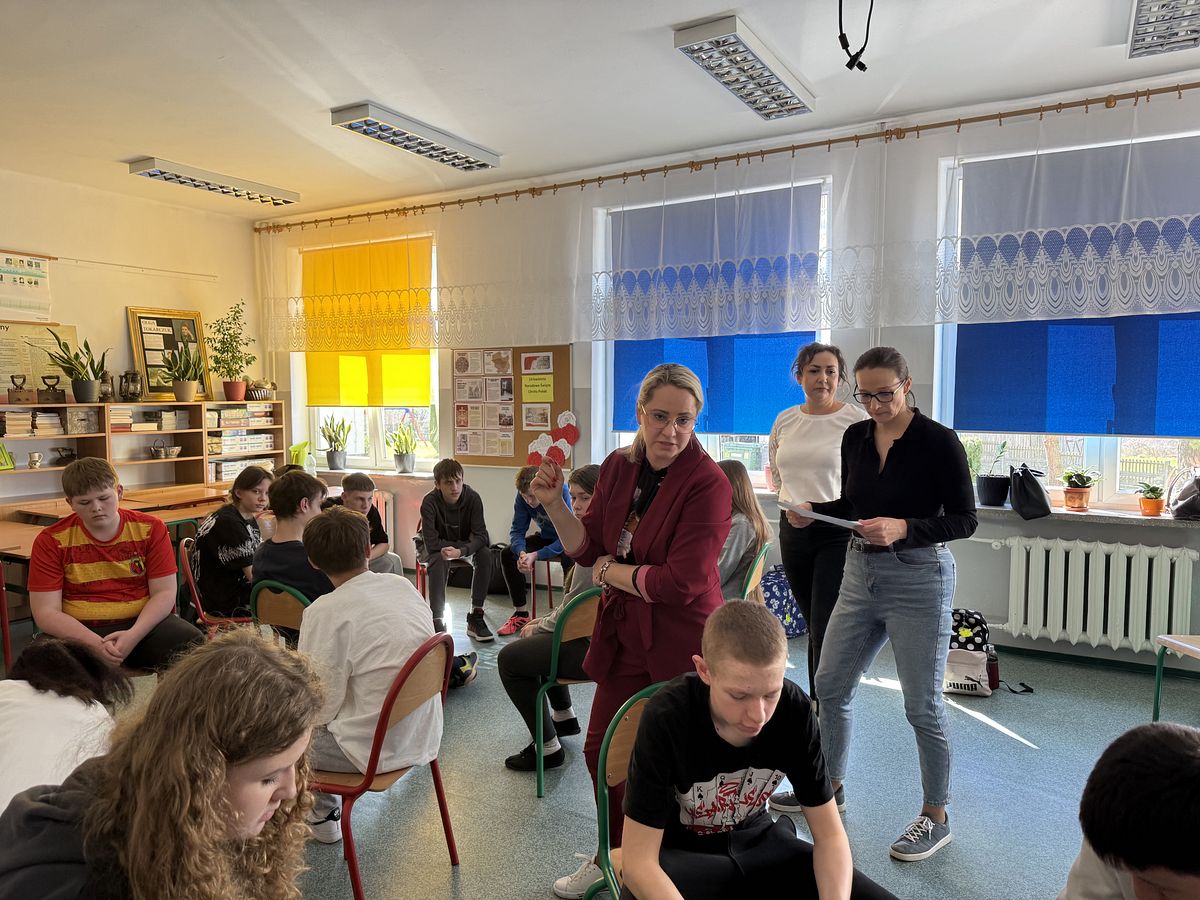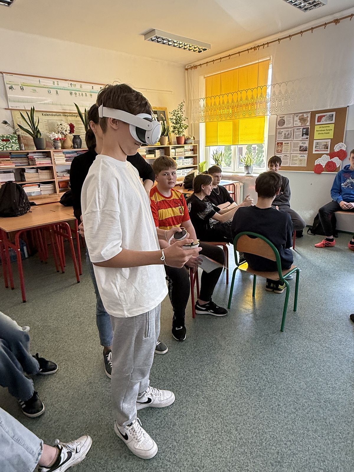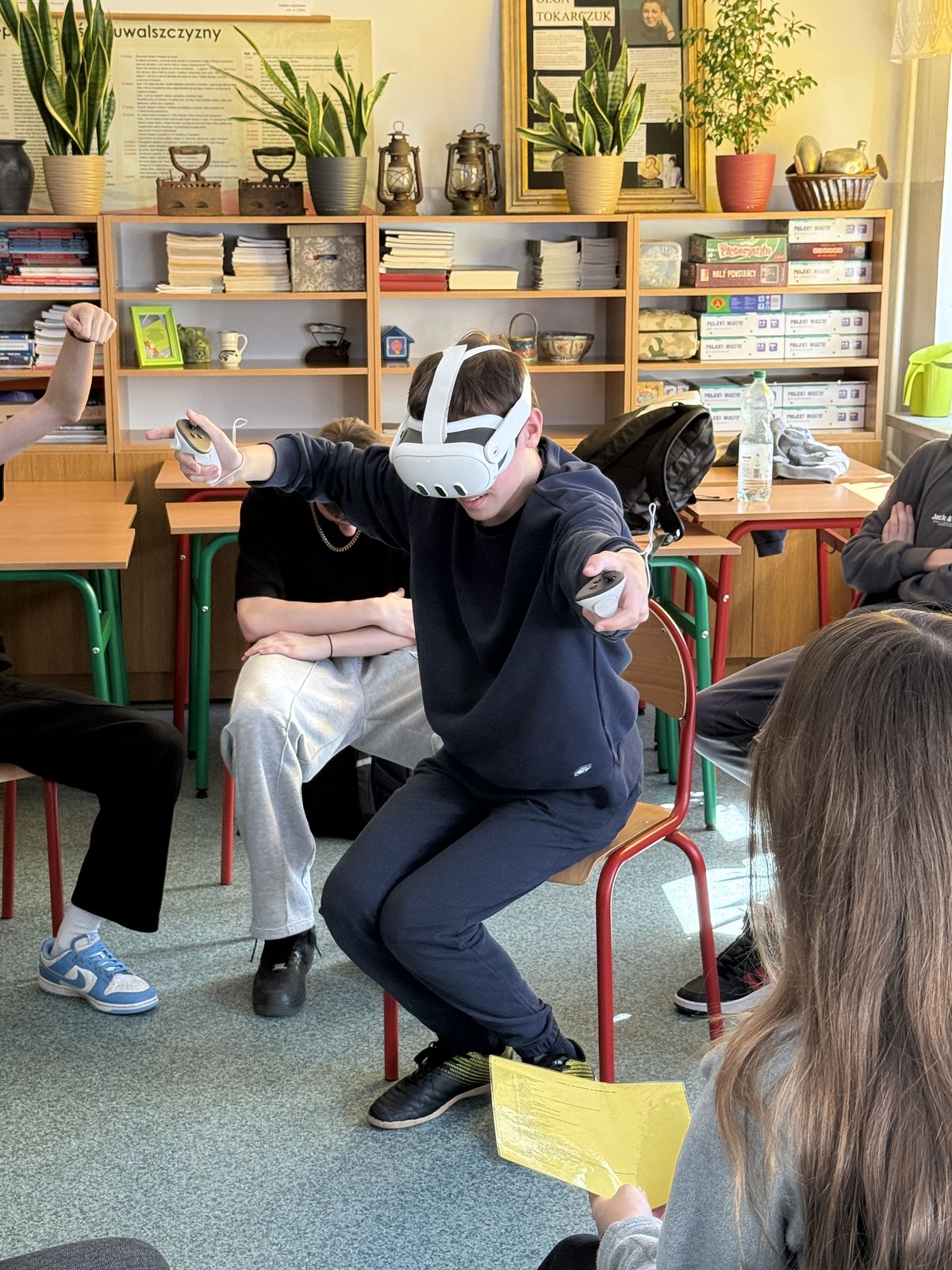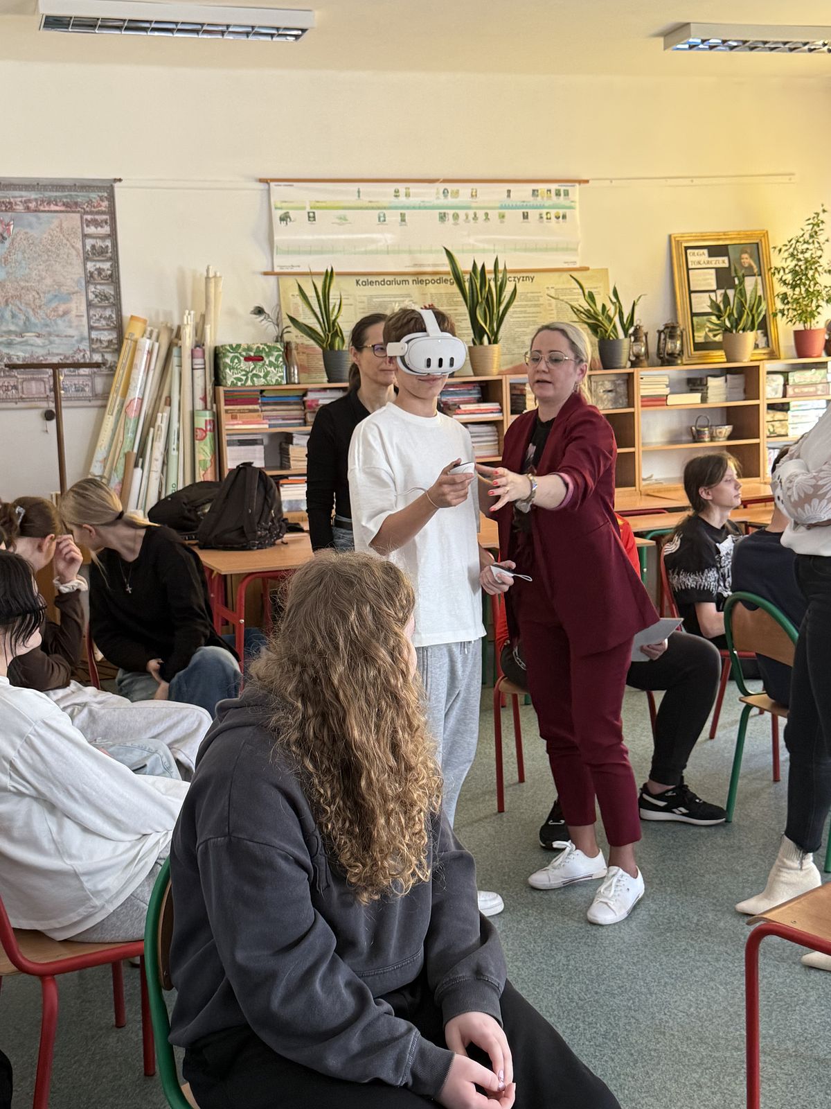 Wybór zawodu i szkoły ponadpodstawowej to nie łatwa decyzja. Klasa VIII w ramach doradztwa zawodowego spotyka się z przedstawicielami szkół, pracuje nad poznaniem siebie i swoich kompetencji edukacyjno - zawodowych, poznaje świat zawodów. "Widzę siebie w tym zawodzie" - to temat spotkania uczniów klasy VIII z doradcami zawodowymi z Powiatowego Urzędu Pracy w Augustowie. Można było w wirtualnej rzeczywistości poznać tajniki zawodu kosmetyczki, mechanika, operatora dźwigu i wielu innych. To nowoczesna i atrakcyjna forma przedstawienia zawodów. Było ciekawie i zabawnie.