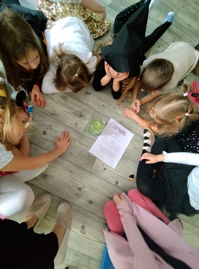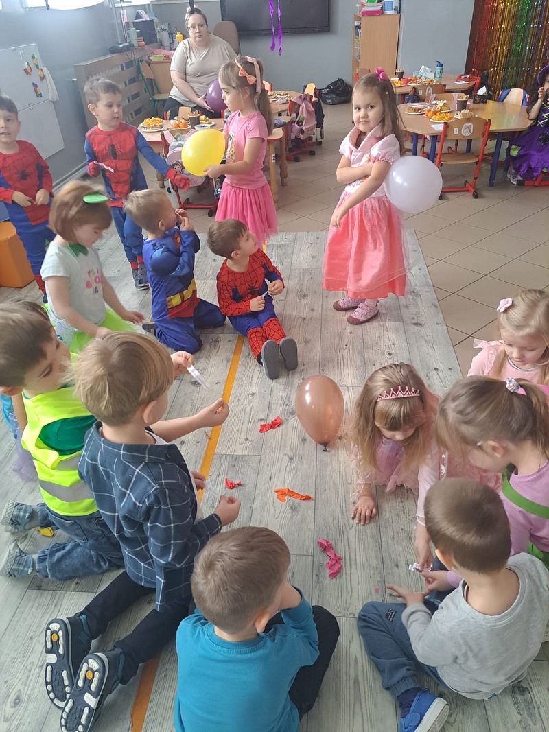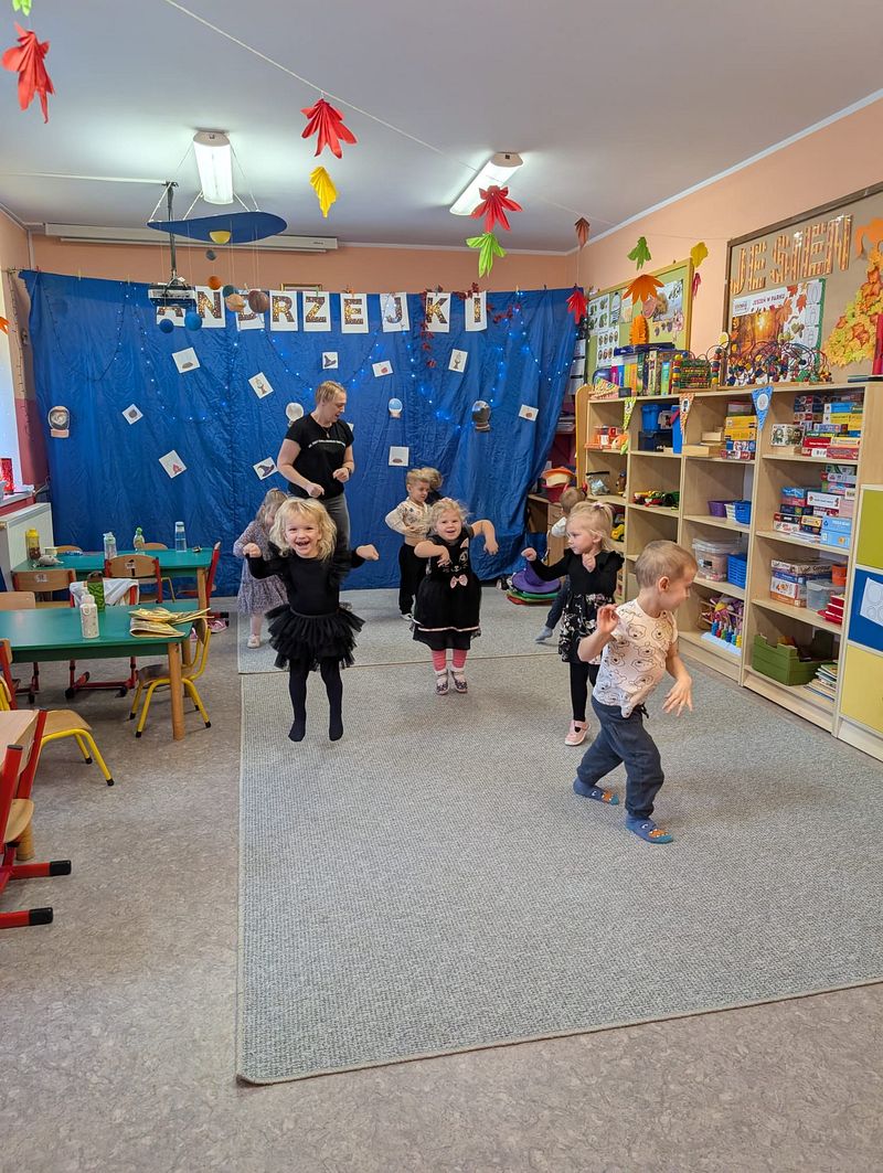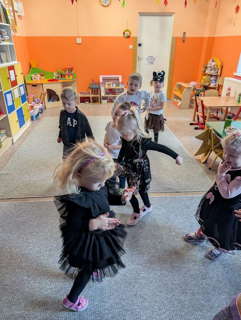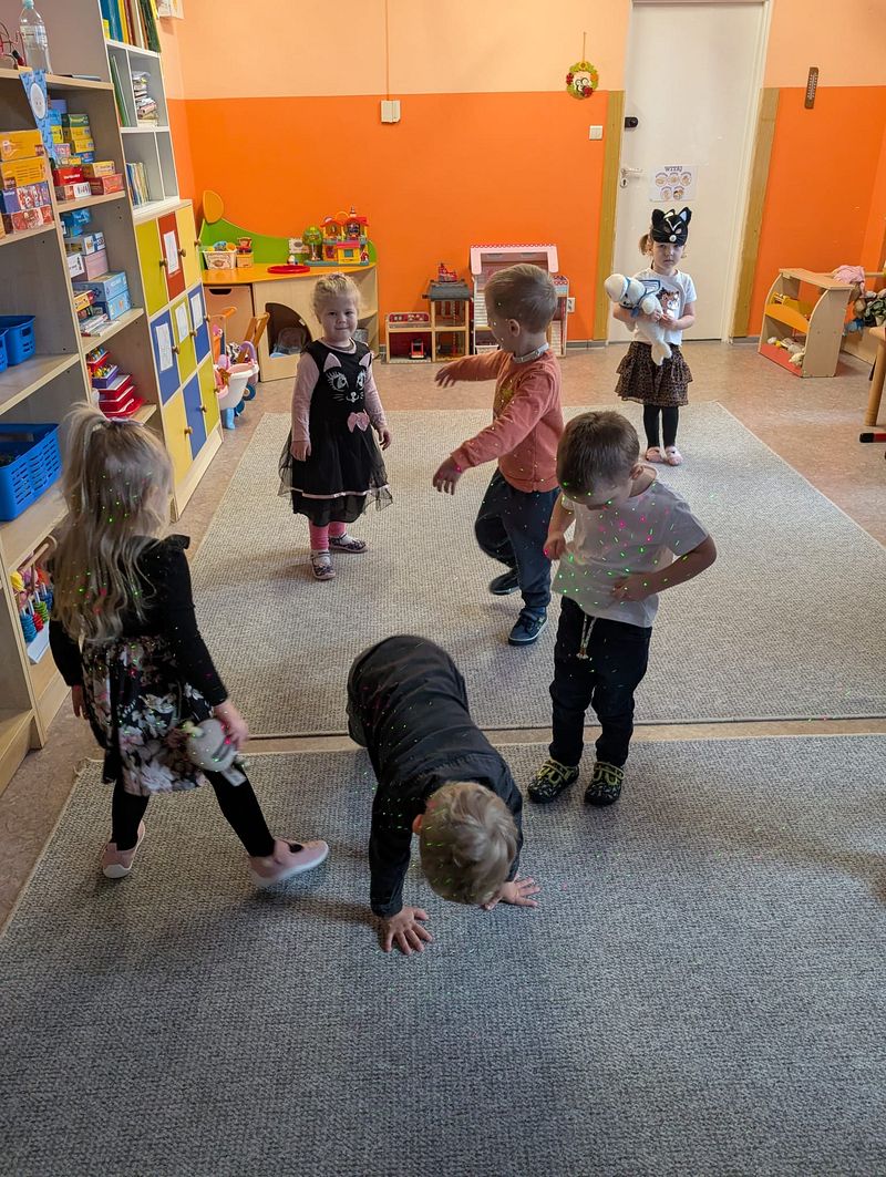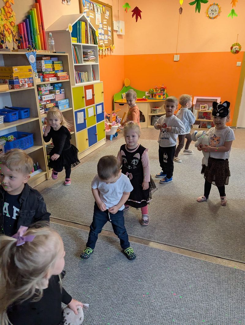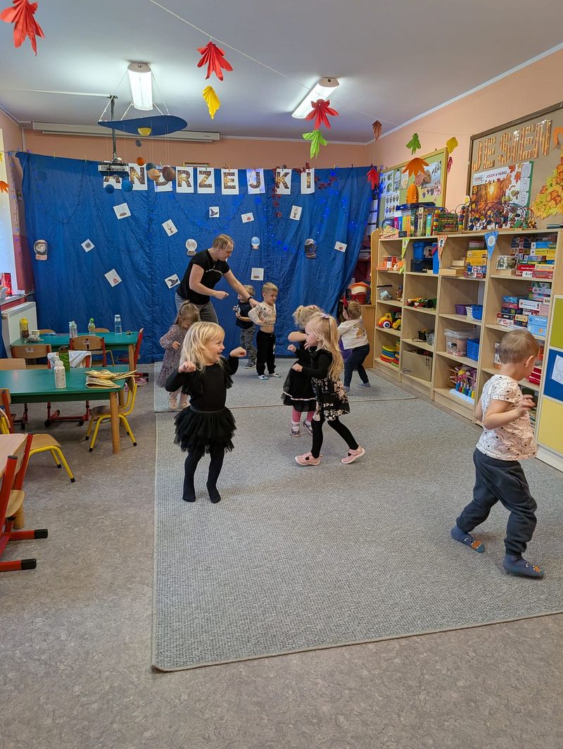 Oprócz wróżb nie zabrakło też zabaw ruchowych i tanecznych. Dzieci tańczyły przy ulubionych piosenkach, brały udział w konkursach i wspólnych pląsach, które dostarczyły im mnóstwo radości i energii. Wspólna zabawa sprzyjała integracji, rozwijała wyobraźnię oraz budowała poczucie jedności w grupie.