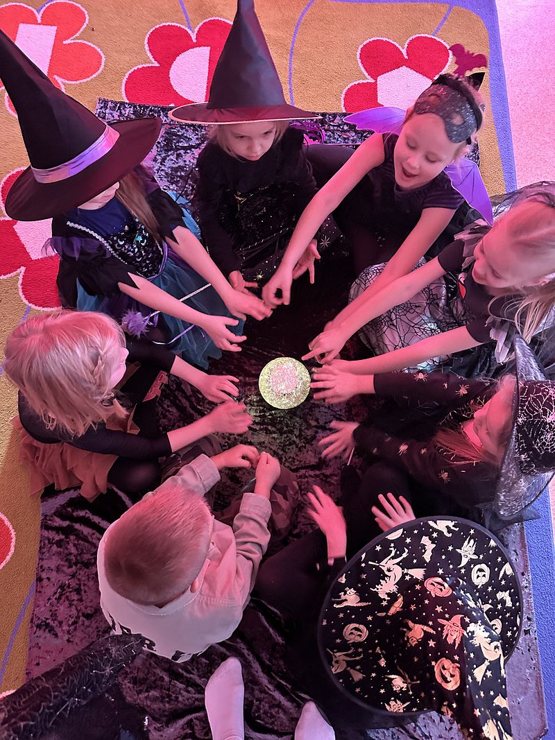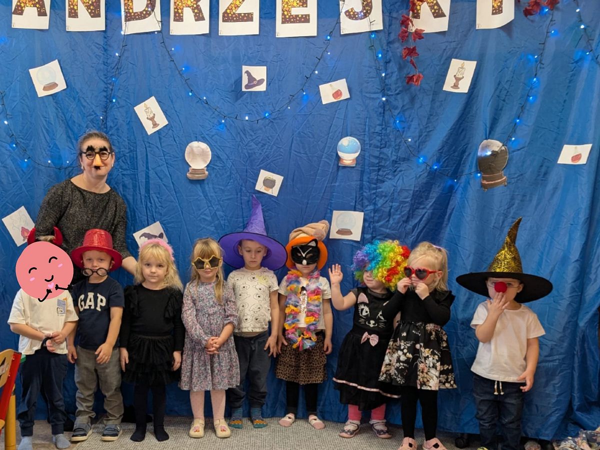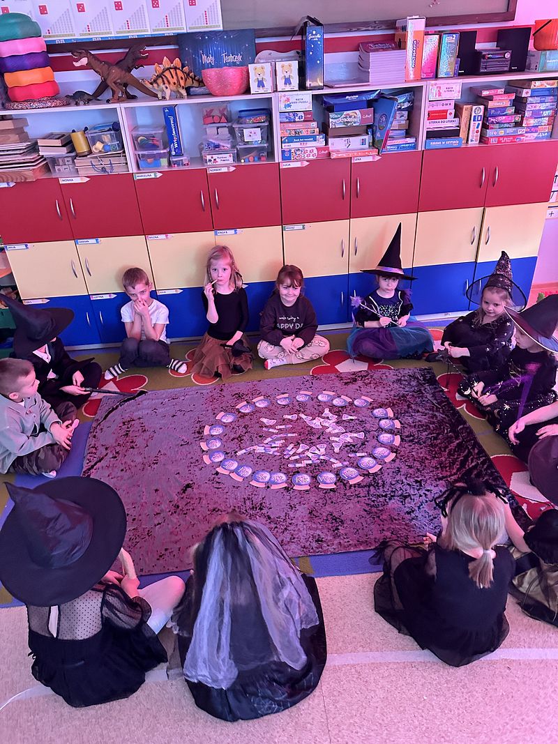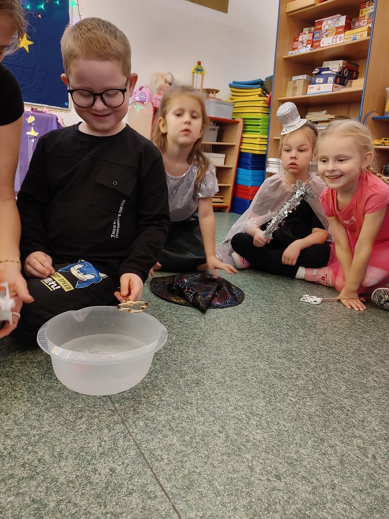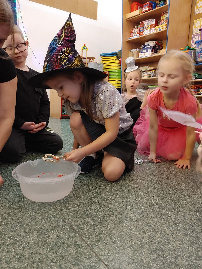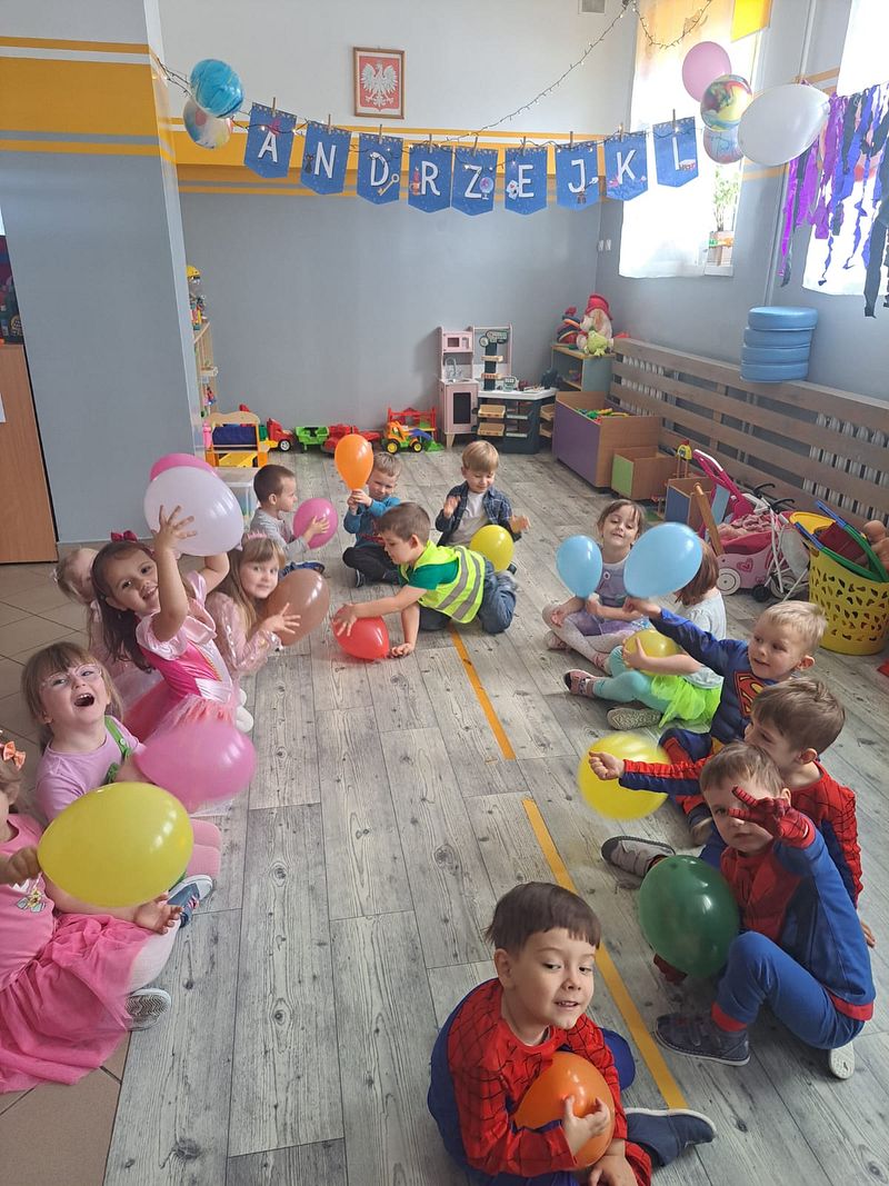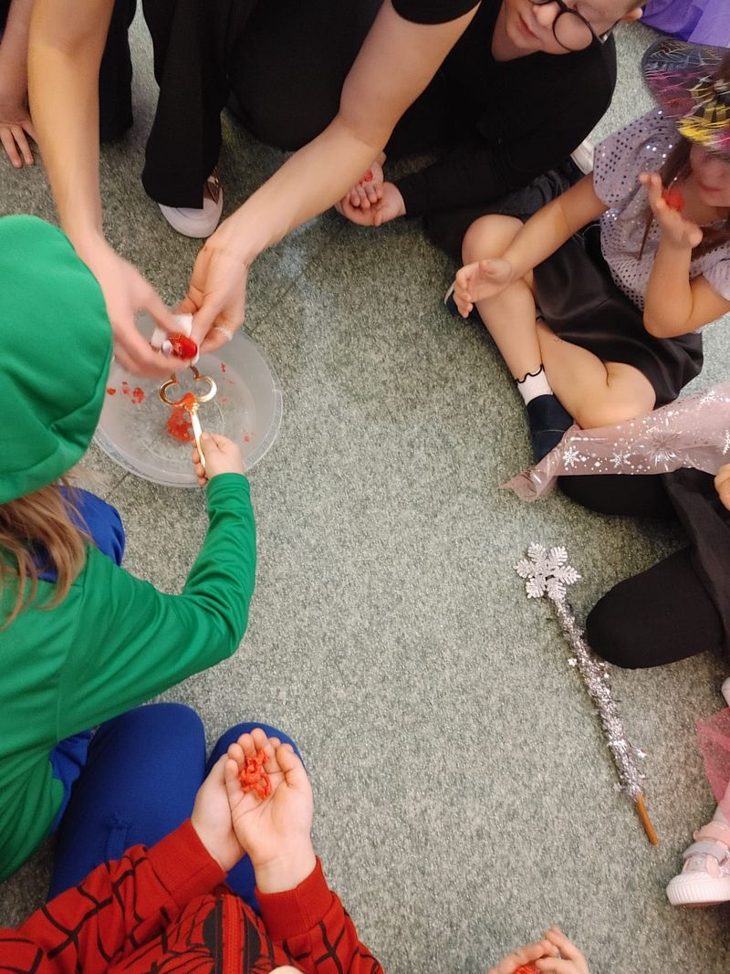 Oprócz wróżb nie zabrakło też zabaw ruchowych i tanecznych. Dzieci tańczyły przy ulubionych piosenkach, brały udział w konkursach i wspólnych pląsach, które dostarczyły im mnóstwo radości i energii. Wspólna zabawa sprzyjała integracji, rozwijała wyobraźnię oraz budowała poczucie jedności w grupie.