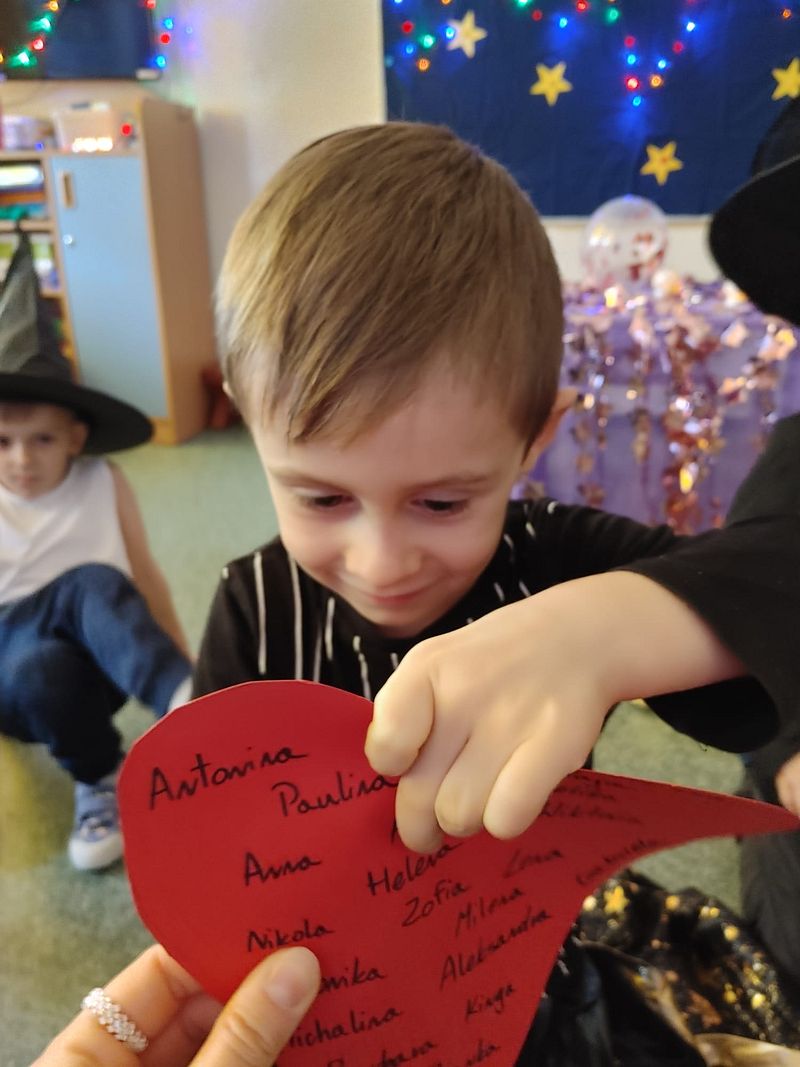 28 listopada w naszym przedszkolu odbyły się długo wyczekiwane Andrzejki – dzień pełen magii, radosnych wróżb i wspólnej zabawy. Już od rana w salach panowała wyjątkowa atmosfera. Przedszkolaki z ogromnym entuzjazmem uczestniczyły w andrzejkowych zabawach. Każde dziecko miało okazję sprawdzić, co czeka je w przyszłości – oczywiście w zabawny i przystępny dla najmłodszych sposób. Dzieci losowały przyszłe zawody, wybierały serduszka z imionami oraz poznawały inne tradycyjne, andrzejkowe zwyczaje. Każda wróżba wywoływała szerokie uśmiechy, zdziwione spojrzenia i mnóstwo pozytywnych emocji.